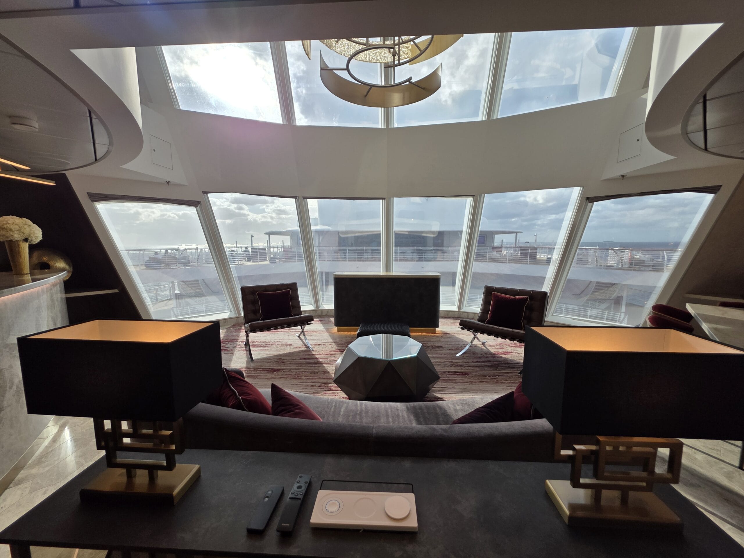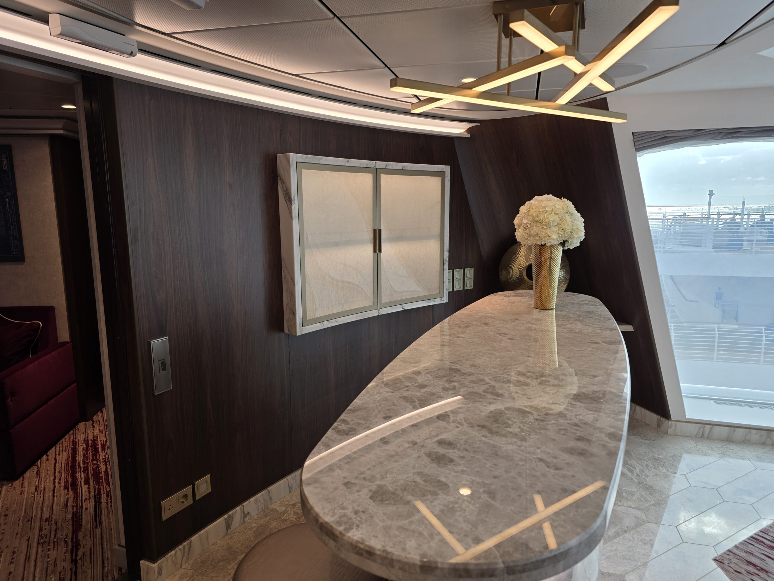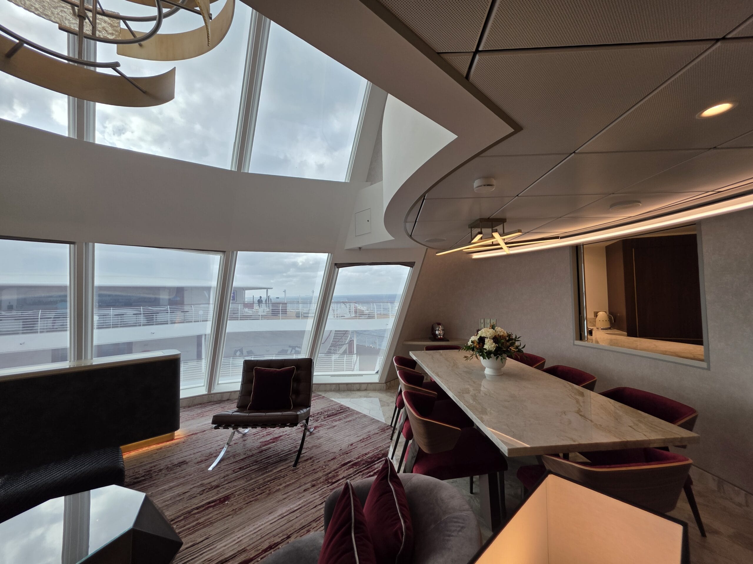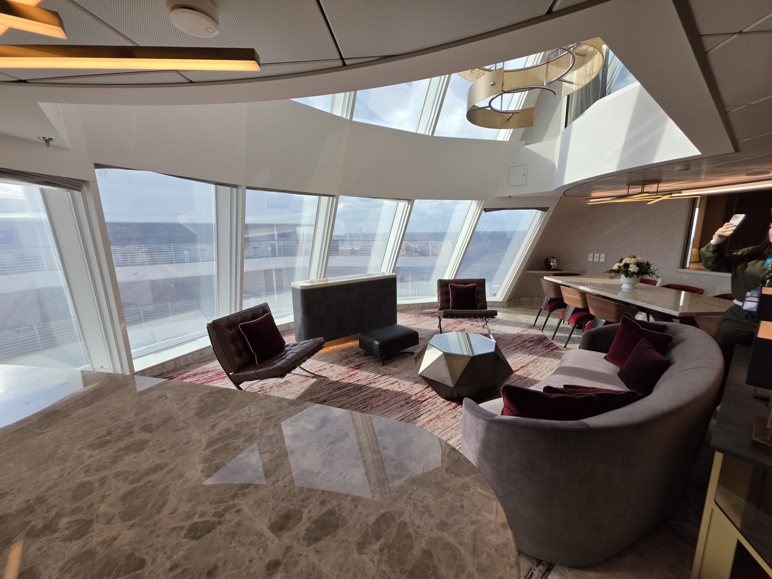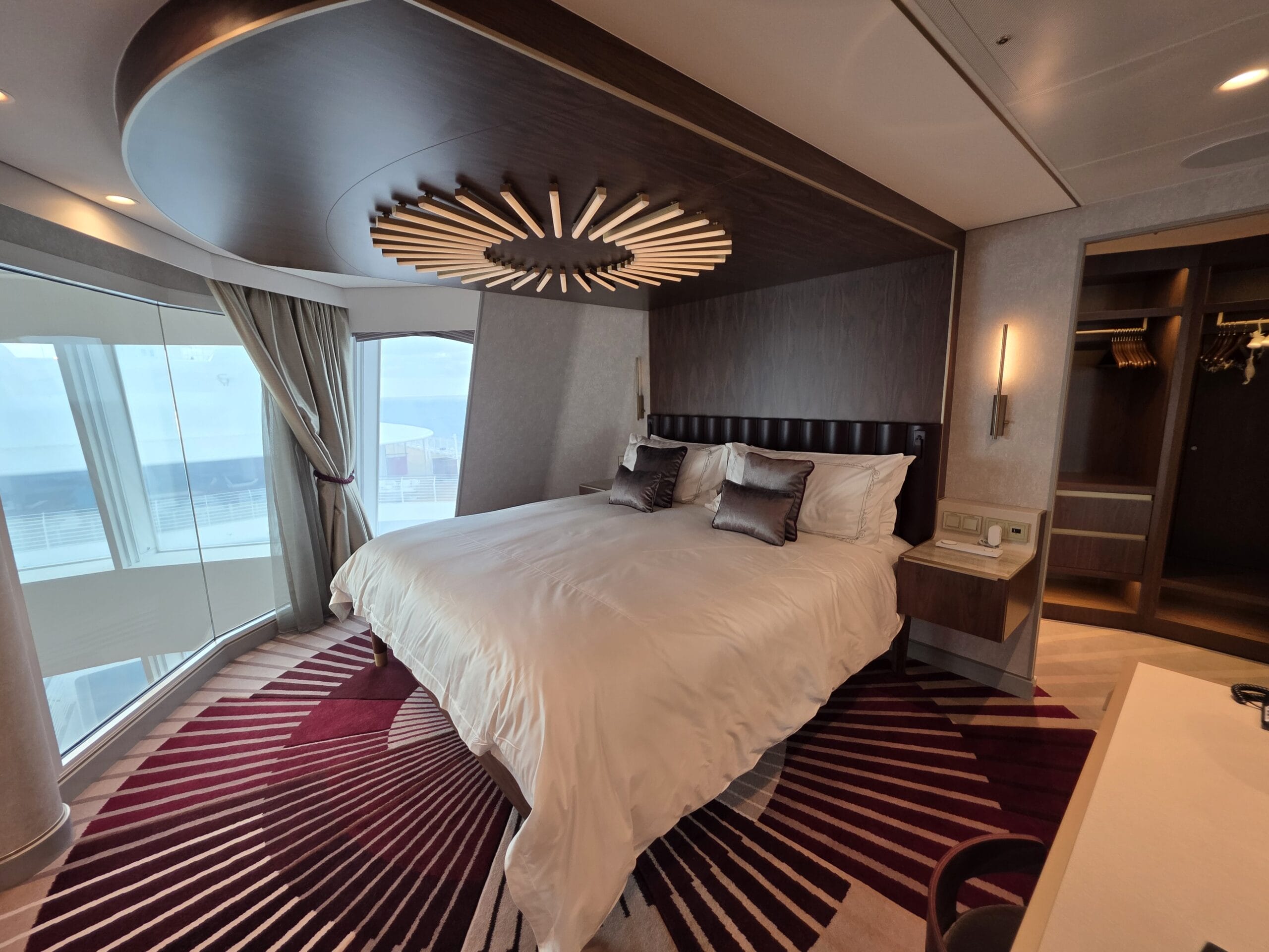Experience the pinnacle of luxury in a 2-story suite perched high in the ship’s forward funnel above the upper decks. This Marvel-inspired penthouse at sea brings Tony Stark’s sleek, innovative style to life, offering you an exclusive retreat complete with your very own private elevator.