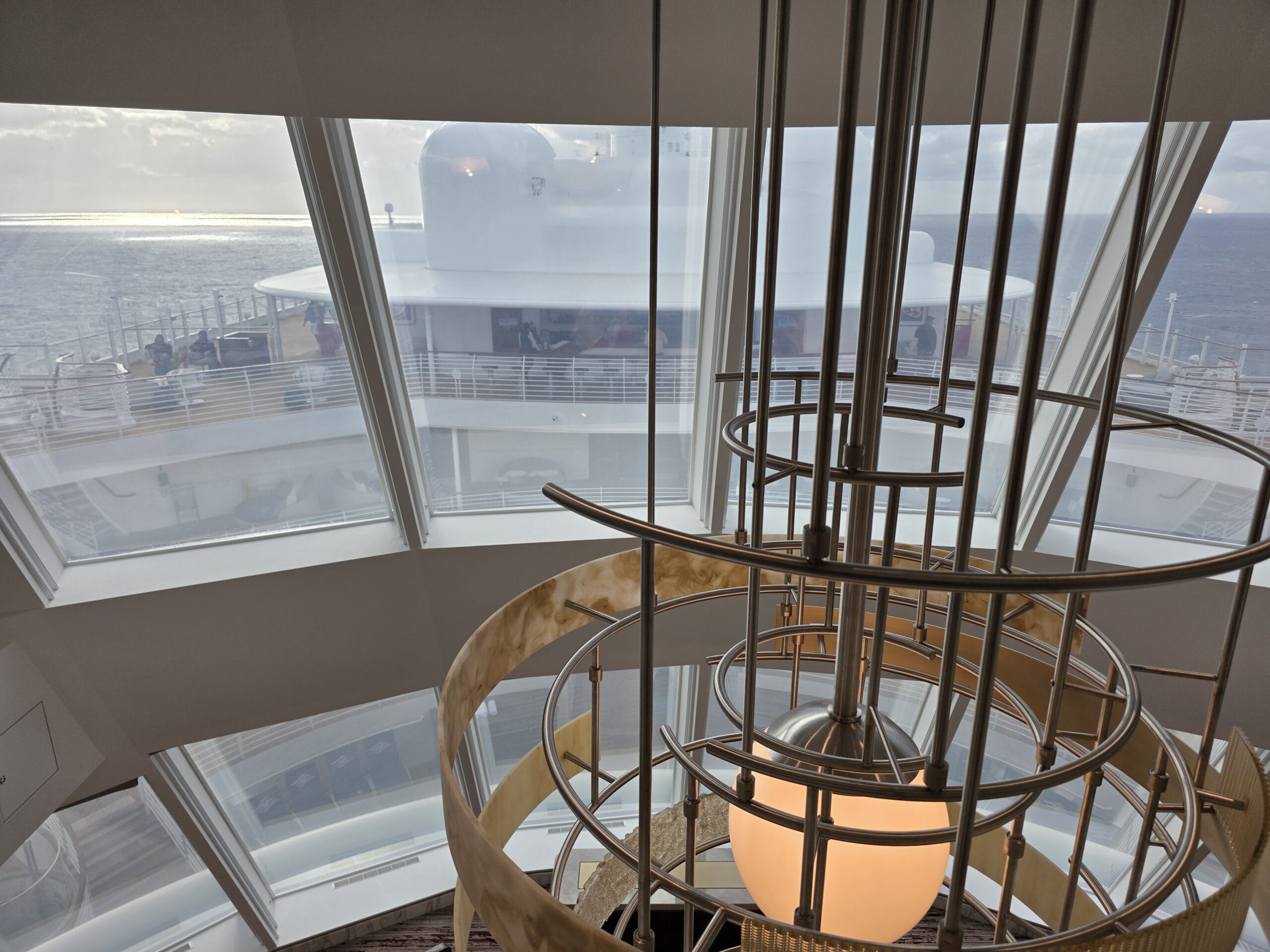 Here is a view of the chandelier and panoramic windows from the top of the stairs.