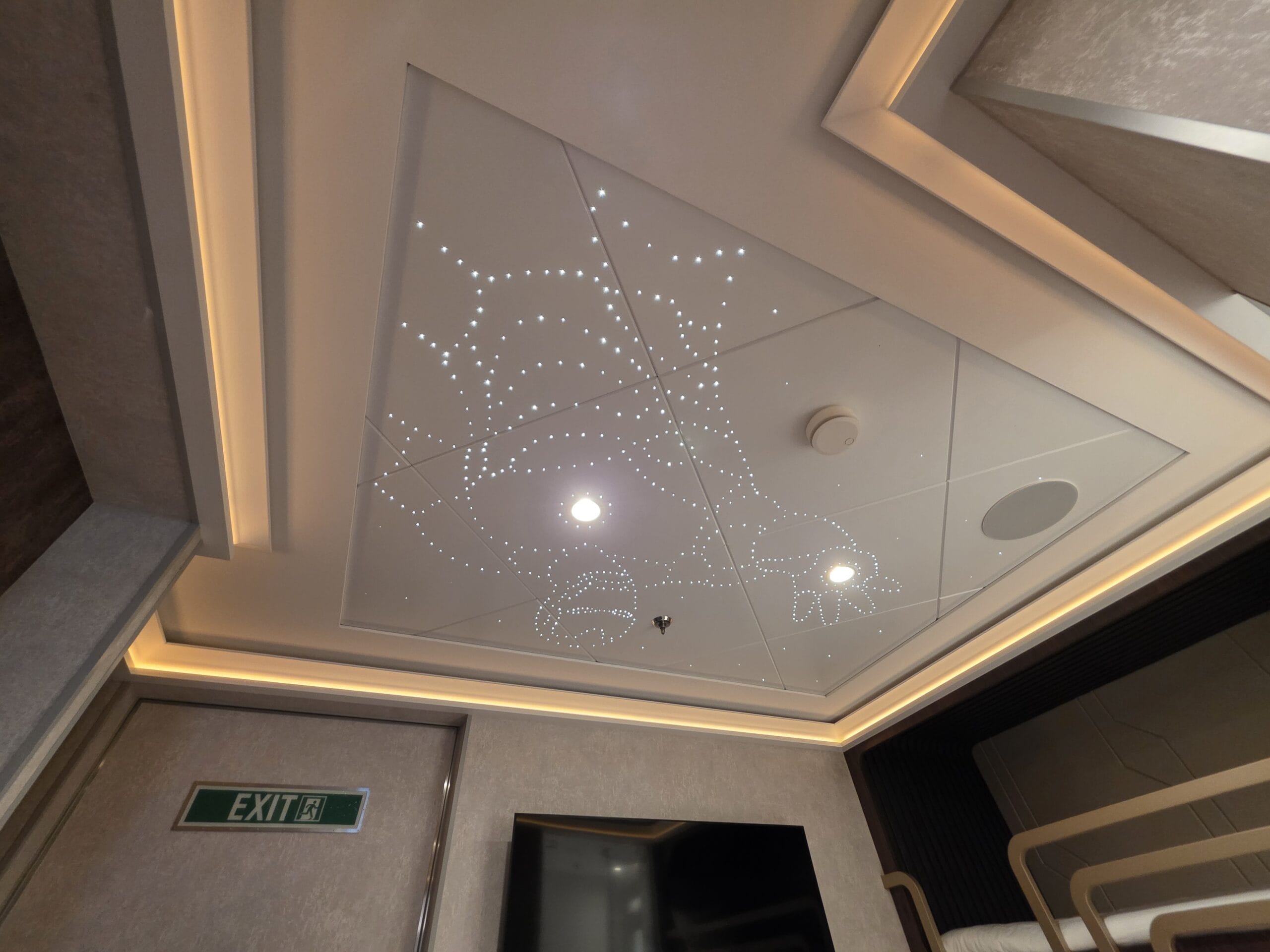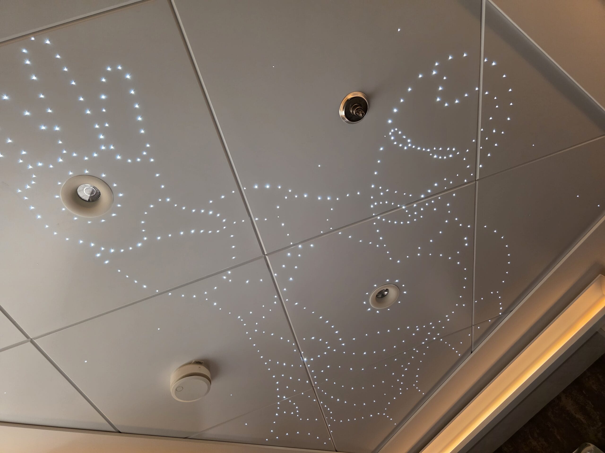 The ceiling of the kids’ room features light-up stars, which create a constellation-style outline of Iron Man.