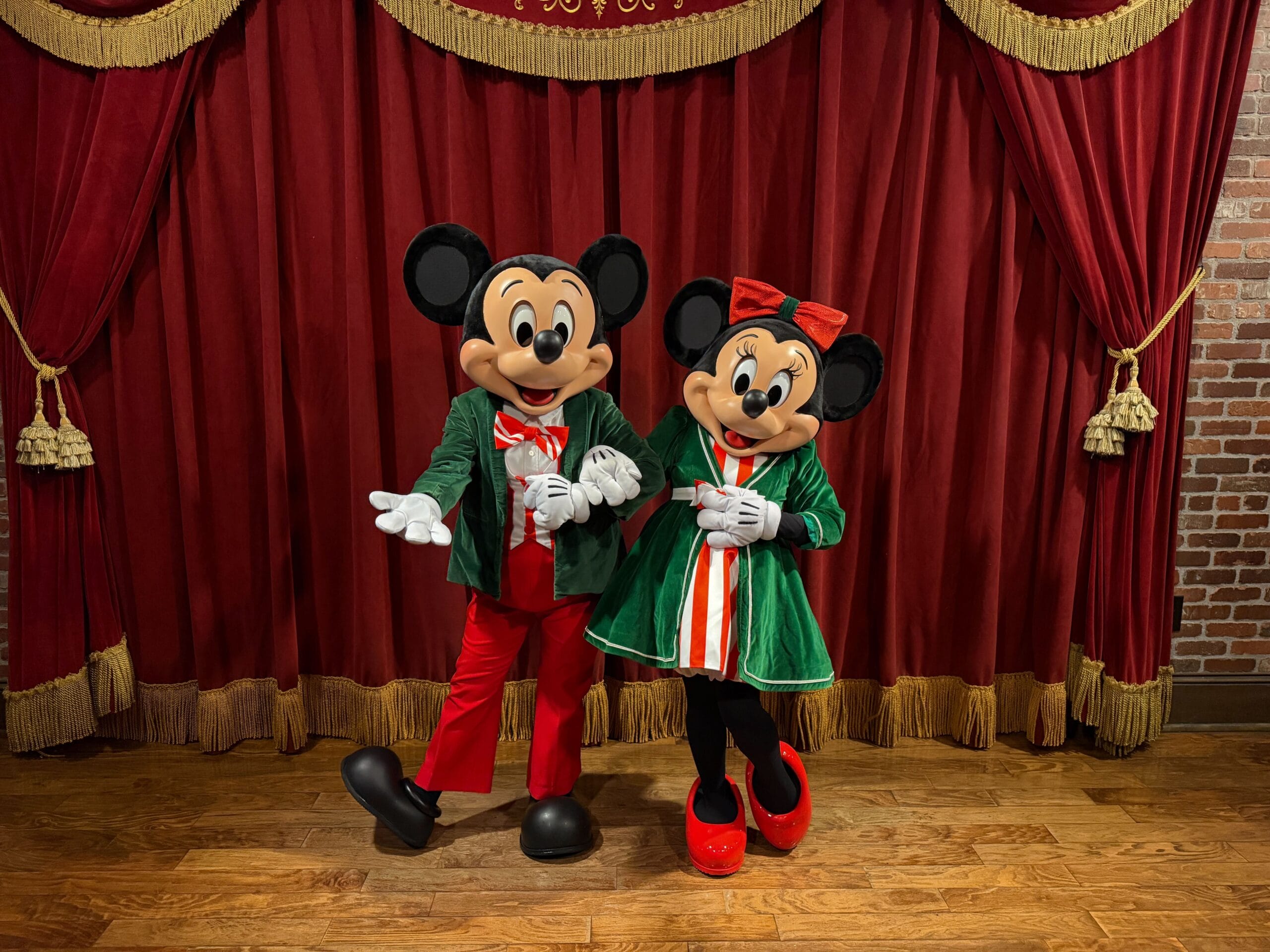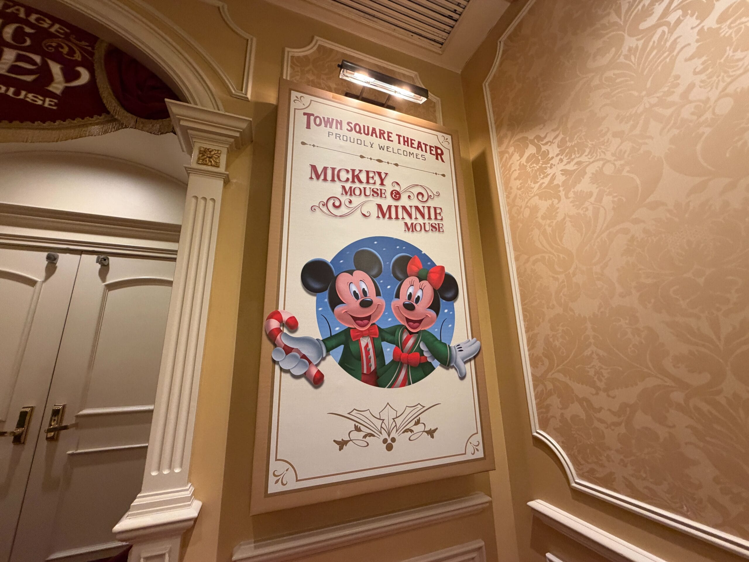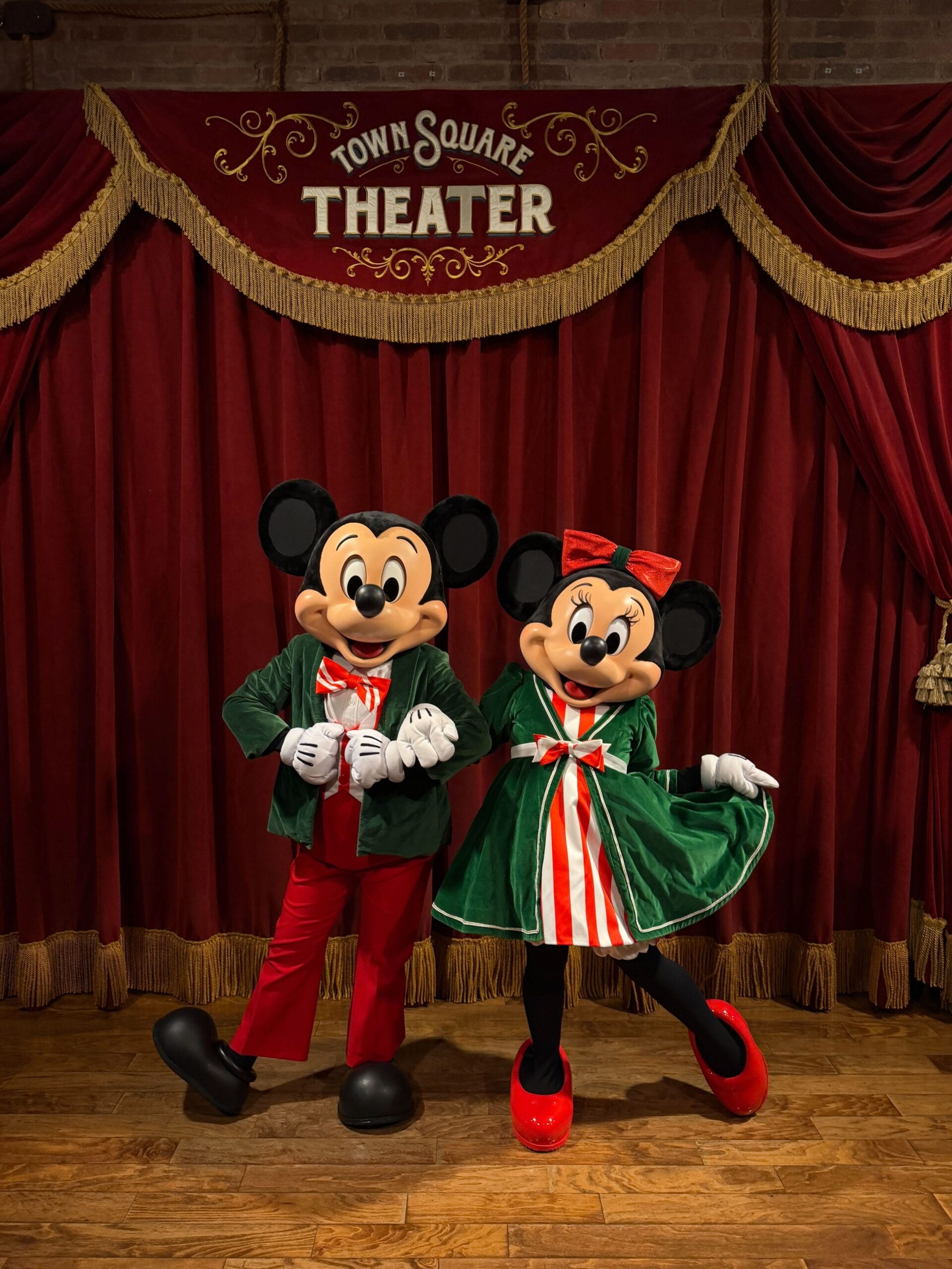 You can meet Mickey and Minnie in the Town Square Theater on Main Street, U.S.A. during Mickey’s Very Merry Christmas Party 2025, which runs from November 7 to December 21.