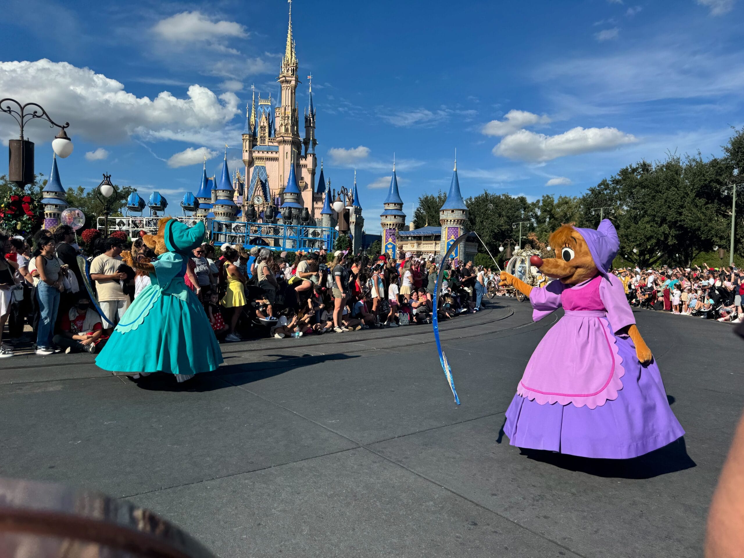 Suzy and Perla, the mice from Cinderella, help usher in the other princesses.