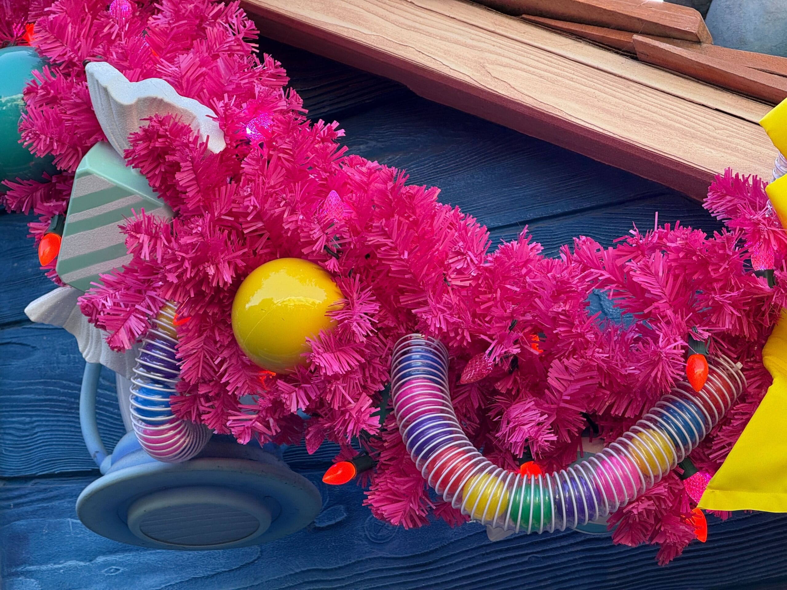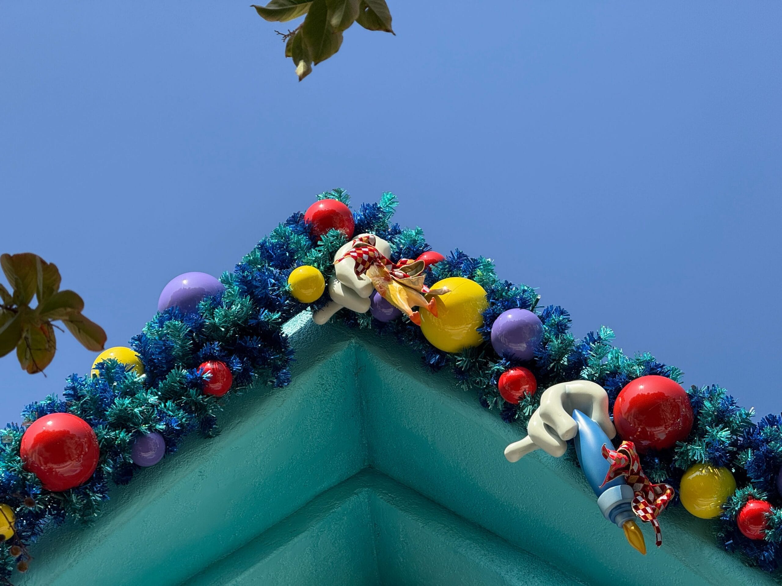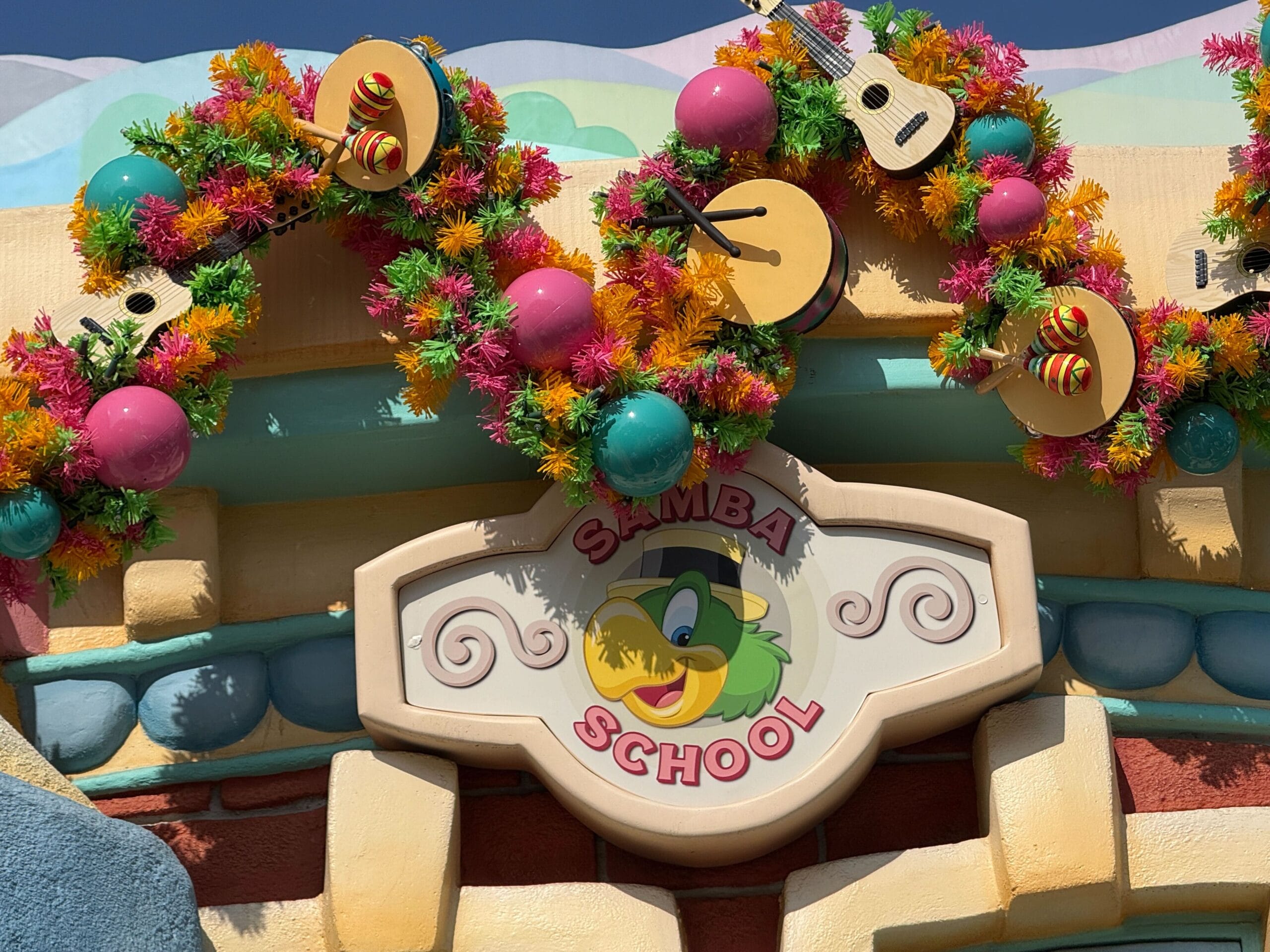 The Viva Navidad-esque decor on the Samba School is brand new this year. The colorful garland is filled with musical instruments alongside pink and blue baubles.