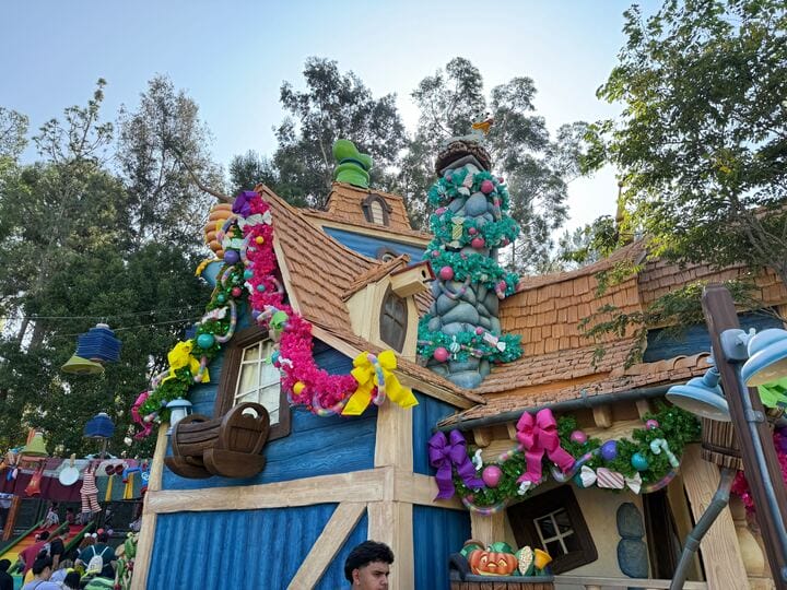Mickey’s Toontown is decorated for the 2025 holiday season at Disneyland Resort will run from November 14, 2025, through January 7, 2026.