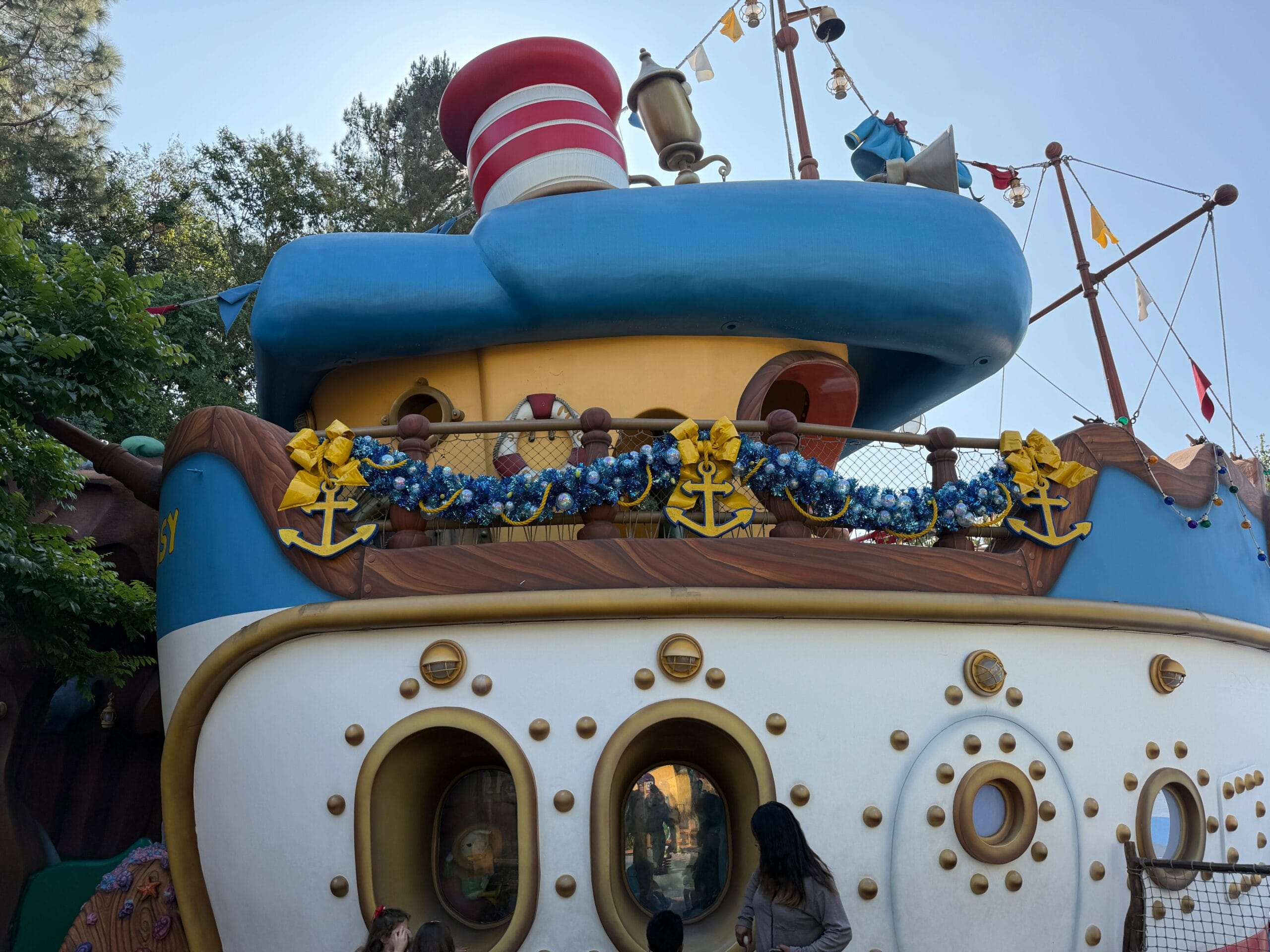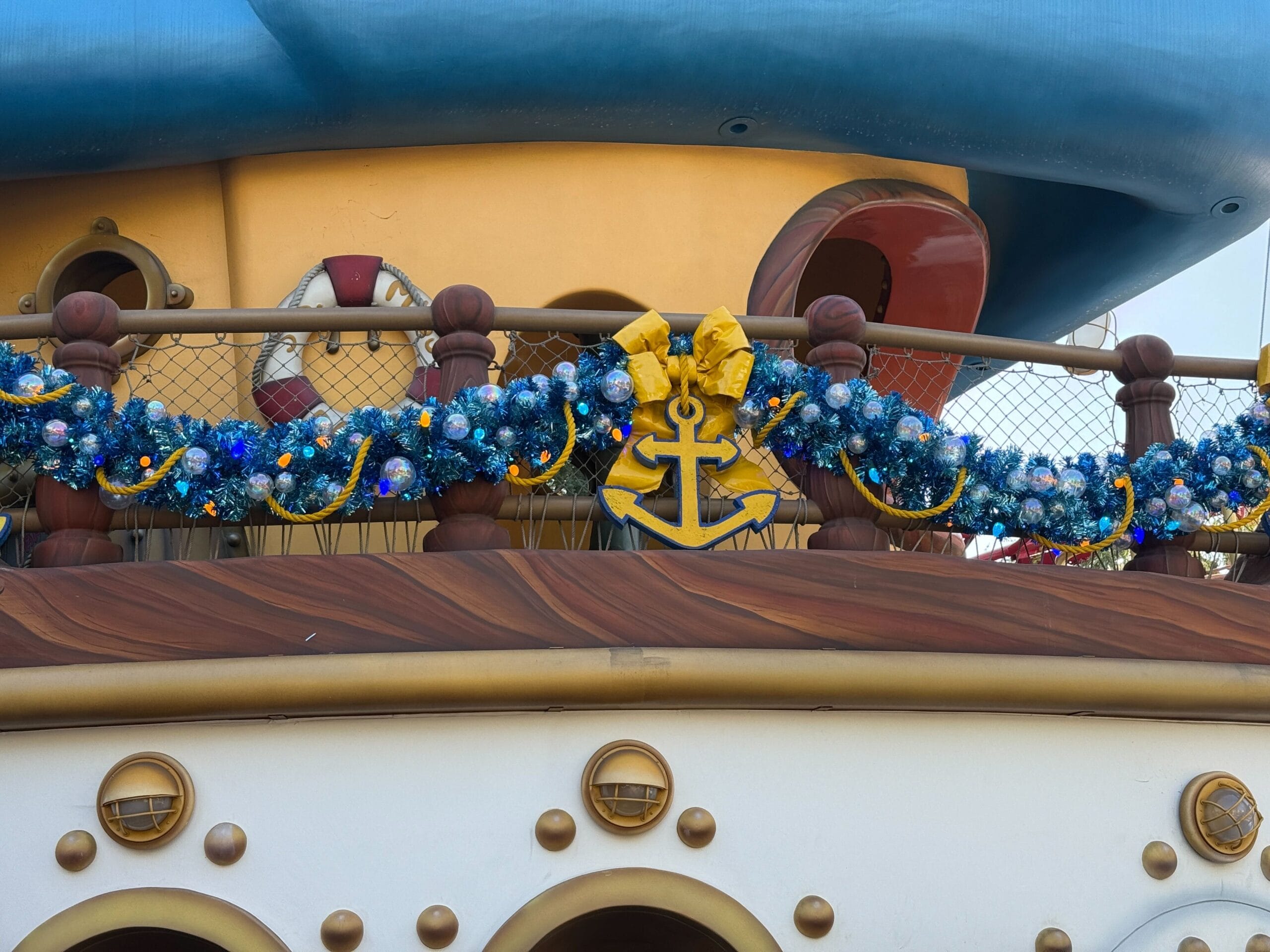 Donald’s boat has updated blue and yellow decorations, including garland and anchors.
