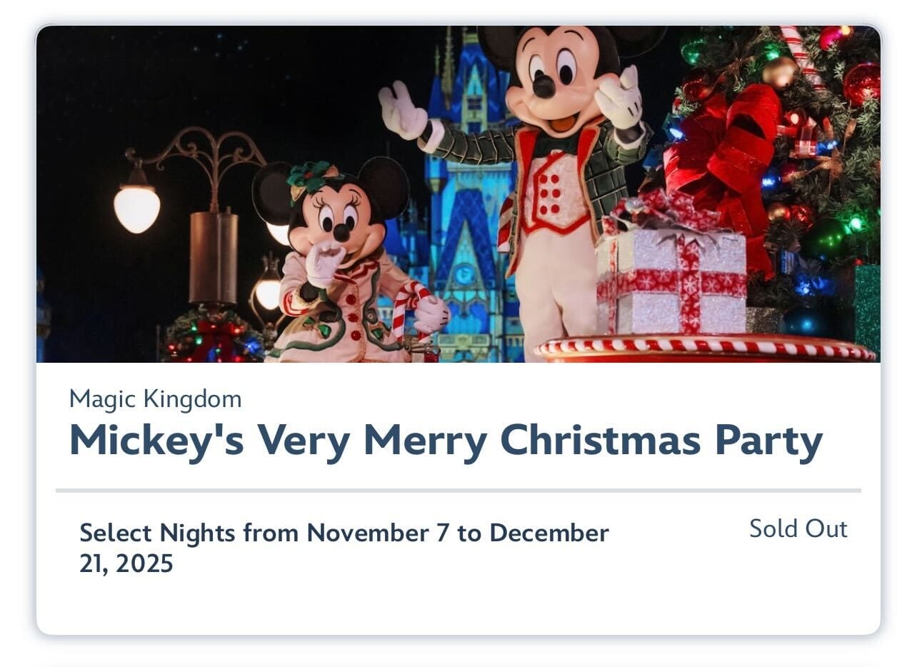 Mickey’s Very Merry Christmas Party 2025 Sold Out