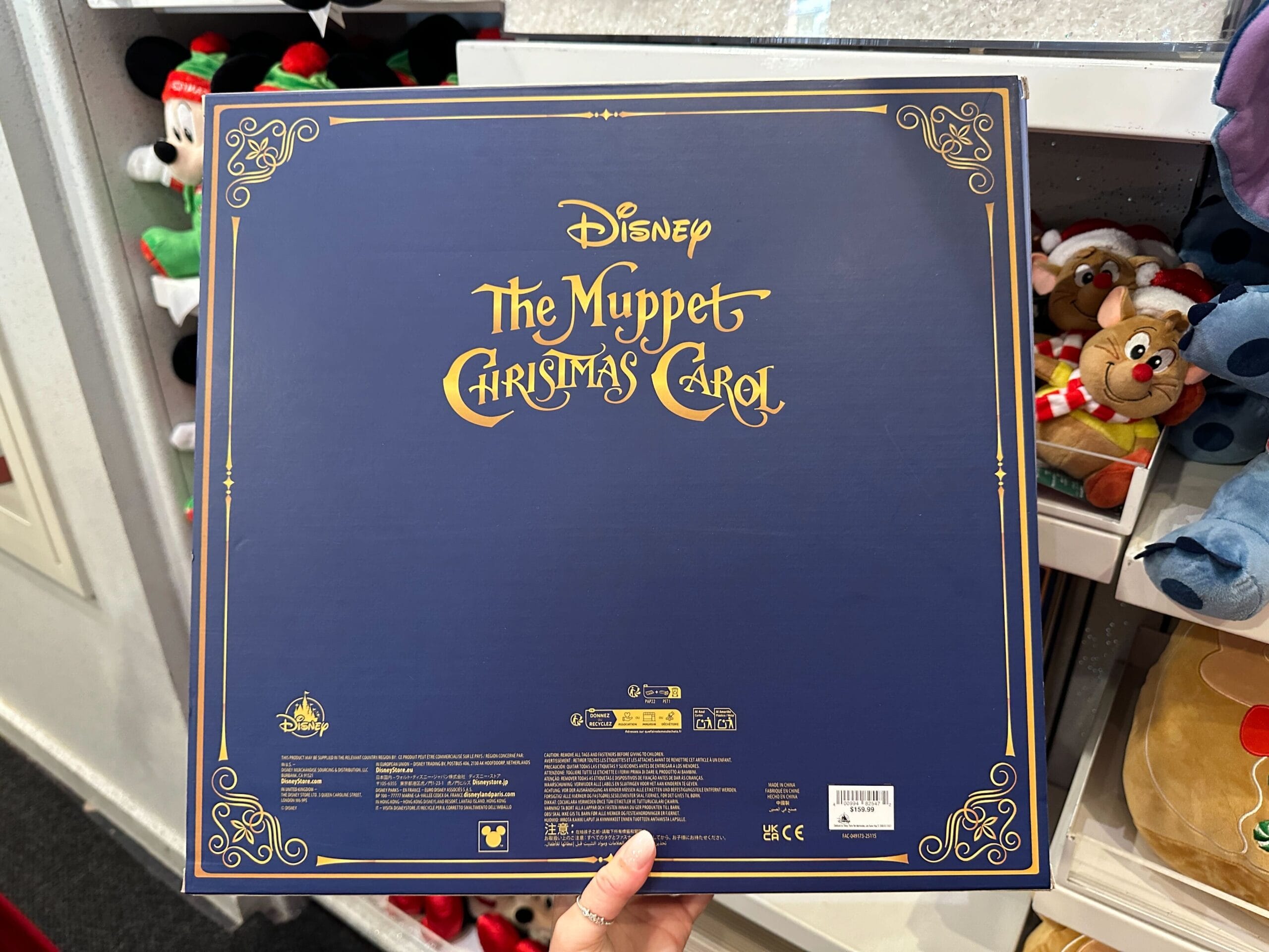 The calendar, also available online and at Disneyland, is inspired by Disney’s The Muppet Christmas Carol. The front of the box has cartoon images of Kermit, Miss Piggy, and more characters.