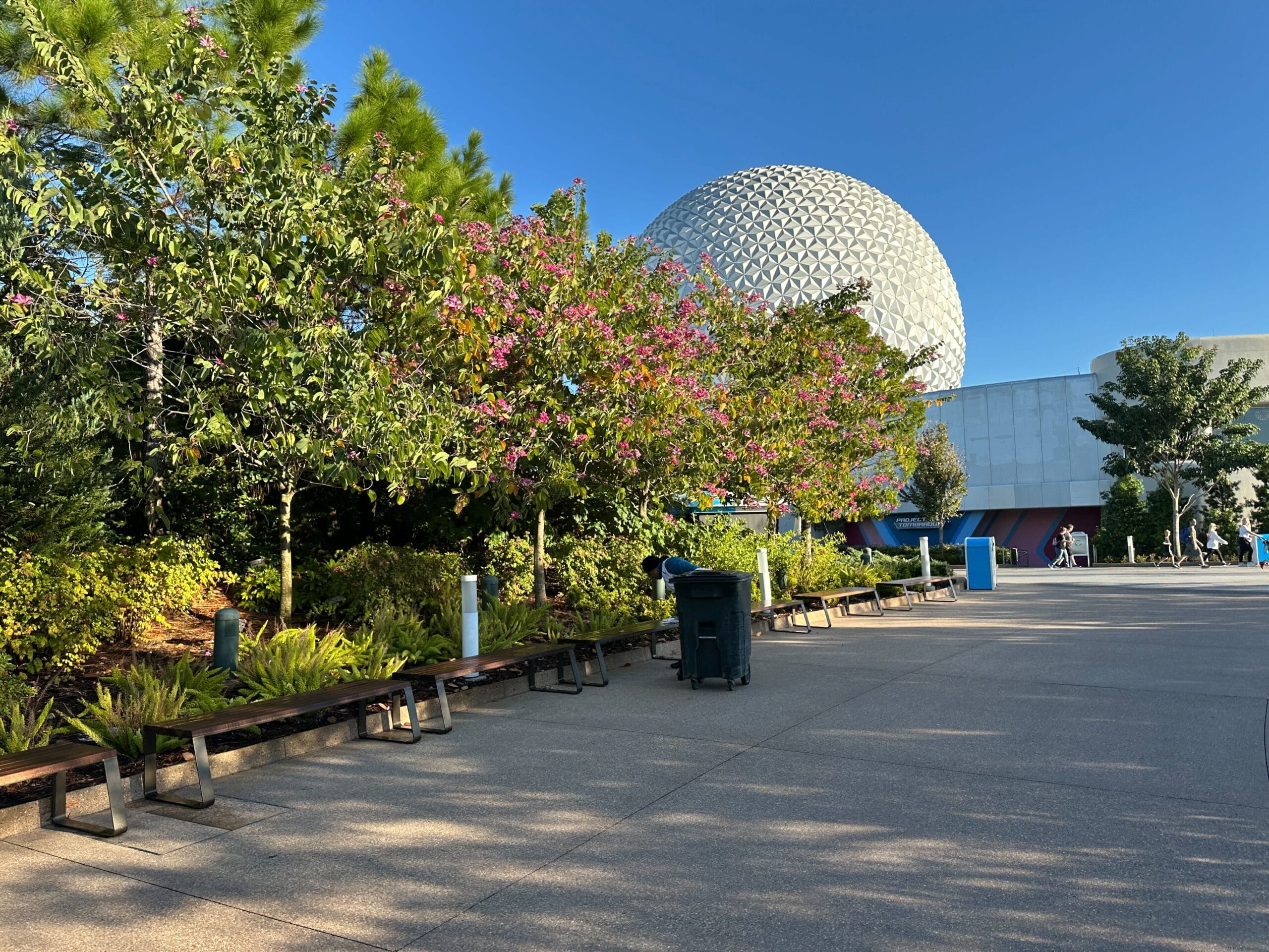 EPCOT has some additional seating along a walkway near Spaceship Earth.