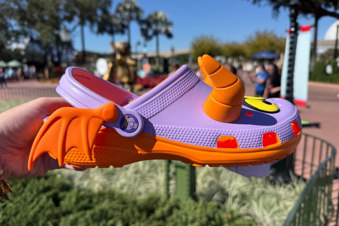 A new pair of Crocs has flown into Disney World in the form of a fan favorite purple dragon named Figment. We found these Crocs clogs at Disney Traders in EPCOT, but they are also available online at the Disney Store.