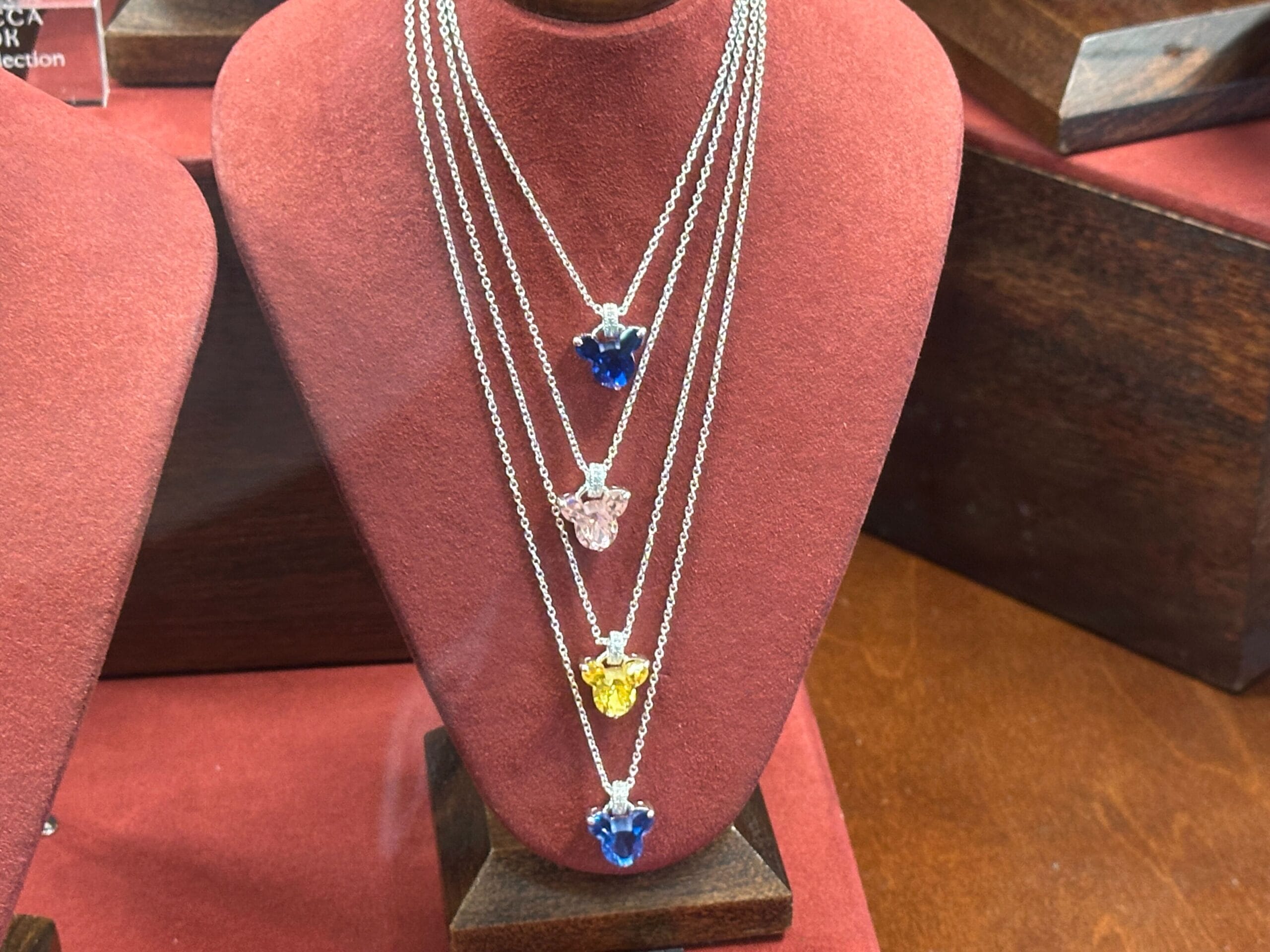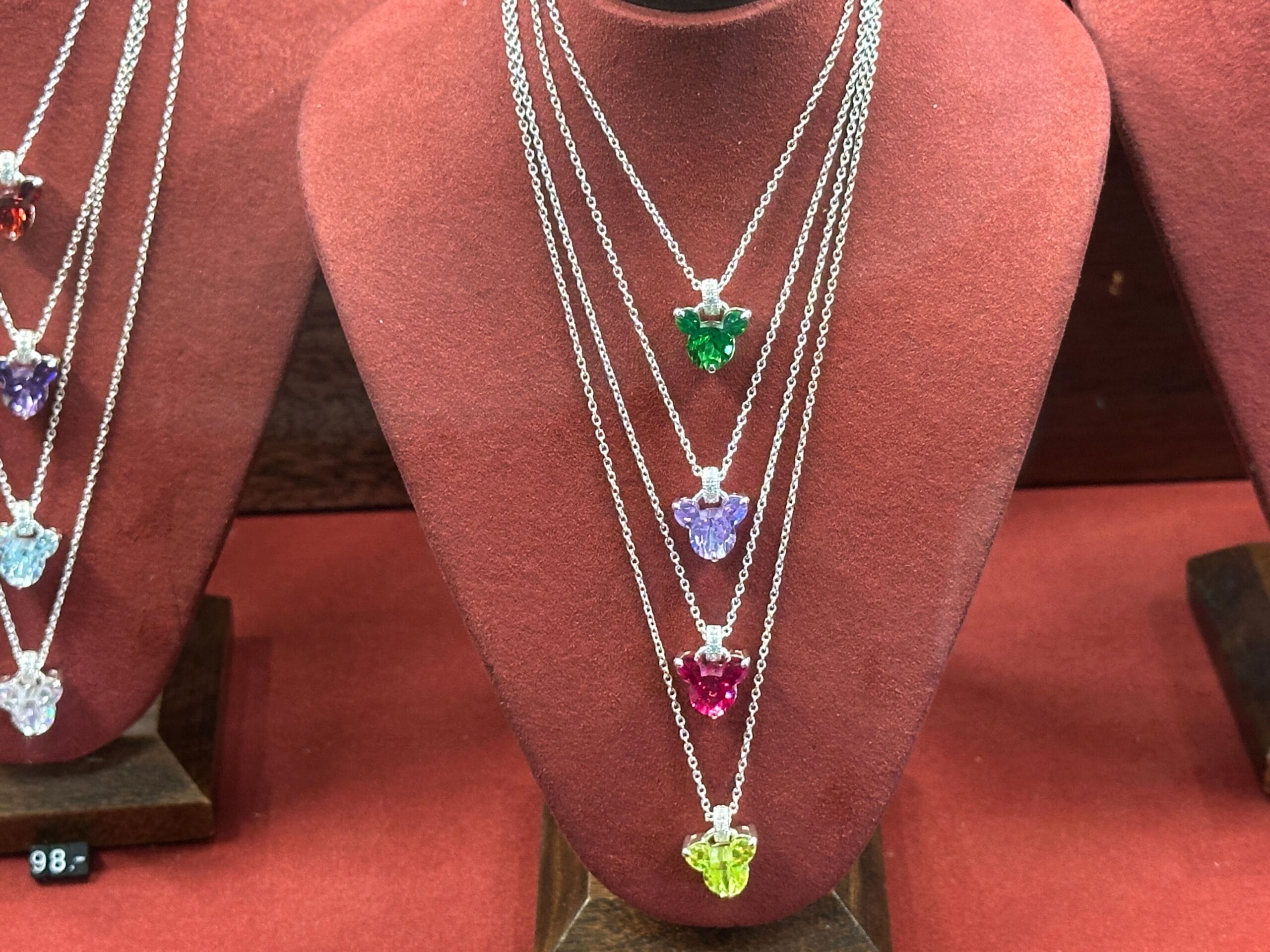 You can choose your birth month or your favorite color. Each Mickey pendant has one shaped stone colored to match the monthly birthstones.