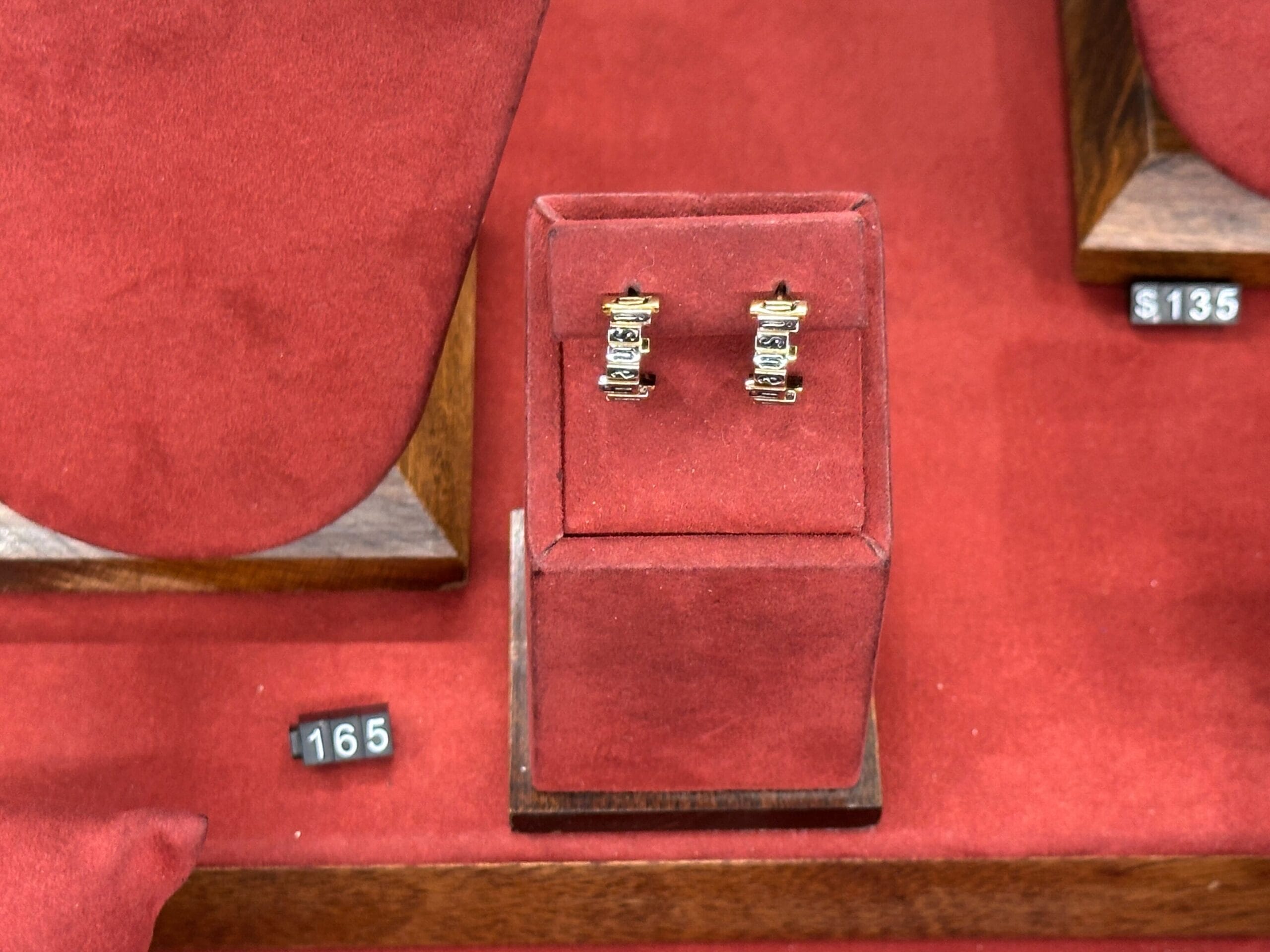 The earrings are hoops approximately 7.14 mm wide and 13.50 mm tall with post backs.