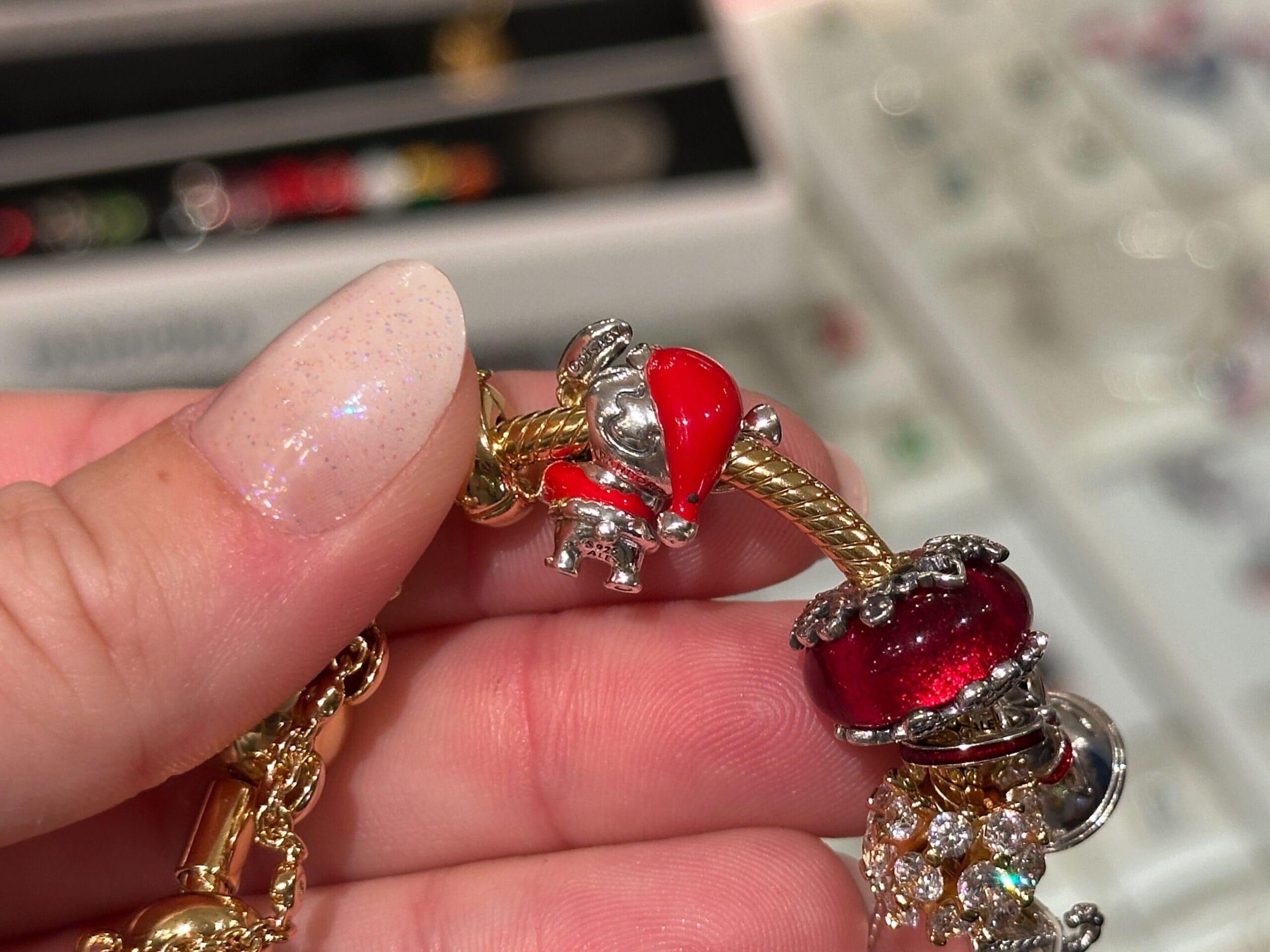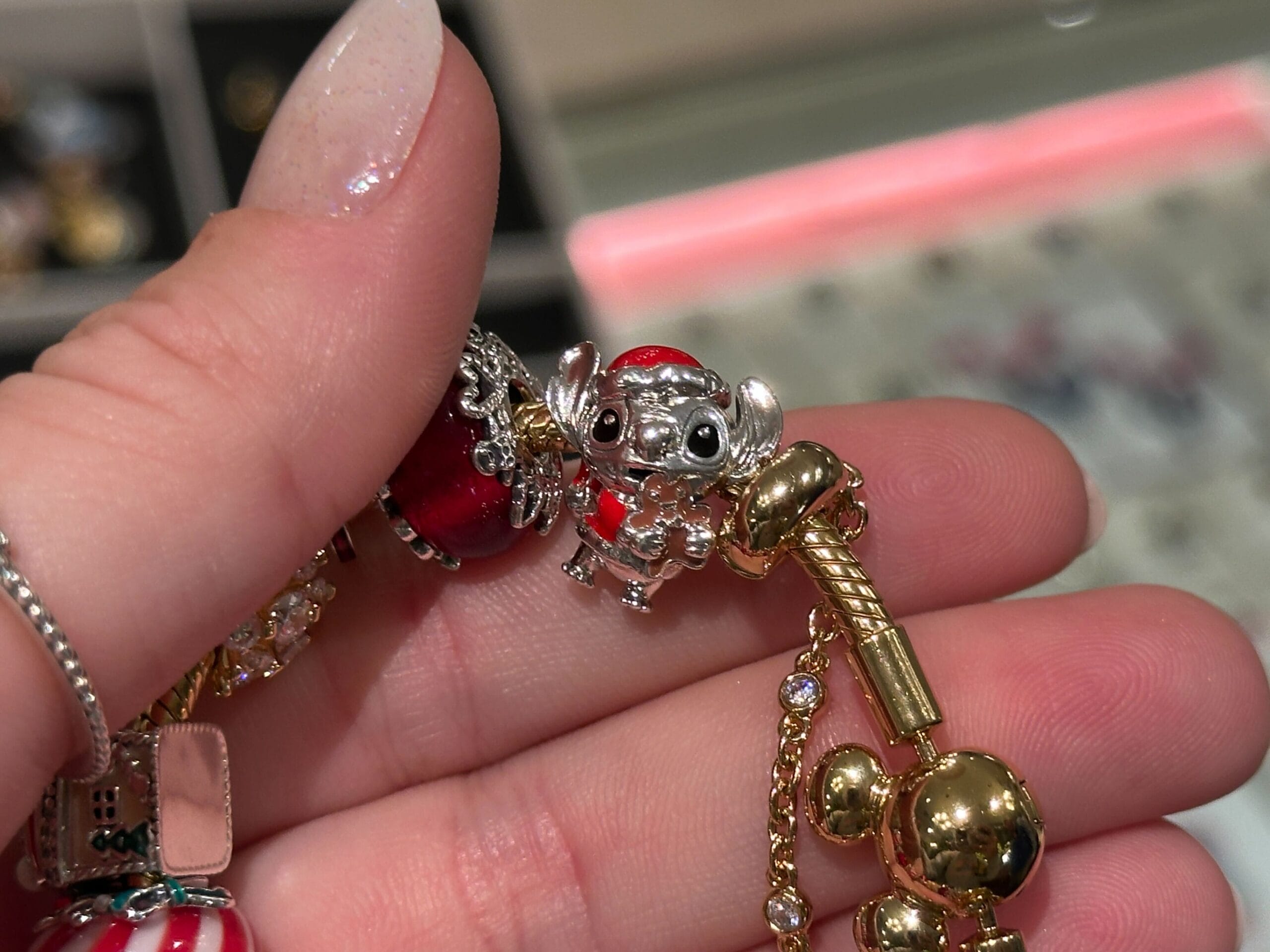 Last but not least is a slider charm by Pandora sculpted to look like Stitch in a Santa outfit. He’s eating a gingerbread man cookie.