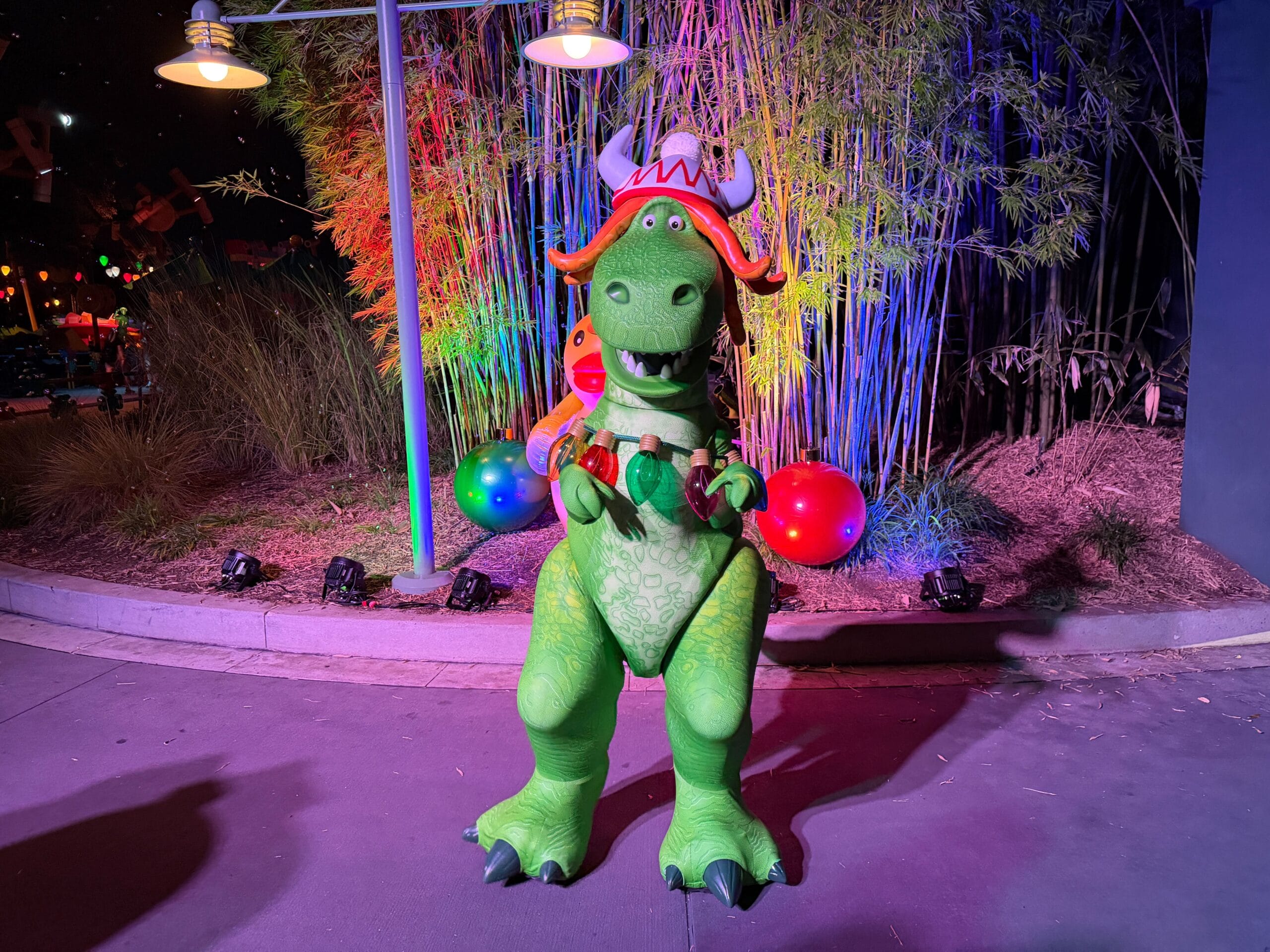 Catch Partysaurus Rex hanging out in Toy Story Land.