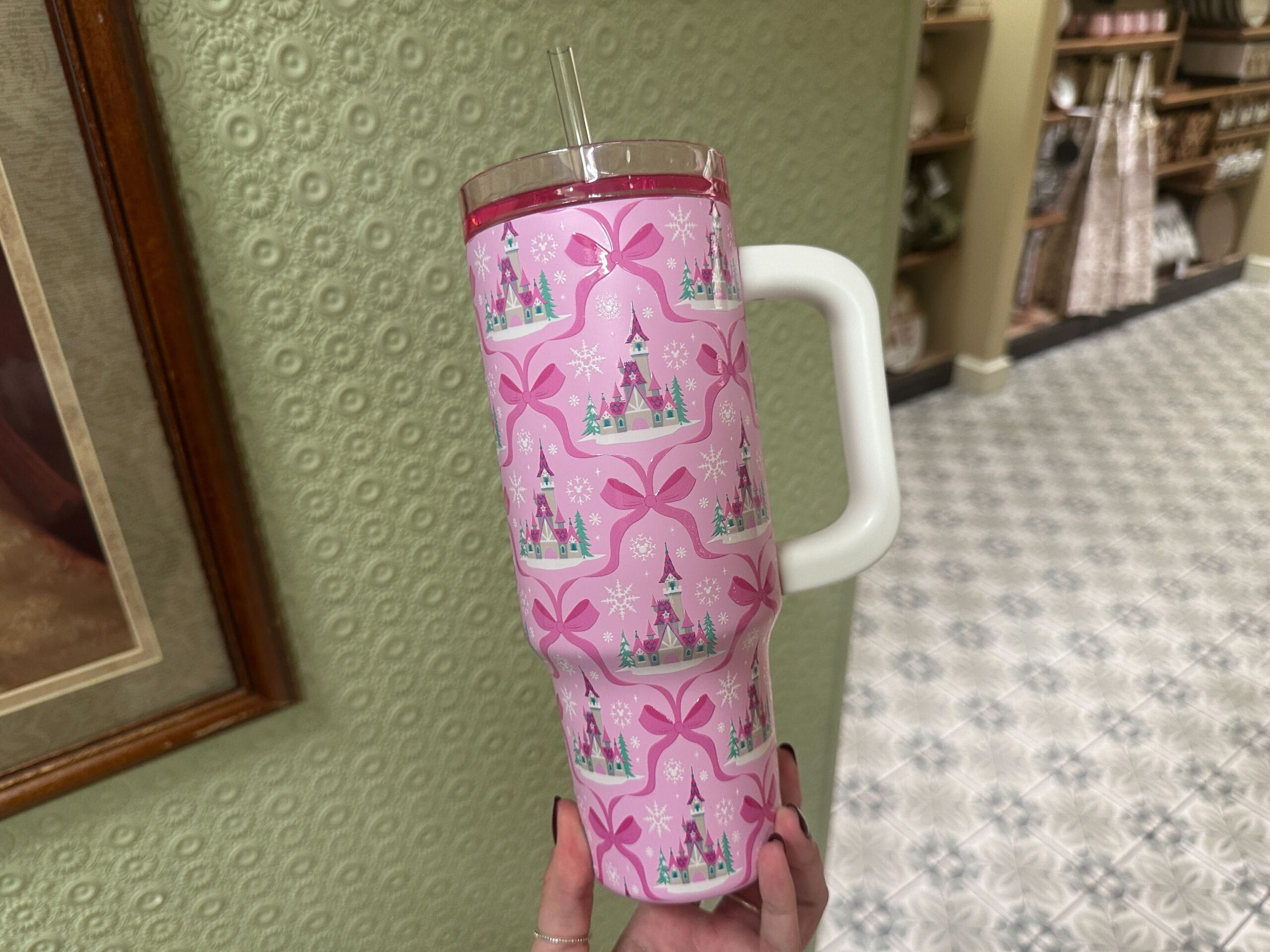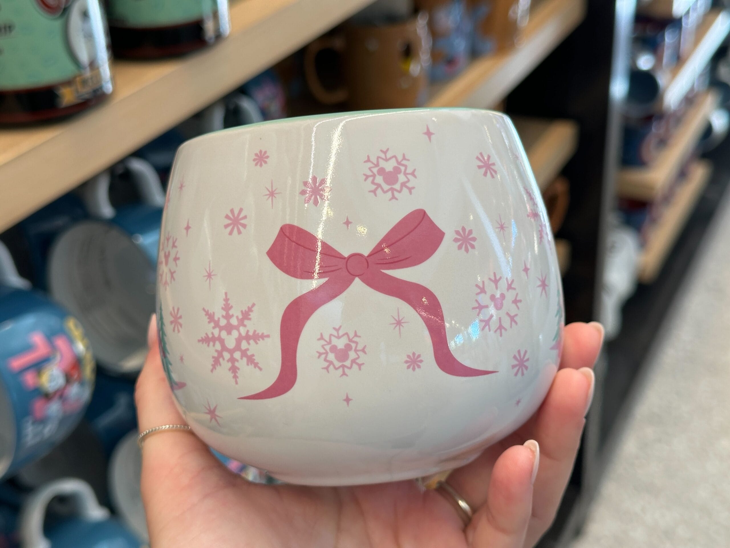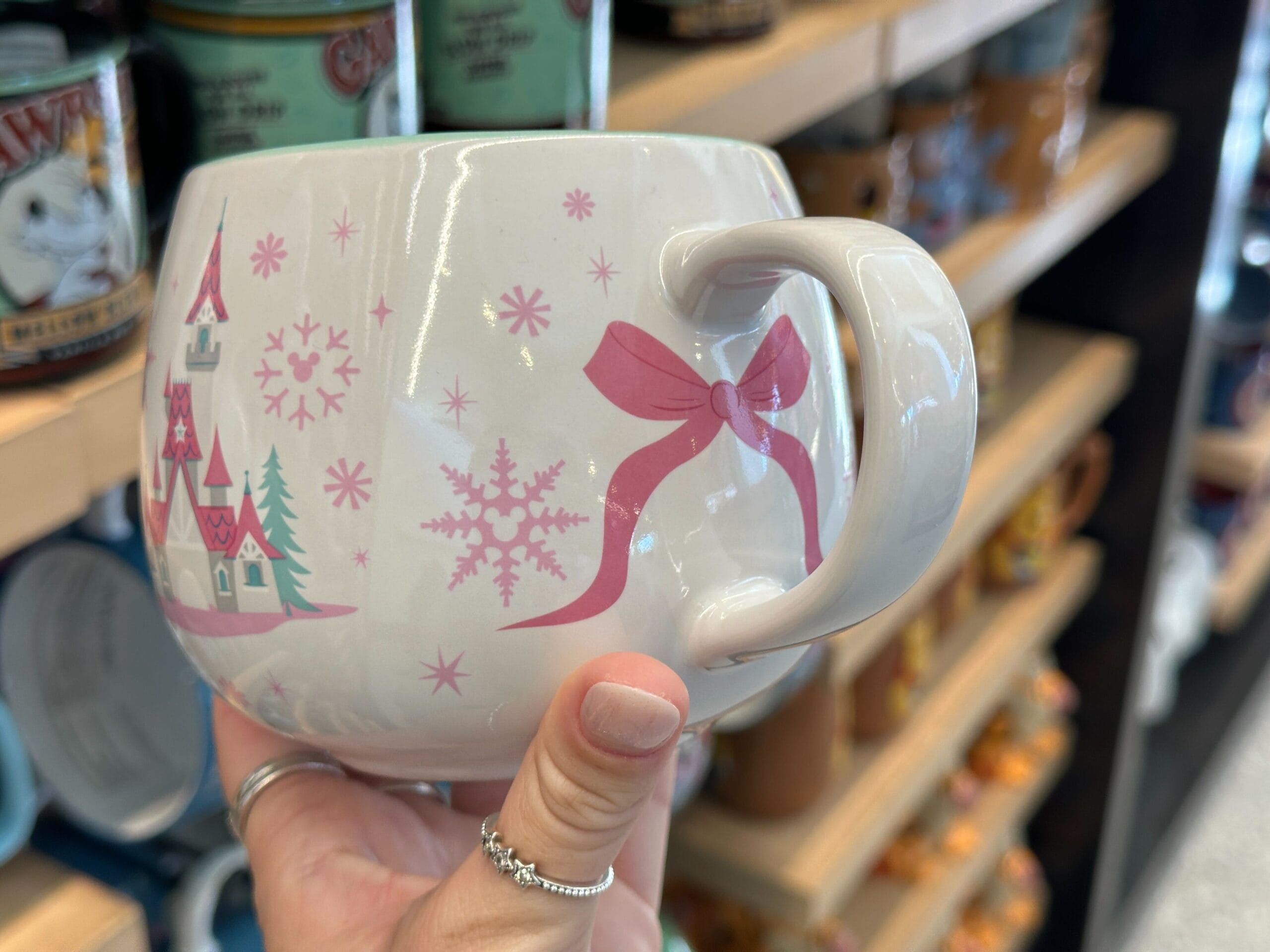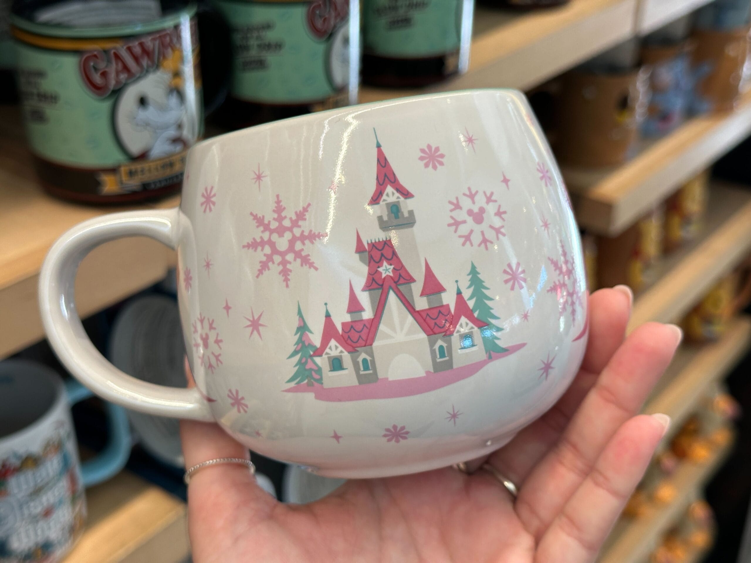 A new Mickey Hanukkah mug has arrived at Disney World, along with two pink wintry castle cups, featuring pink bows and snowflakes. These items can be found at various places across Disney World property.