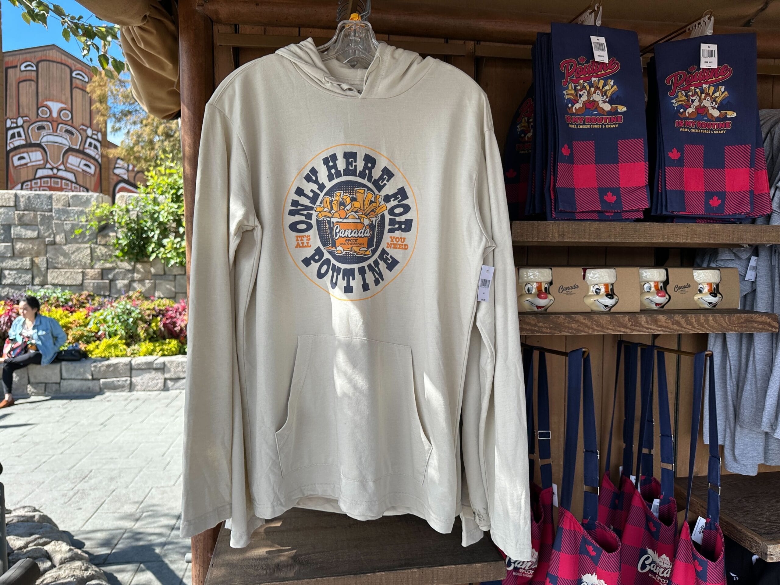 The Canada Pavilion of EPCOT has a new series of Chip ‘n’ Dale merchandise, plus a hoodie for poutine lovers.