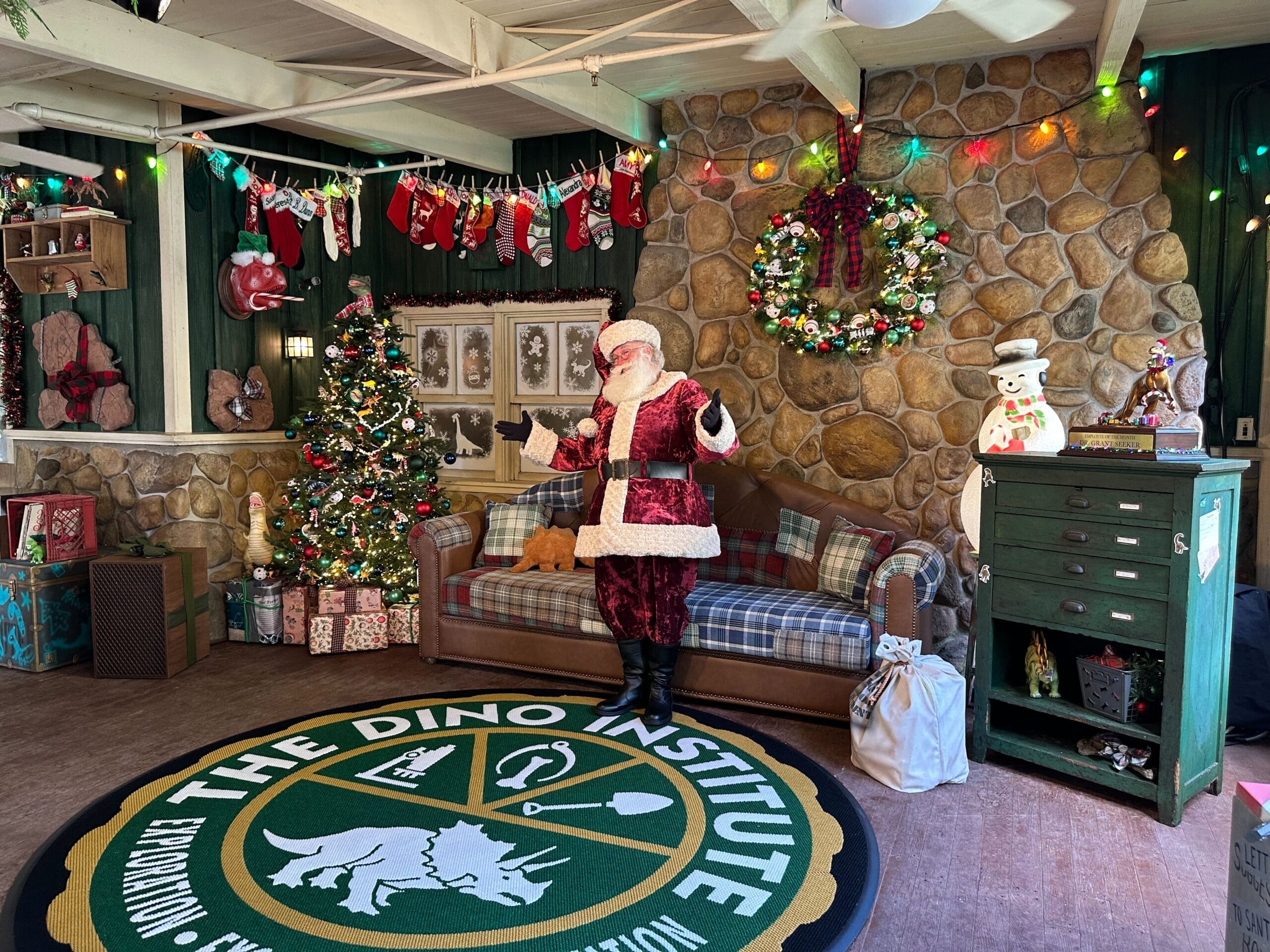 Santa visits for the annual Dino Institute Holiday Party and the patio will be decked out with props. Check out our full tour of the detailed dino decor from last year and watch our video of the meet and greet below.