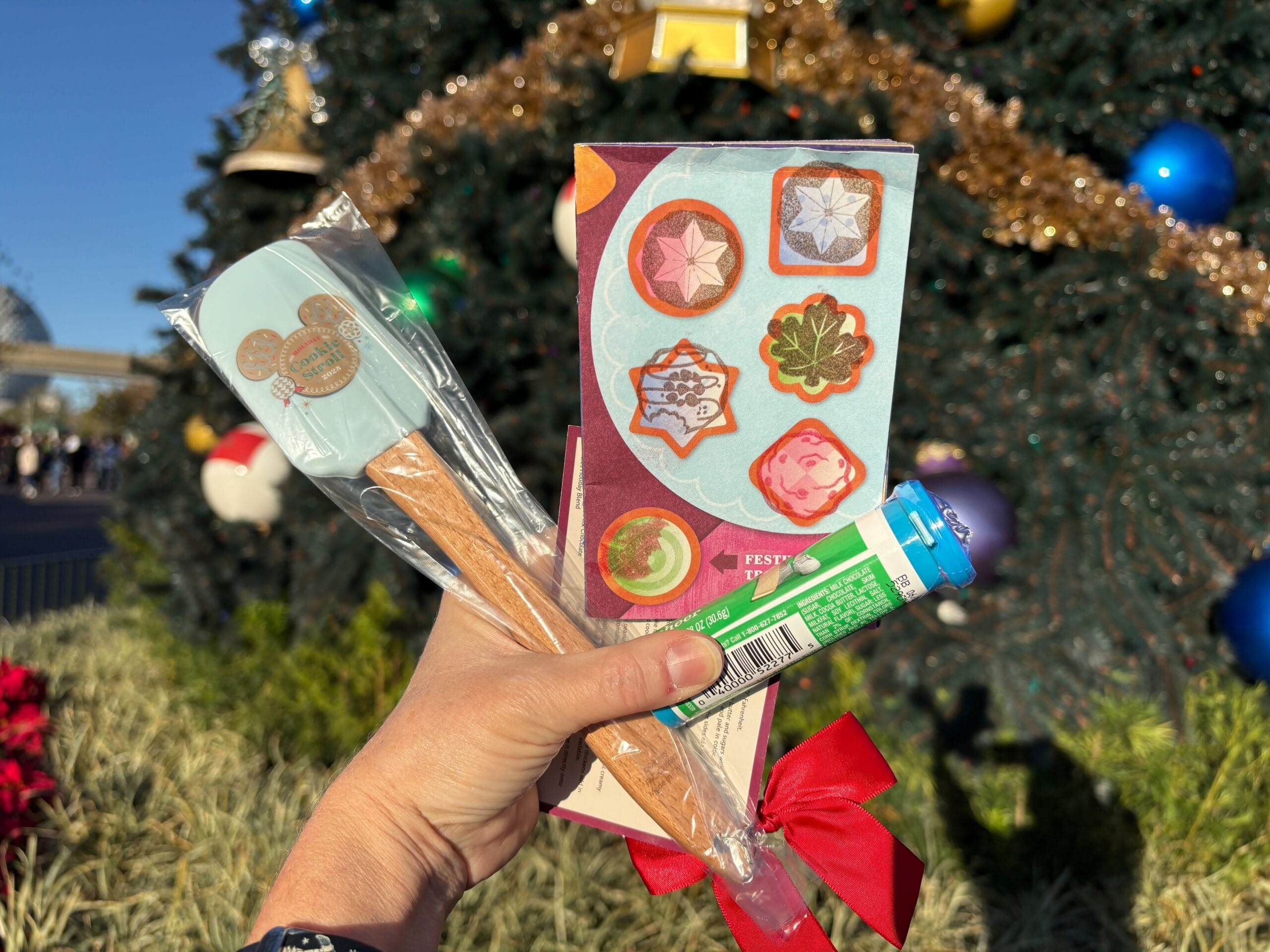You claim your cookie stroll completer prize at Holiday Sweets & Treats in World Showcase Plaza. This year’s prize is a spatula plus a recipe card and M&M’s minis.