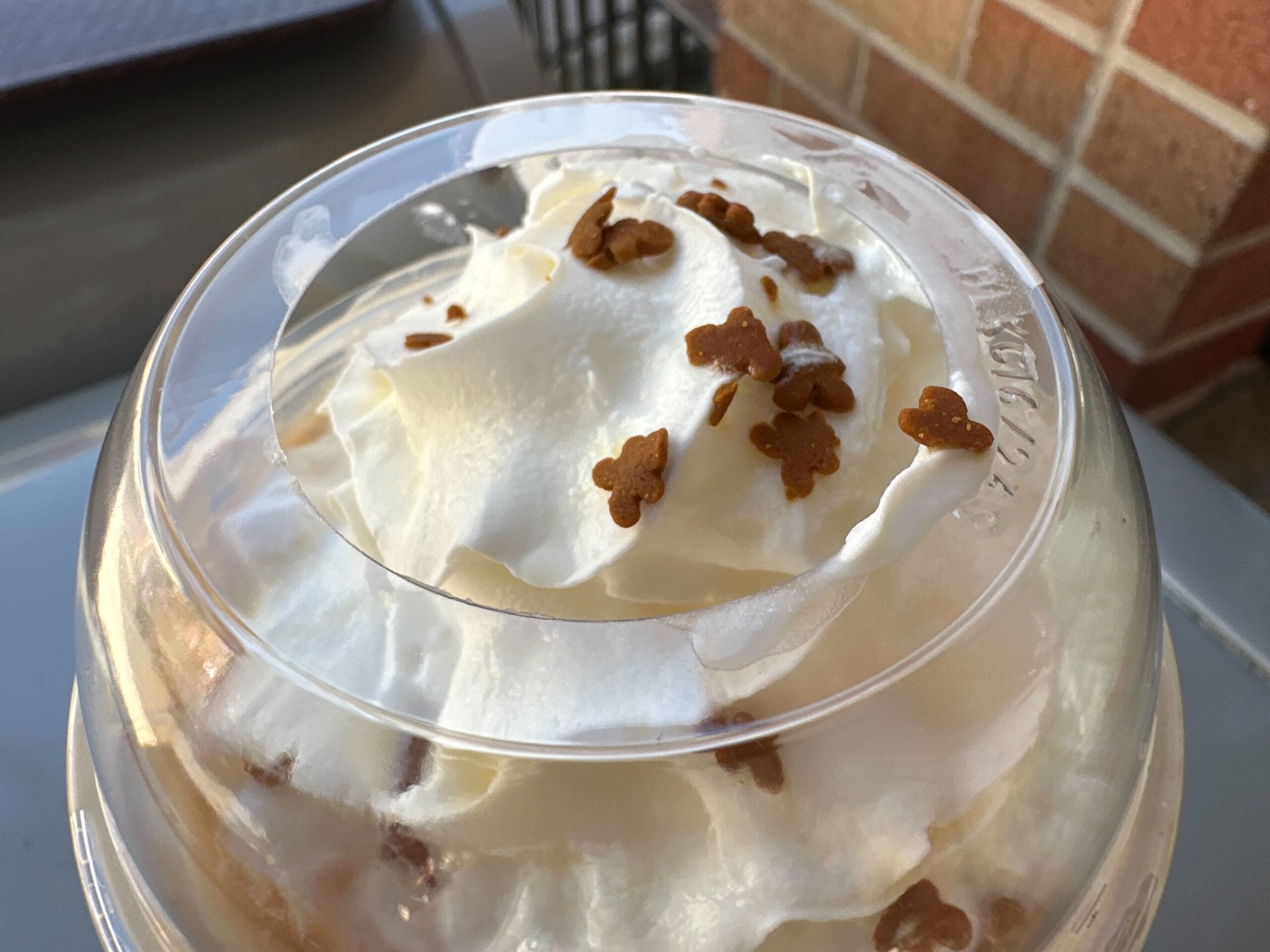 The latte flavor is strong, but the syrups make it more sugary sweet. Still, it’s not an overpowering sweetness. The gingerbread men topping is precious and by far the most adorable and seasonal topping we’ve seen so far.