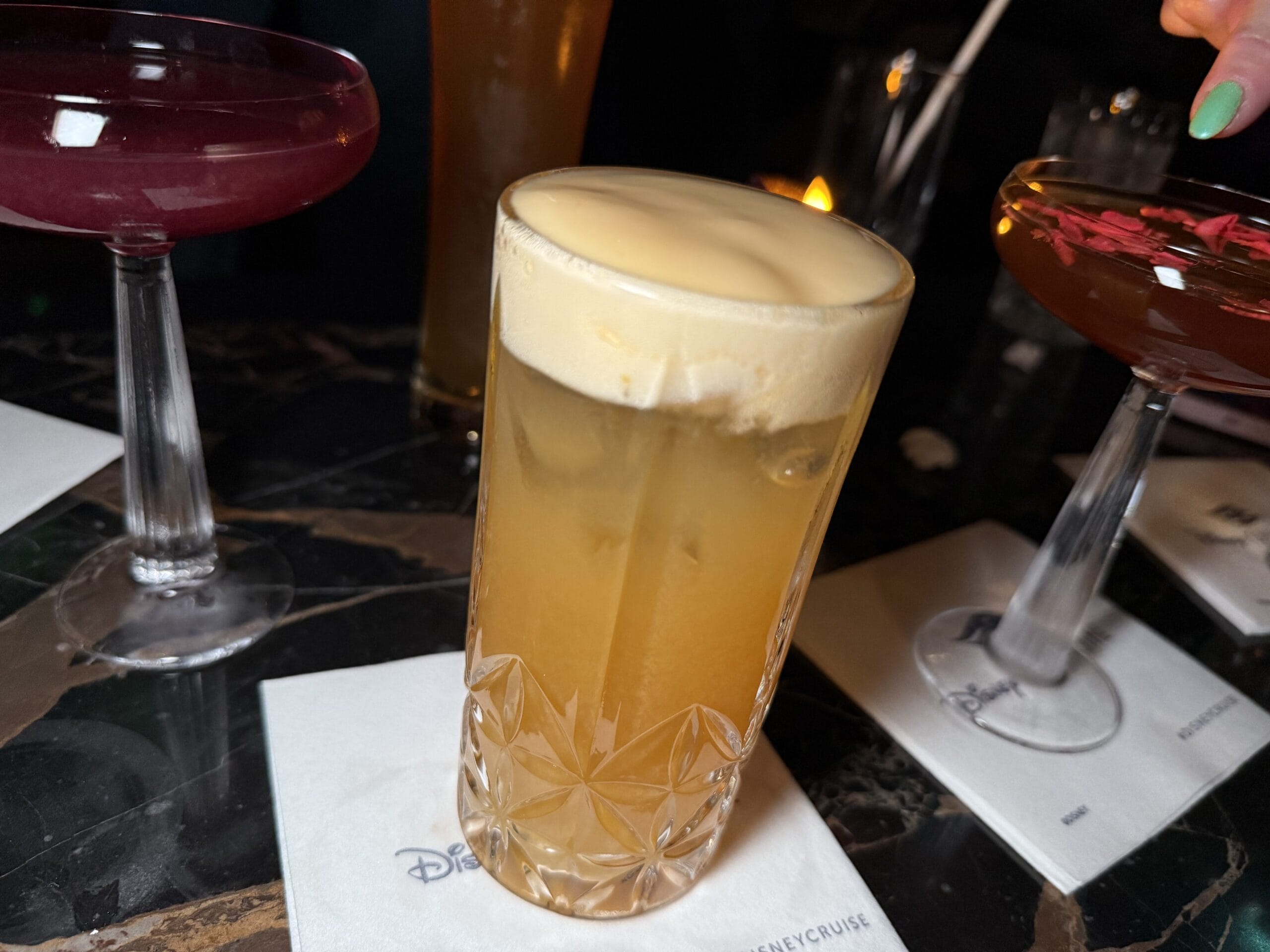 This drink consists of mostly pineapple juice; we wonder where the liquor is in this drink. By this point, we are very disappointed in the drink menu. Disney had the opportunity to do some cool New Orleans-style drinks like Hurricanes or Hudson River cocktails (depending on the coast represented), and they failed to get creative with these.