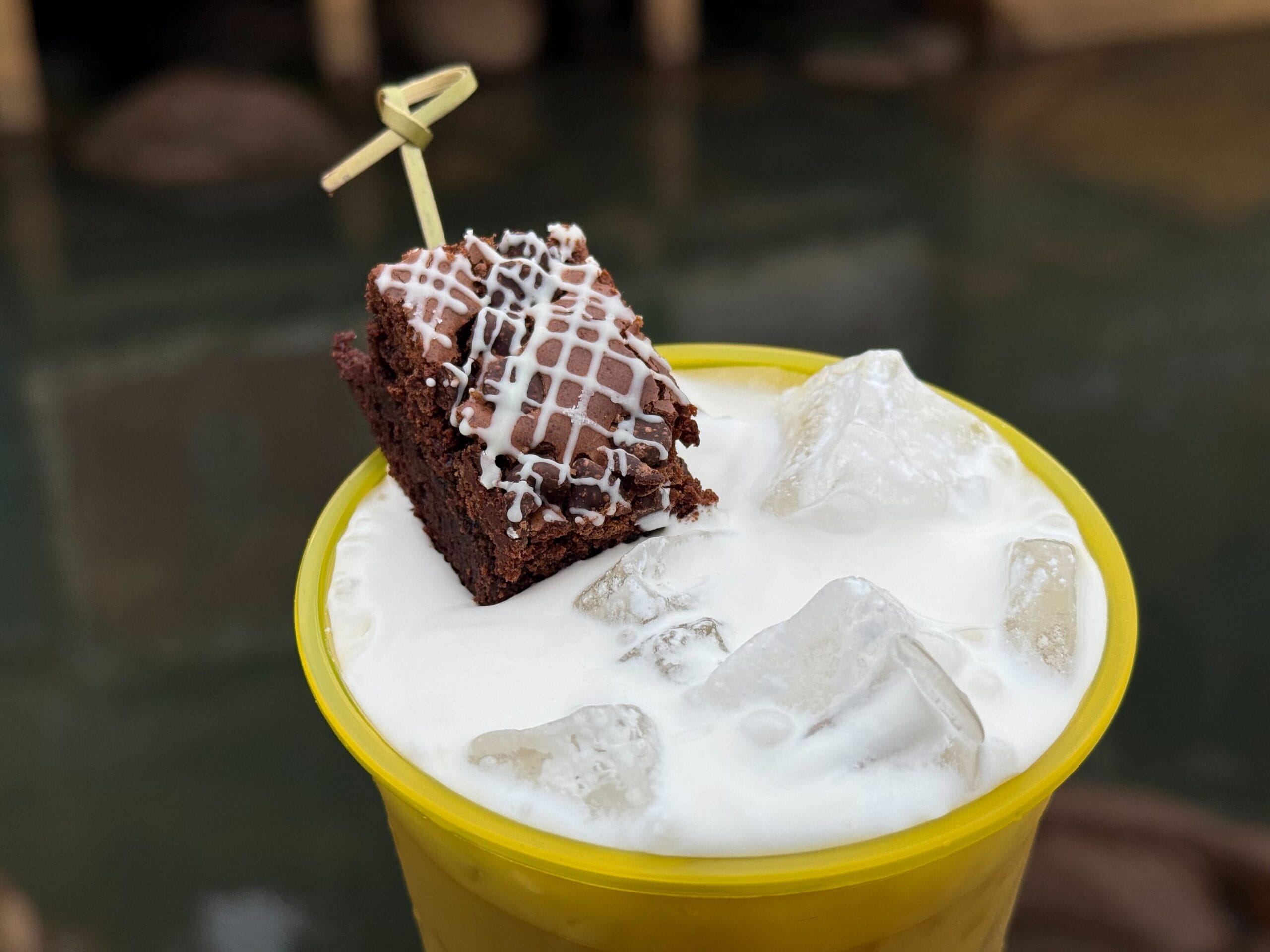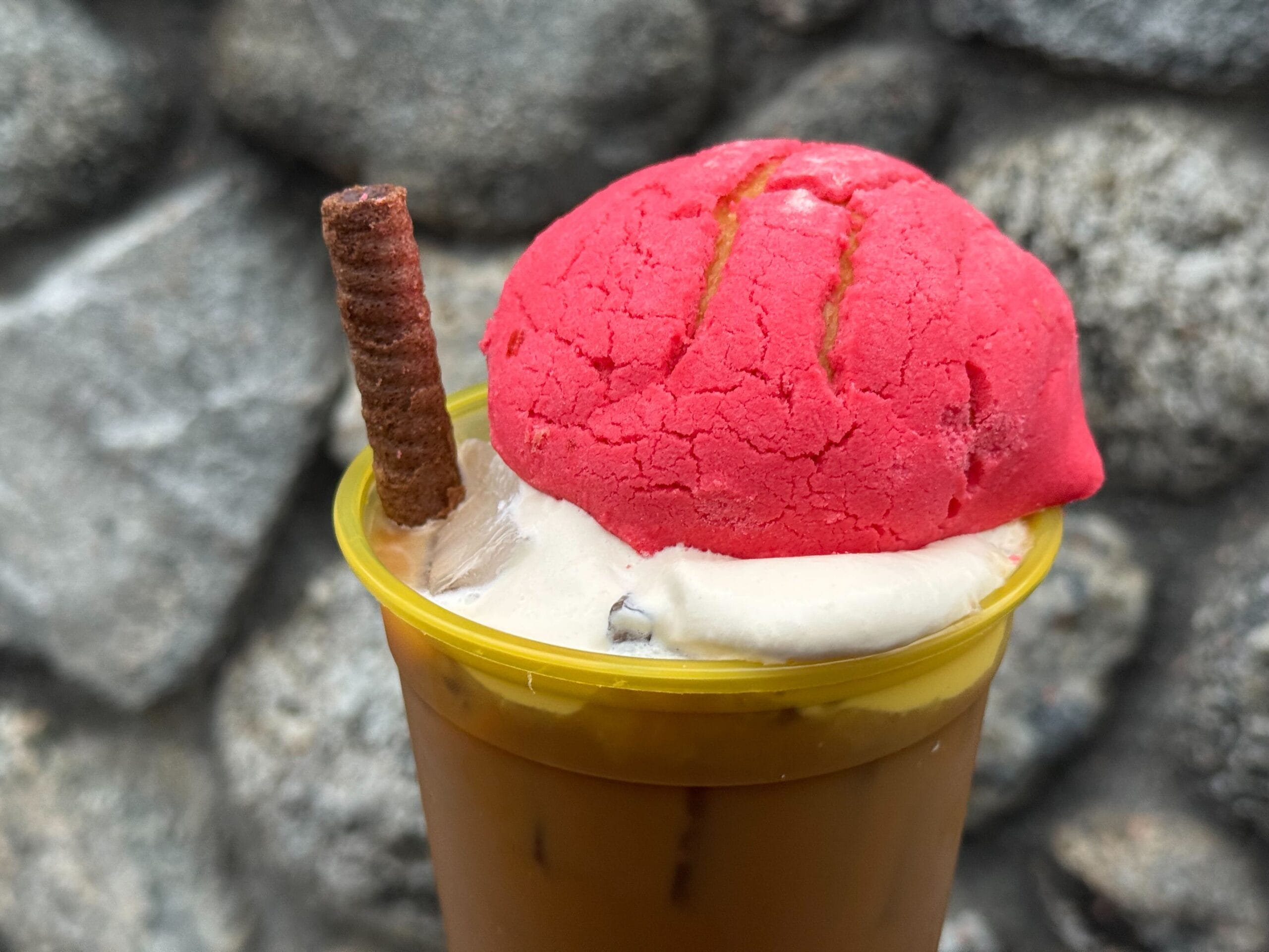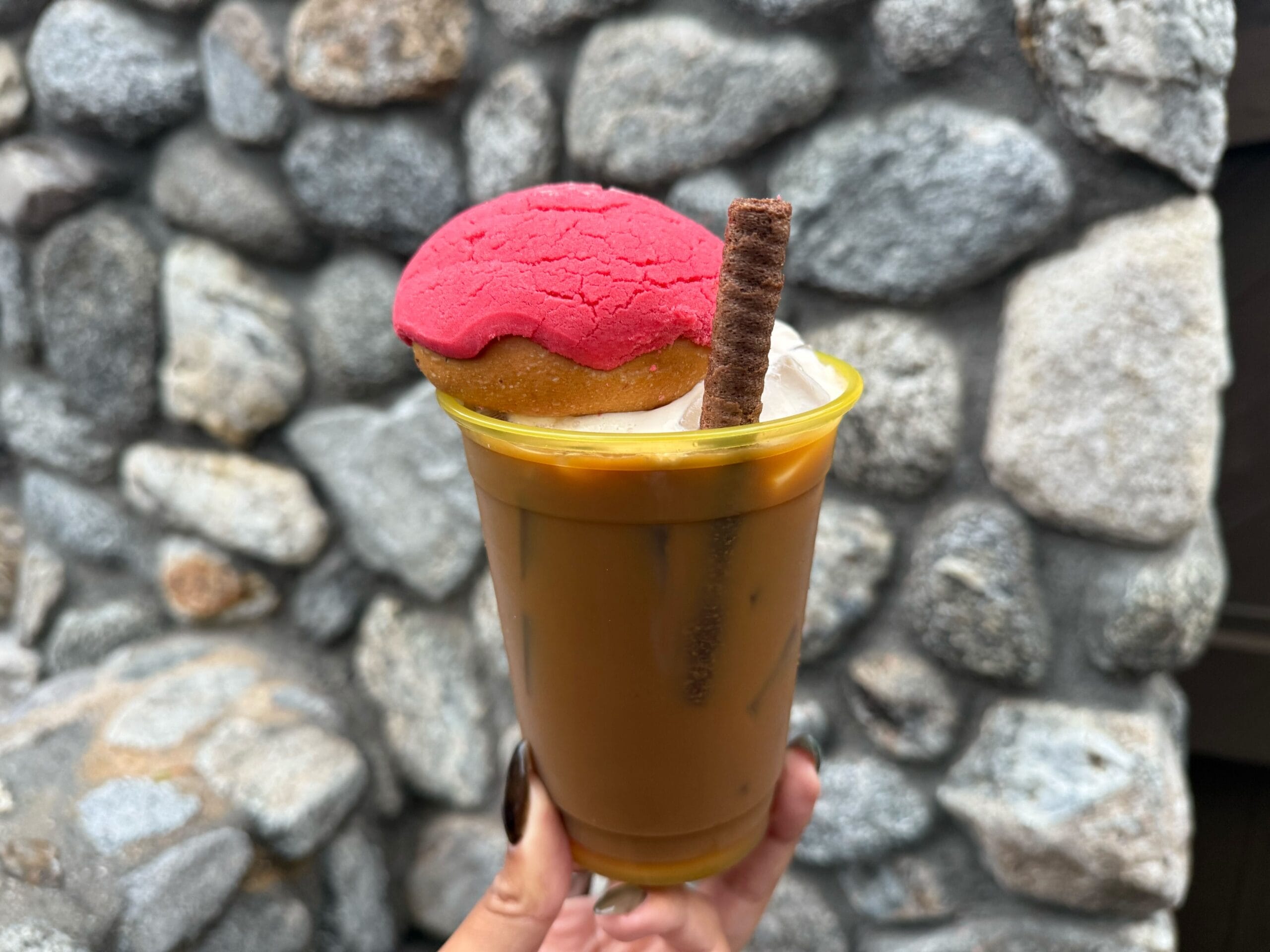 Spanish liqueur, Joffrey’s Mexico Origin Coffee, whole and condensed milk, and house-made spiced piloncillo syrup topped with a chocolate dulce de leche sweet cream and garnished with a mini pan dulce