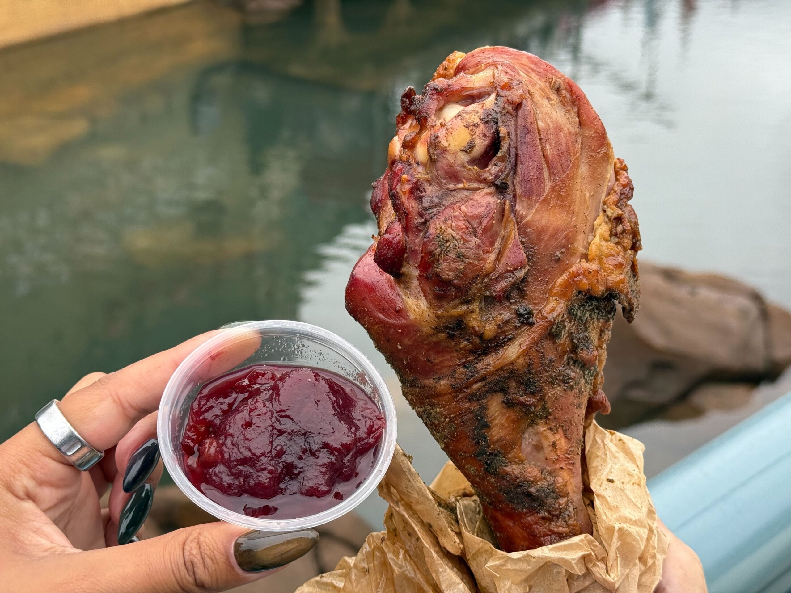Yes, we’re giving a turkey leg a 7. But trust us. The herby, robust flavor and seasoning permeate through the skin into the meat, which is juicy and tender and basically shredded under our forks. A bite with the included cranberry sauce really turns it into a delicious Thanksgiving dinner in a single turkey leg.