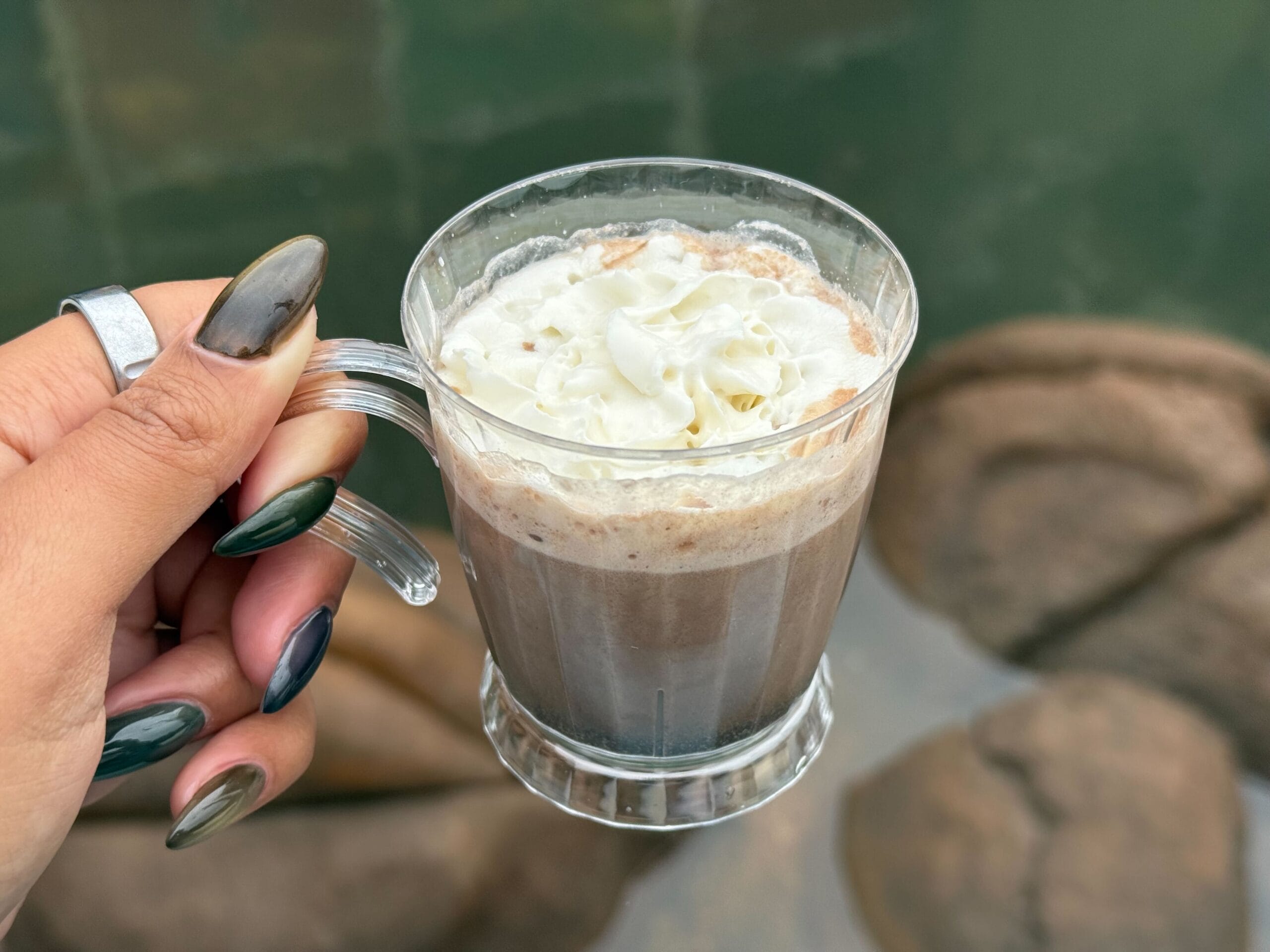 Irish whiskey, Hot Cocoa by Joffrey’s with cookies and cream flavors, melted chocolate, hazelnut purée, and Irish cream syrup garnished with whipped cream