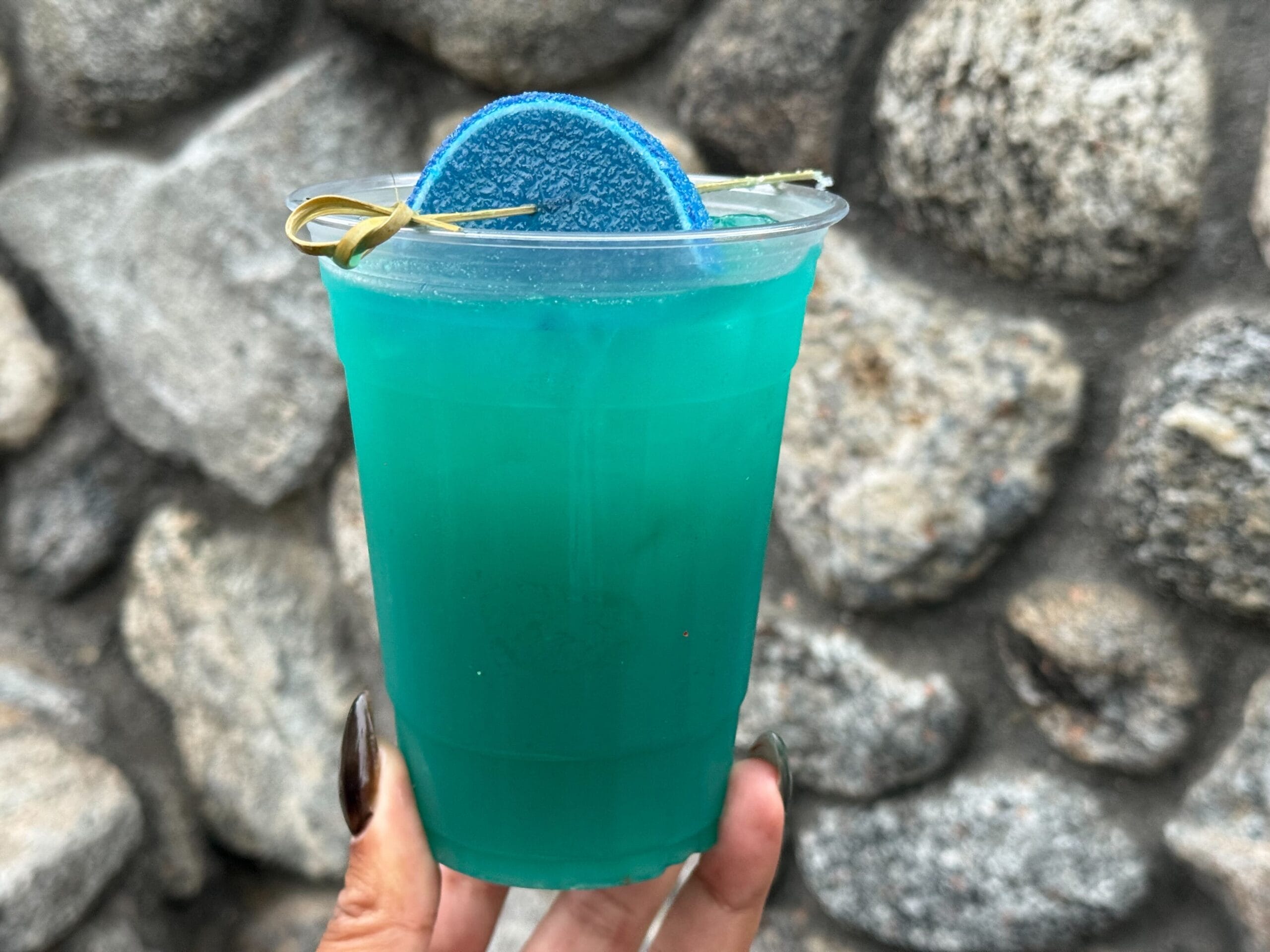 Pineapple, orange and lemon juices, blue raspberry syrup, and coconut purée garnished with a blue raspberry gummy candy (Non-alcoholic)