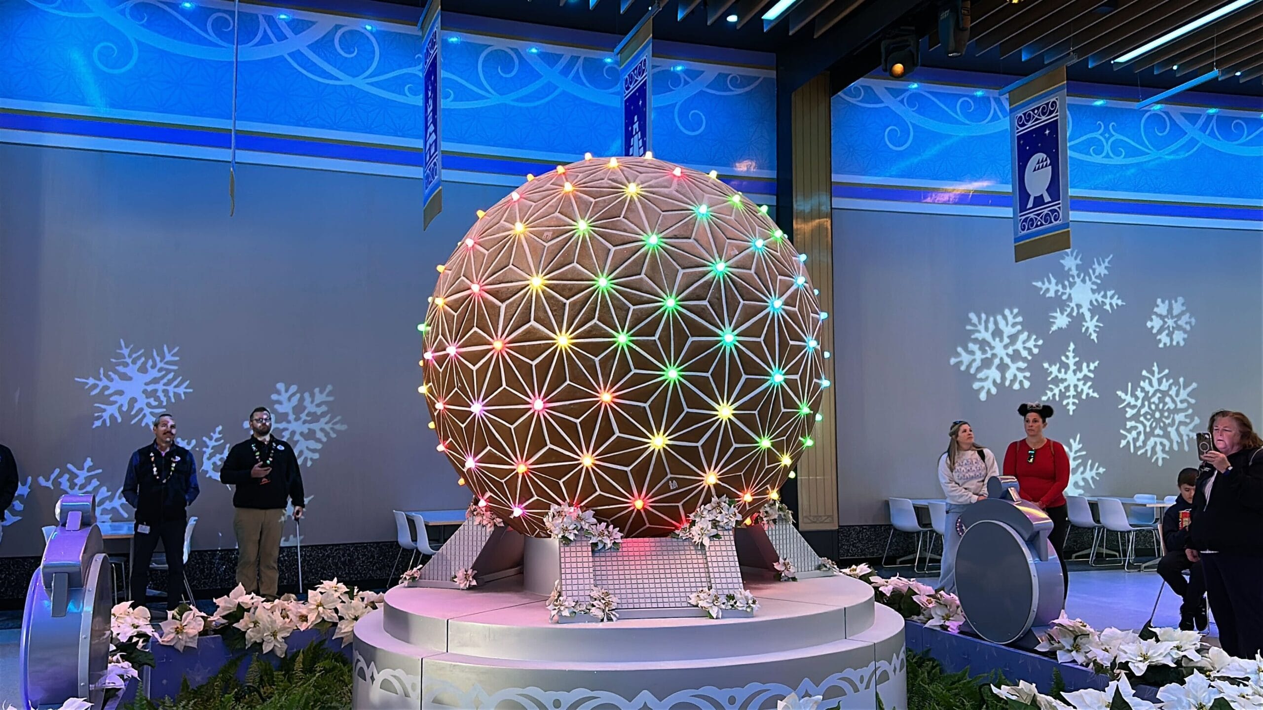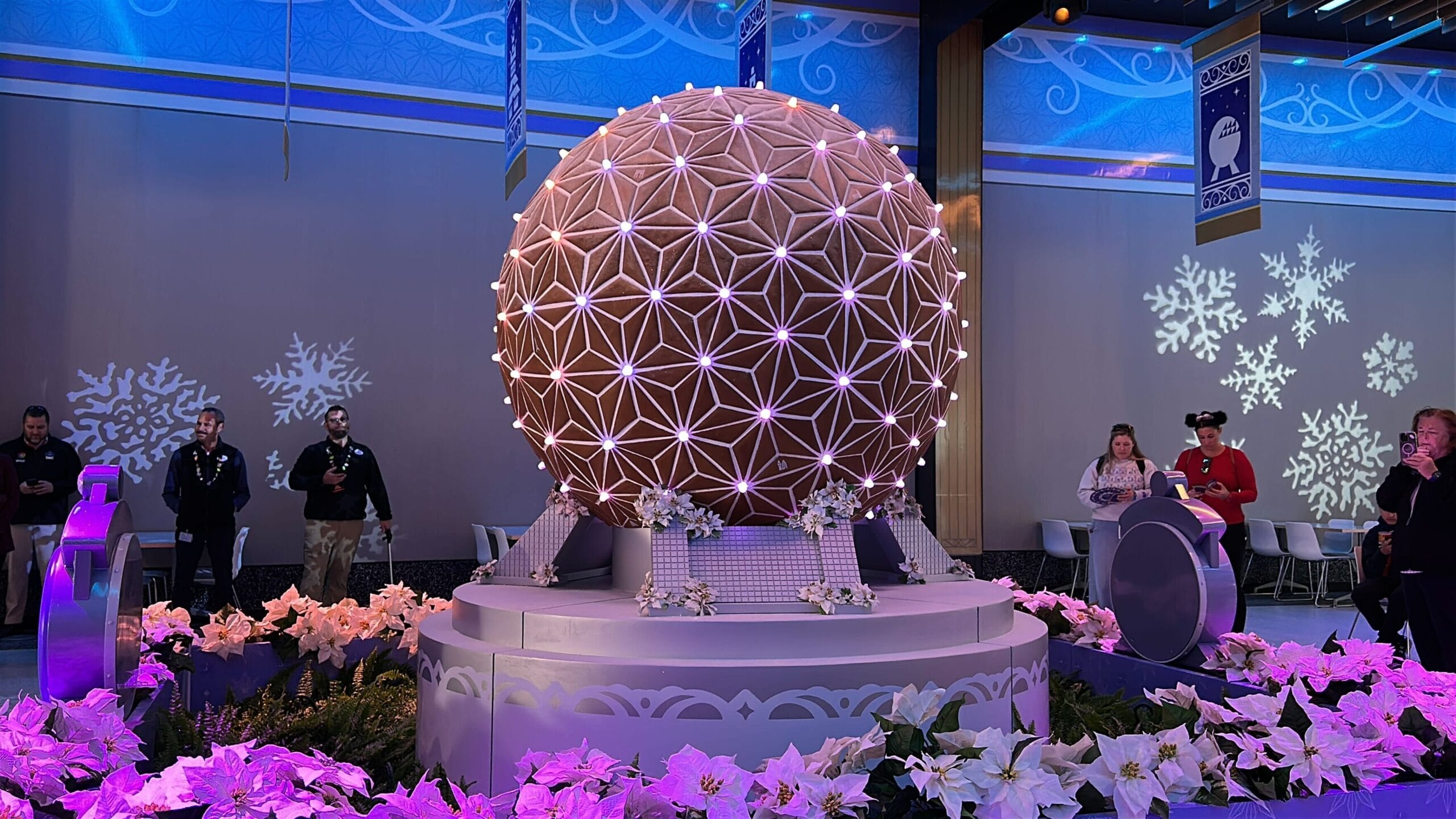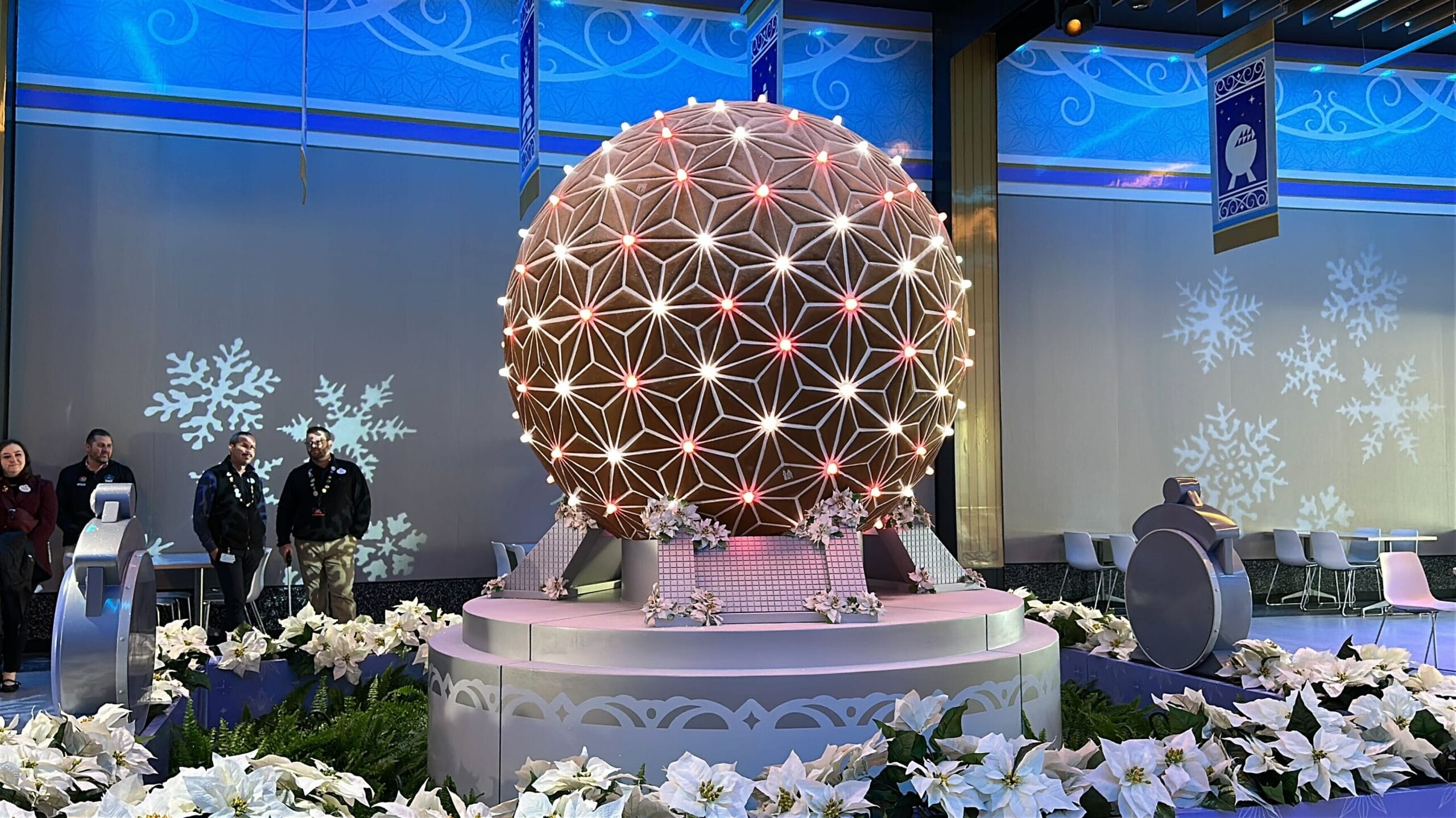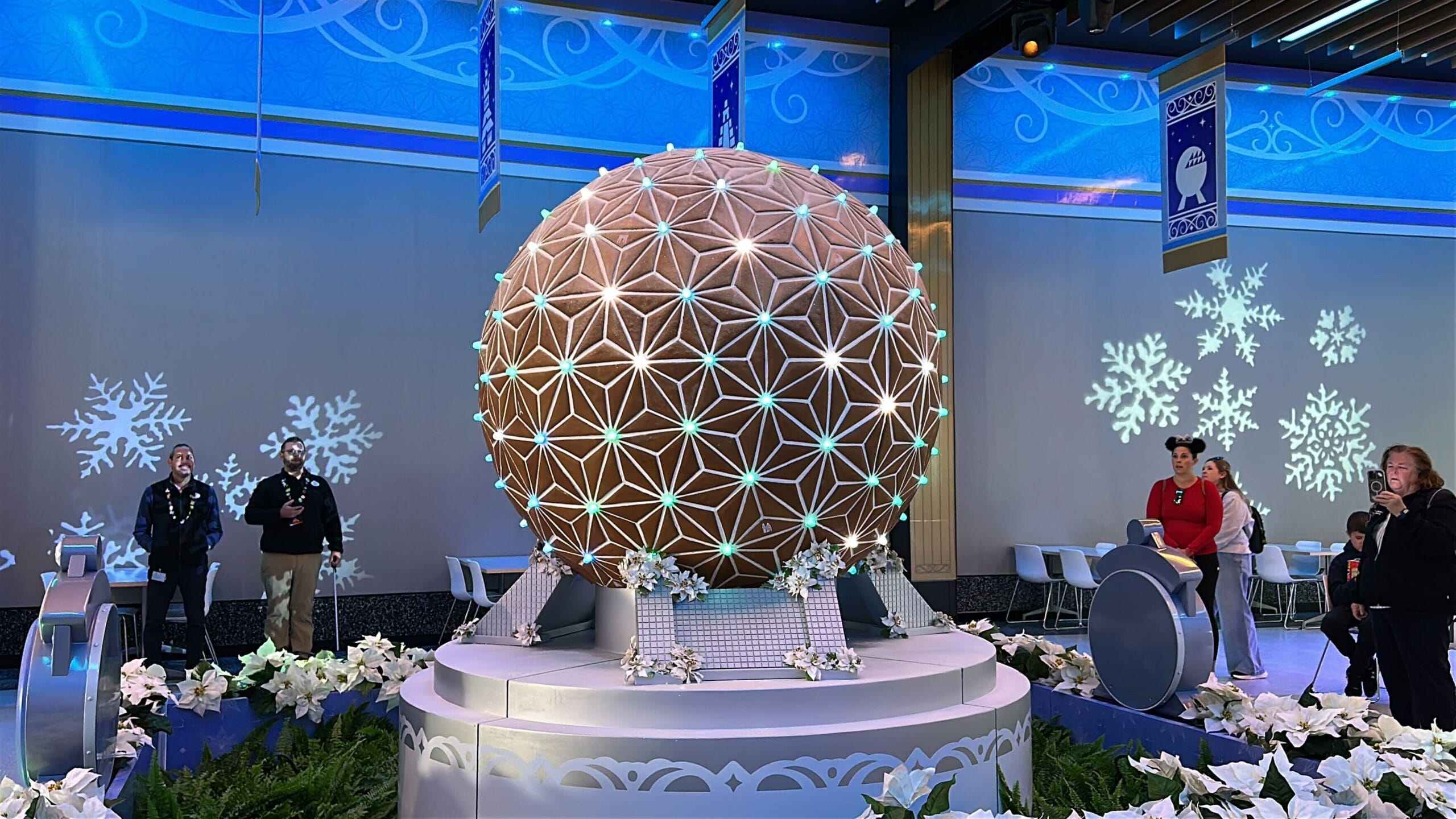 The circular tables have Spaceship Earth gingerbread decals.