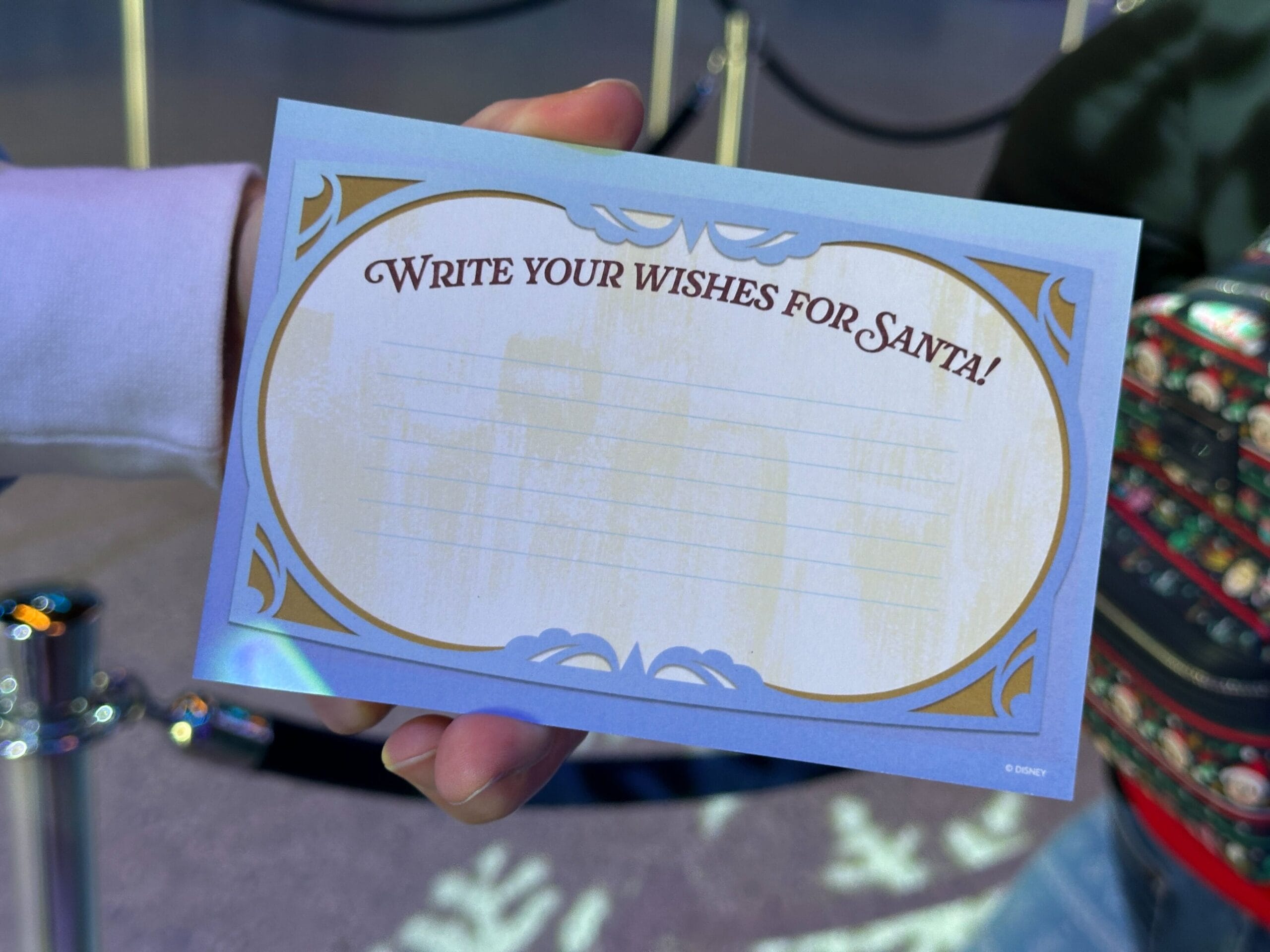 Cast Members hand out cards to guests for them to write their wishes for Santa.