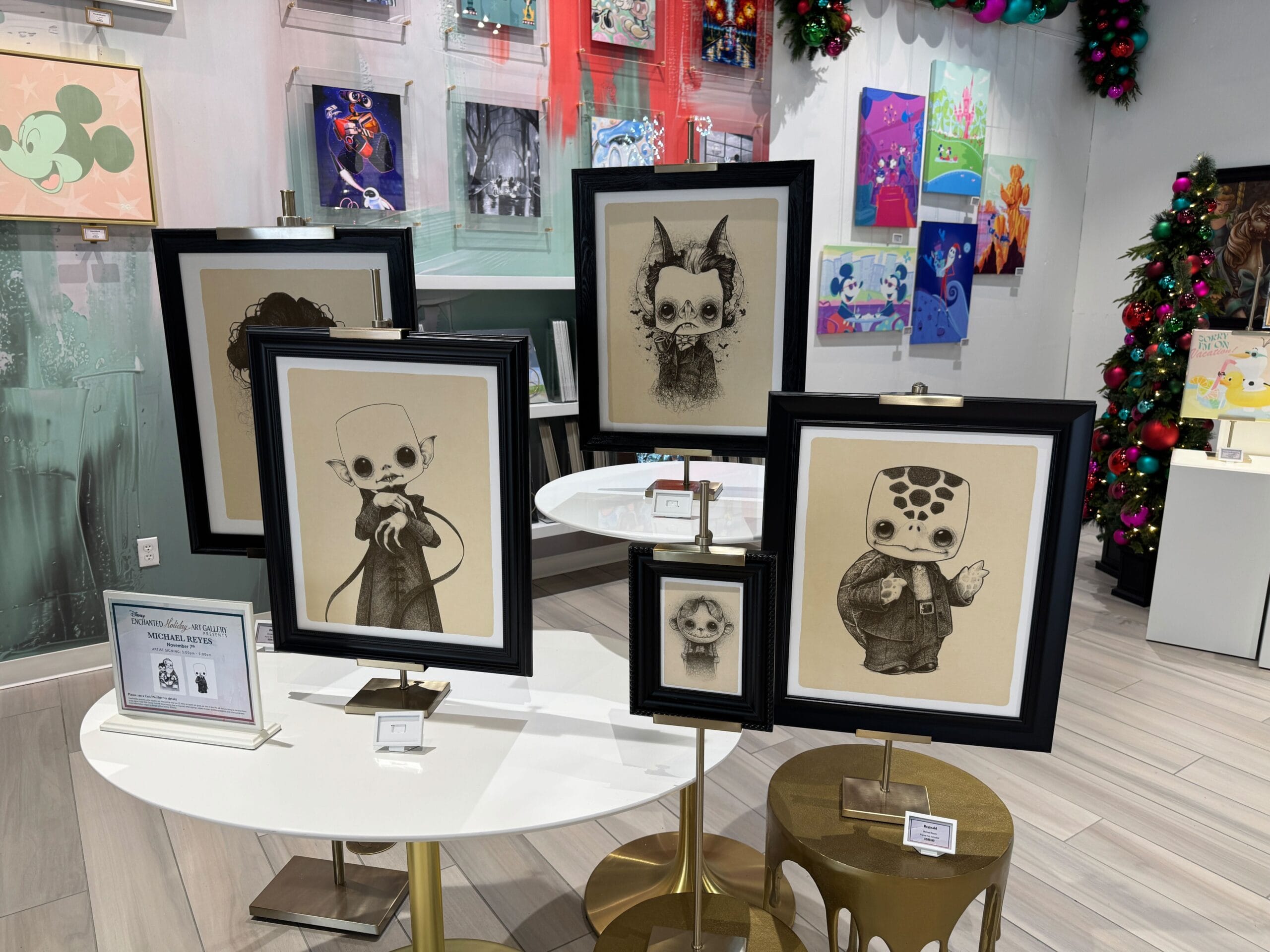 In addition to Disney pieces, there is artwork by Michael Reyes, known for his Gideon’s Bakehouse art.