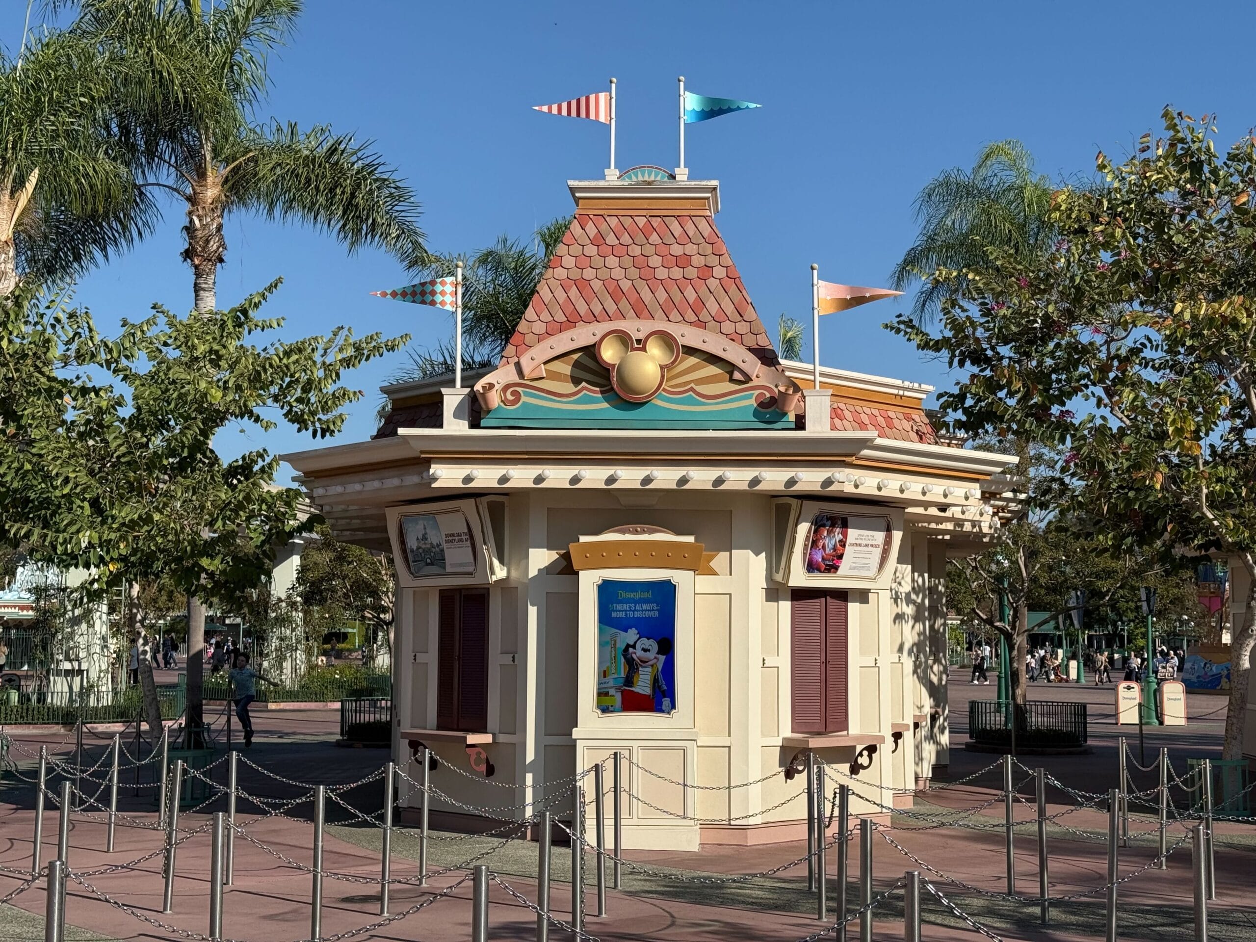 Old ticket booths have begun to close and some have been combined at the Disneyland Esplanade to condense the number of booths that are open to assist guests.
