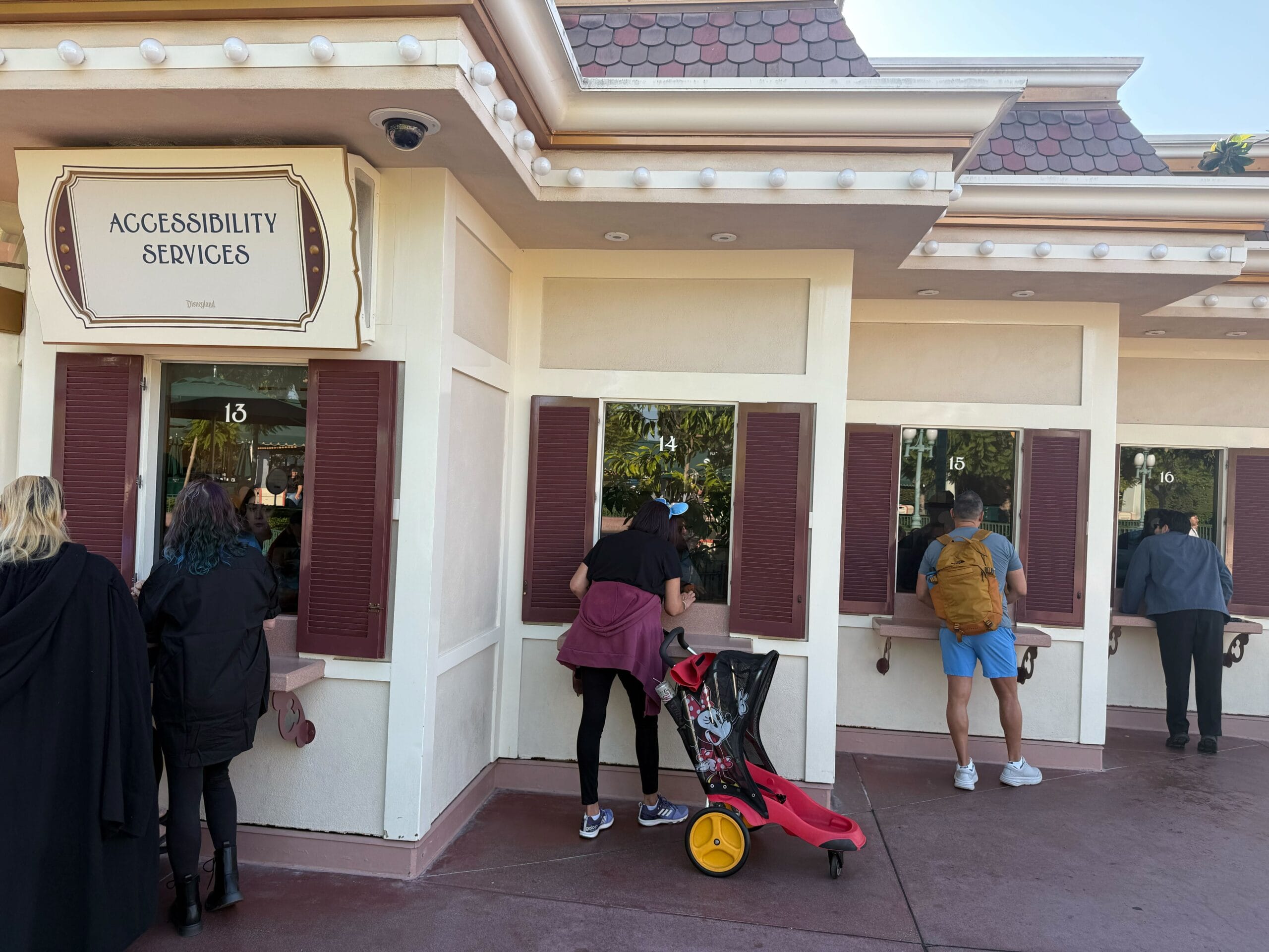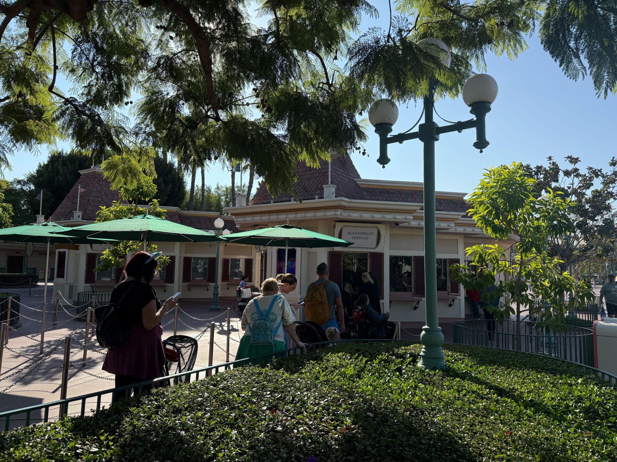 Accessibility Services windows are open, and those are located near the entrance to California Adventure.