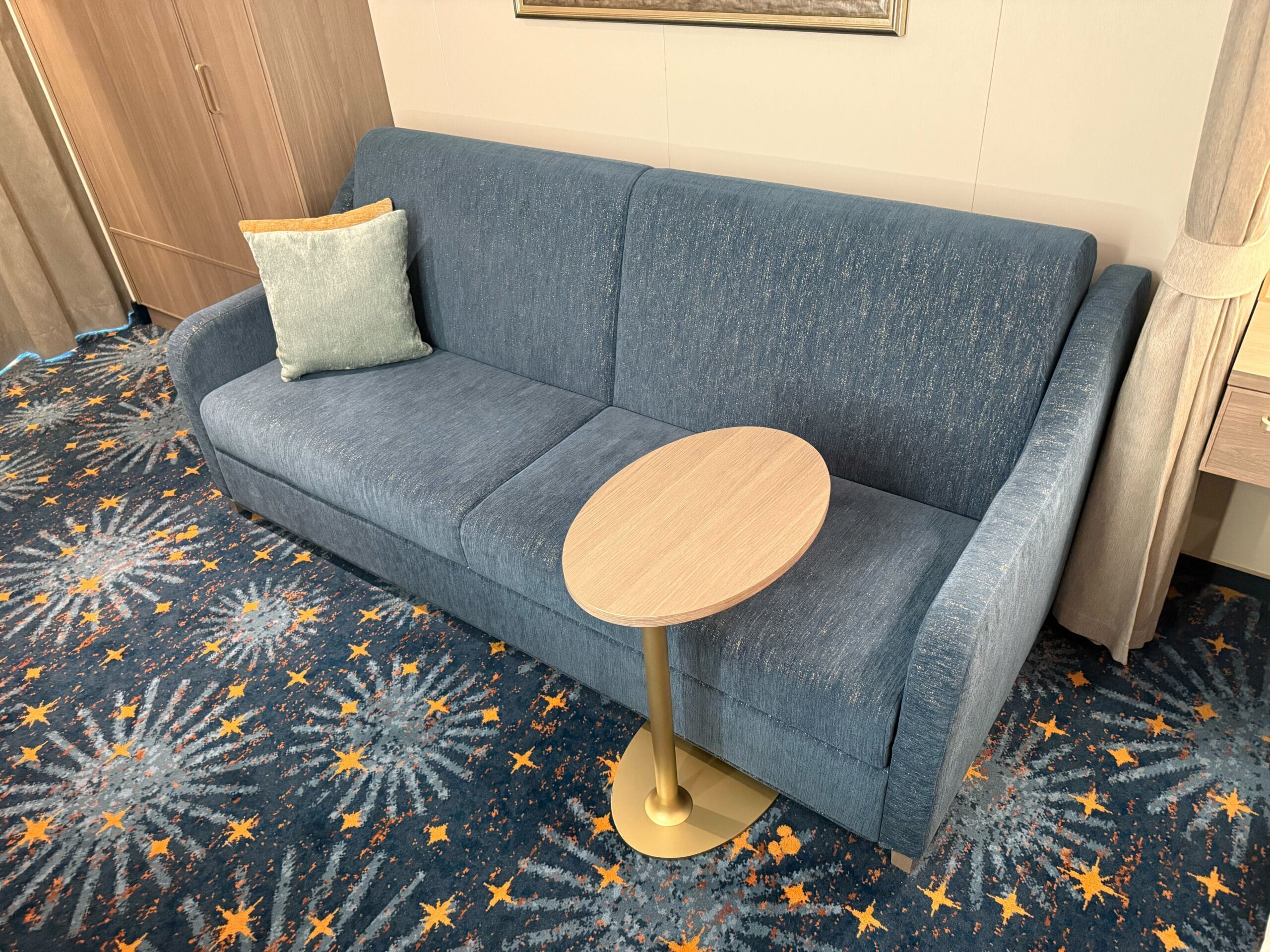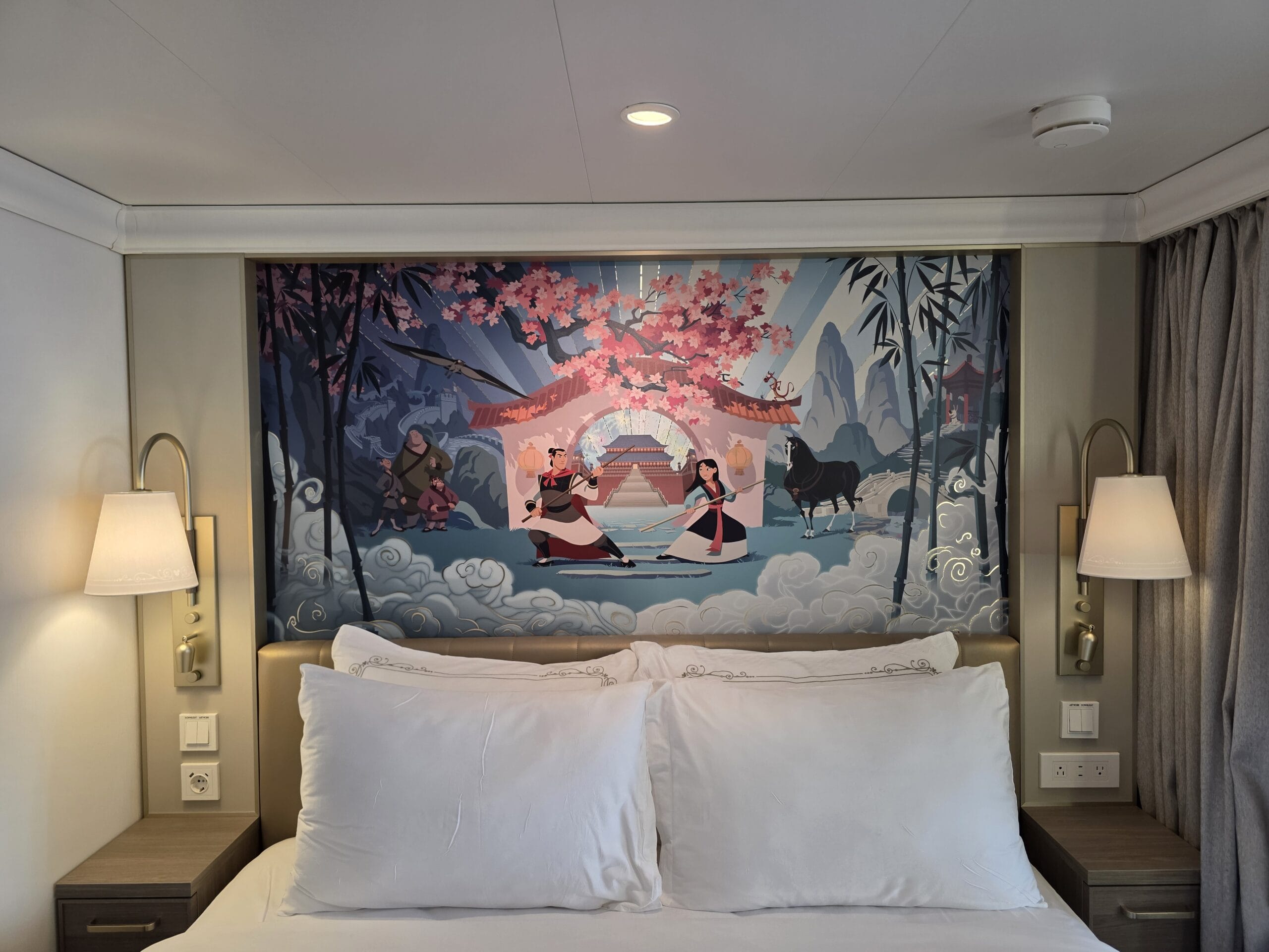 We also took a look in the other themed rooms in this category. They are all exactly the same, with the only exception being the artwork behind the bed and sofa. Pictured above is the Mulan-themed stateroom.