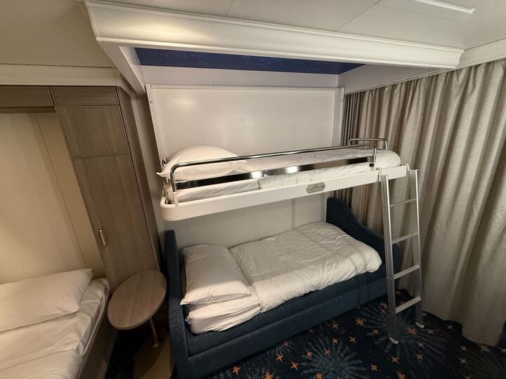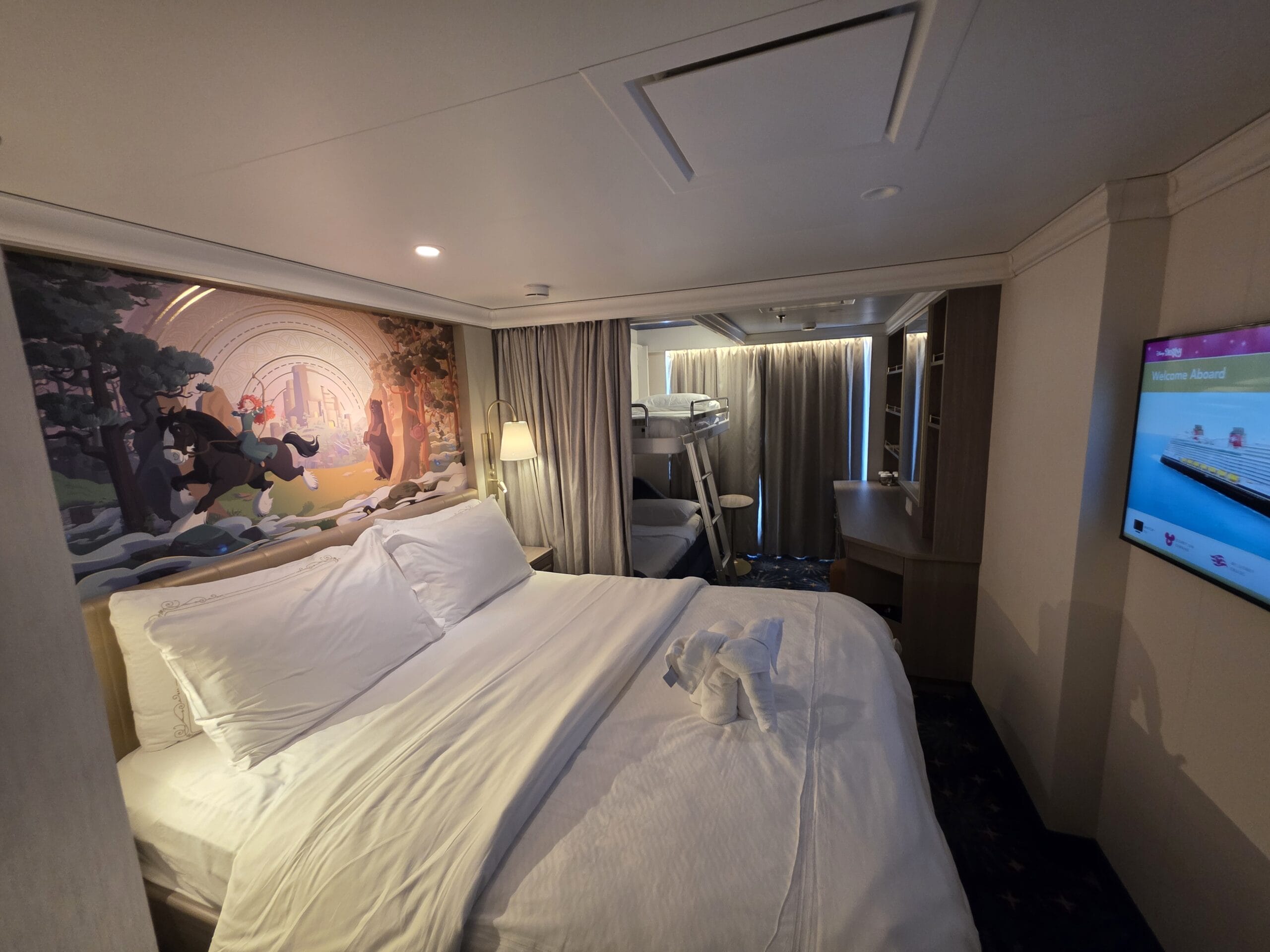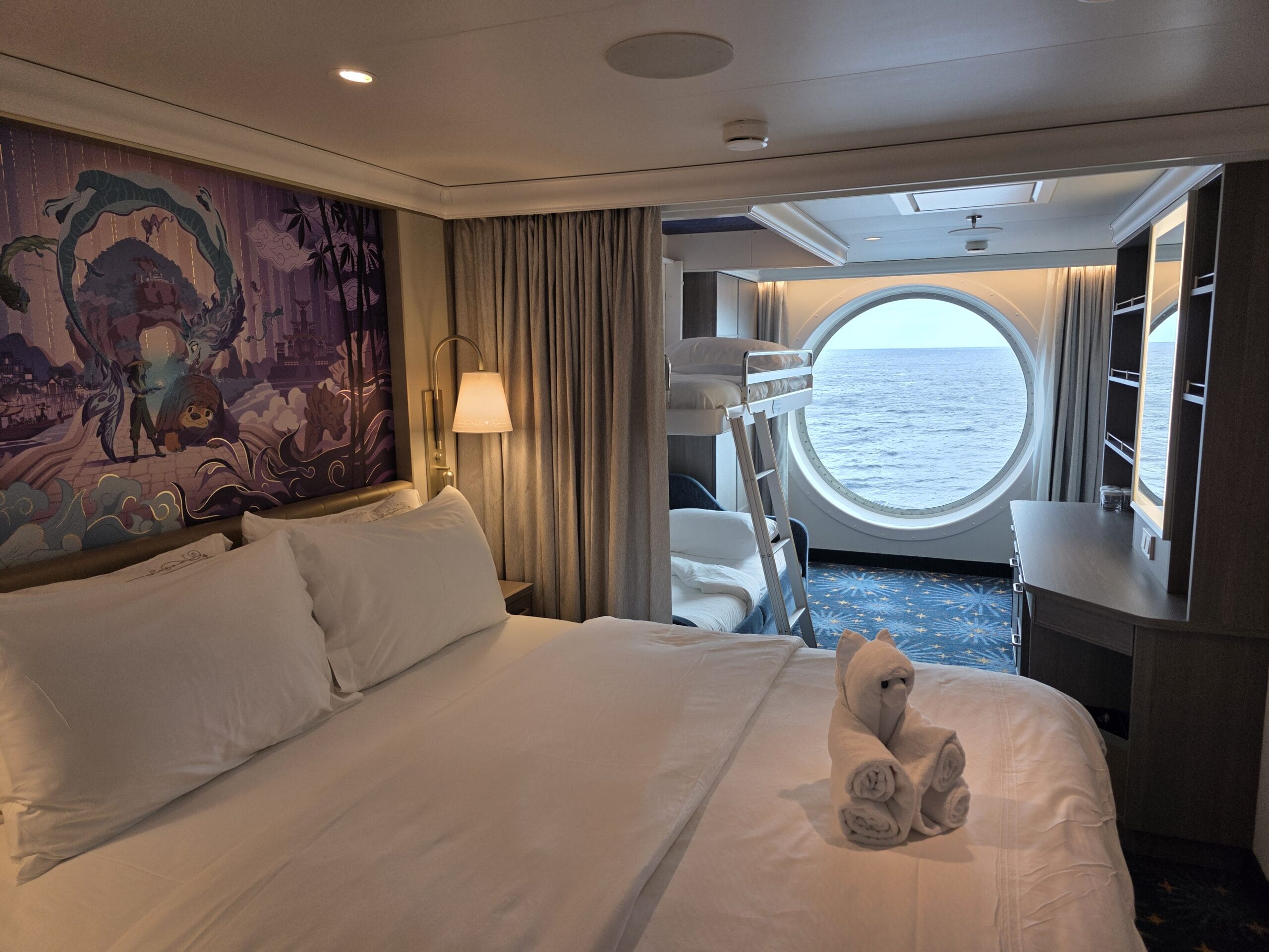 The rooms are similar to those on the Disney Wish and Disney Treasure but with different theming and coloring.