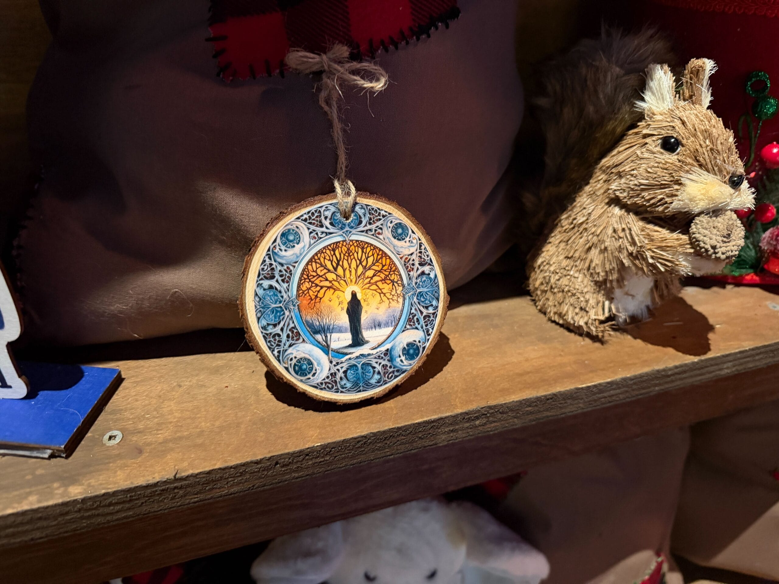Near the second-floor railing, a winder wonderland complete with woodland creatures and a snow-covered bridge has been set up.
