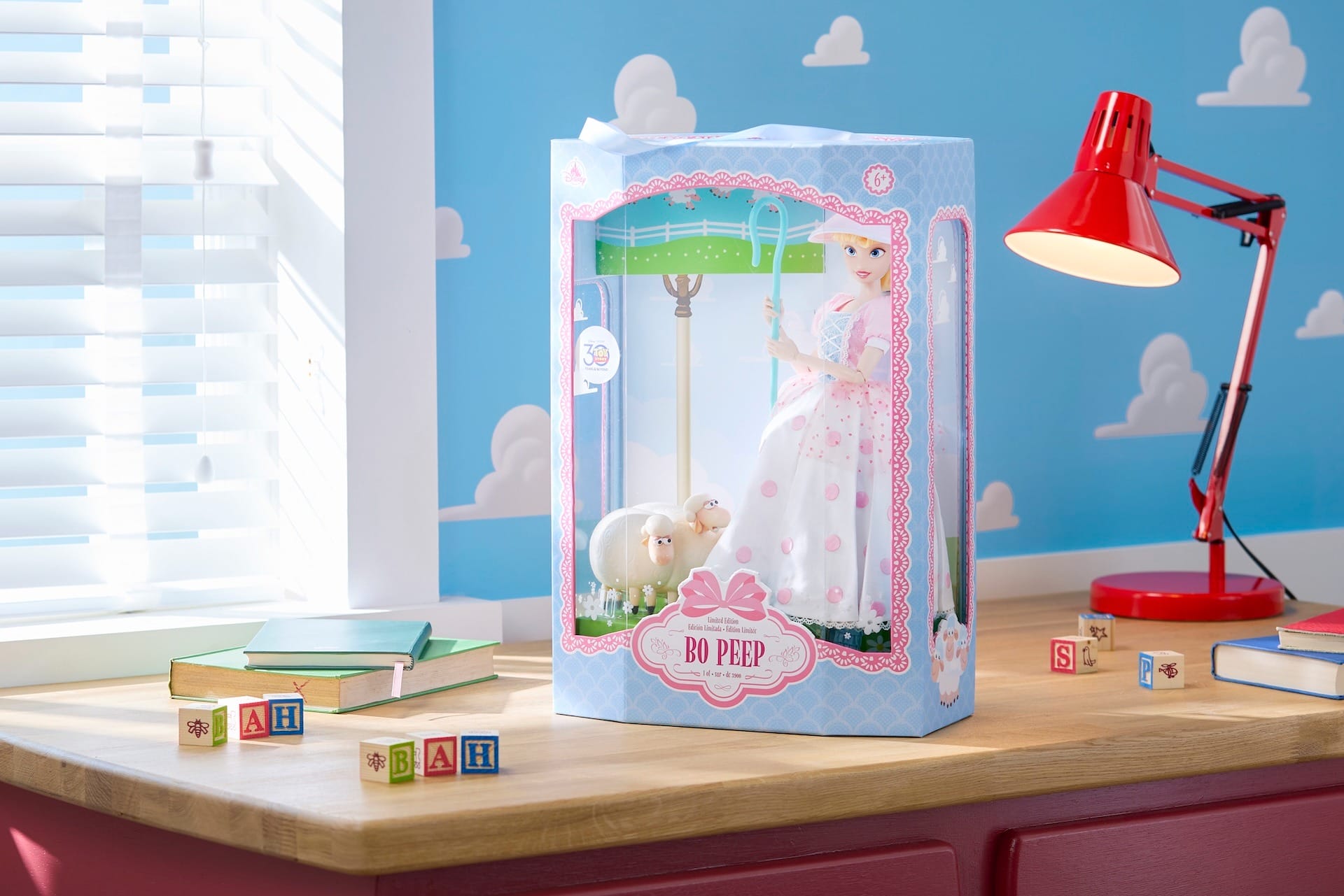 A brand-new Bo Peep Limited Edition Doll includes her three fun-loving sheep and a display box with a light-up floor lamp. The doll is limited edition of 3,900.