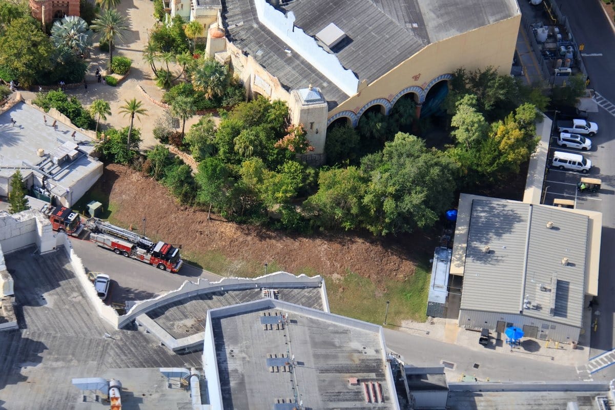 Universal has cleared a portion of trees from a backstage area of The Lost Continent at Universal Islands of Adventure. Aerial photographer @bioreconstruct on X (formerly Twitter) shared these photos of the land on November 26.