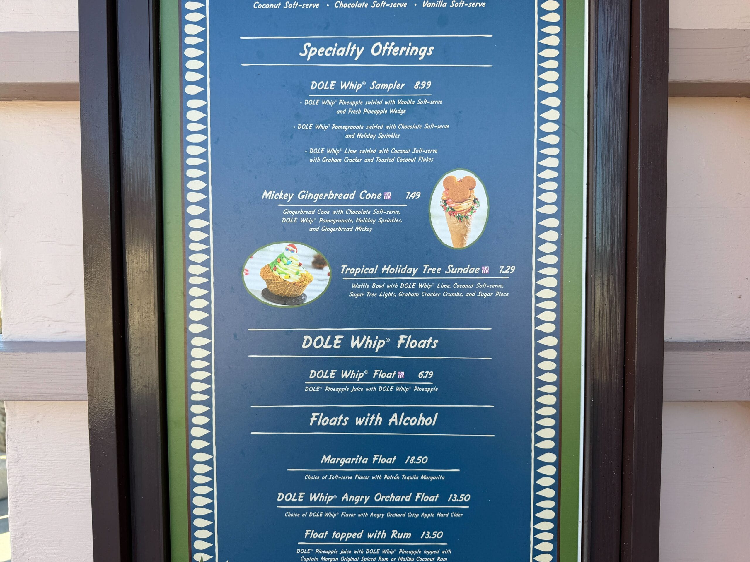It’s the basic flavors of DOLE Whip Lime and coconut that we were not crazy about. The coconut isn’t too sweet. There’s nothing wrong with it and it’s shareable, but it just doesn’t compare to some of the other specialty food items Disney has available this holiday season.