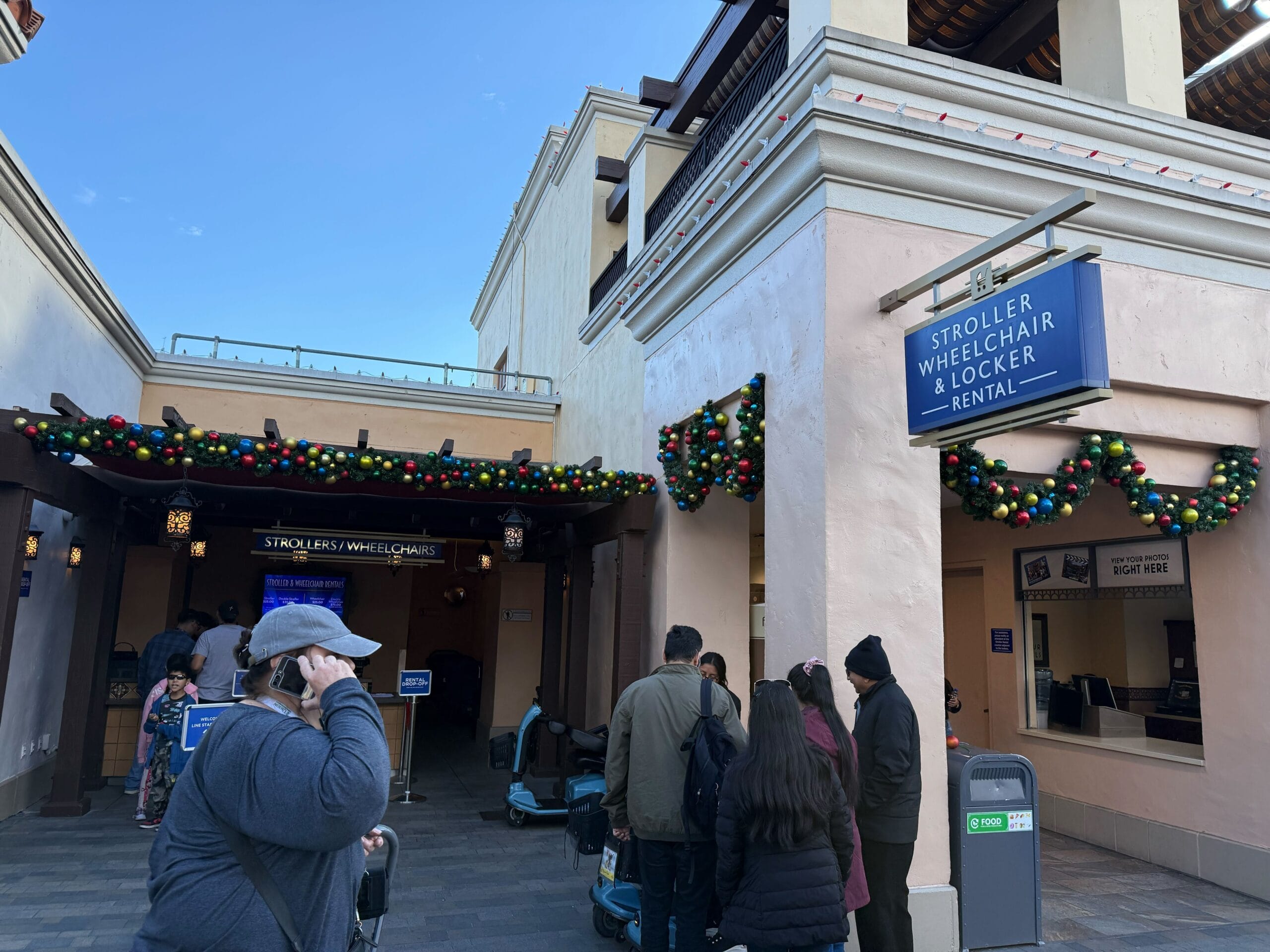 The colorful garland is also across the stroller, wheelchair, and locker rental area.