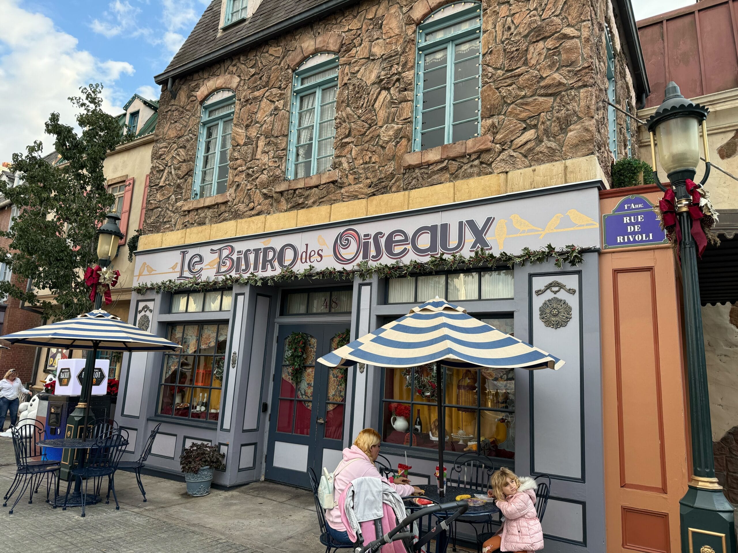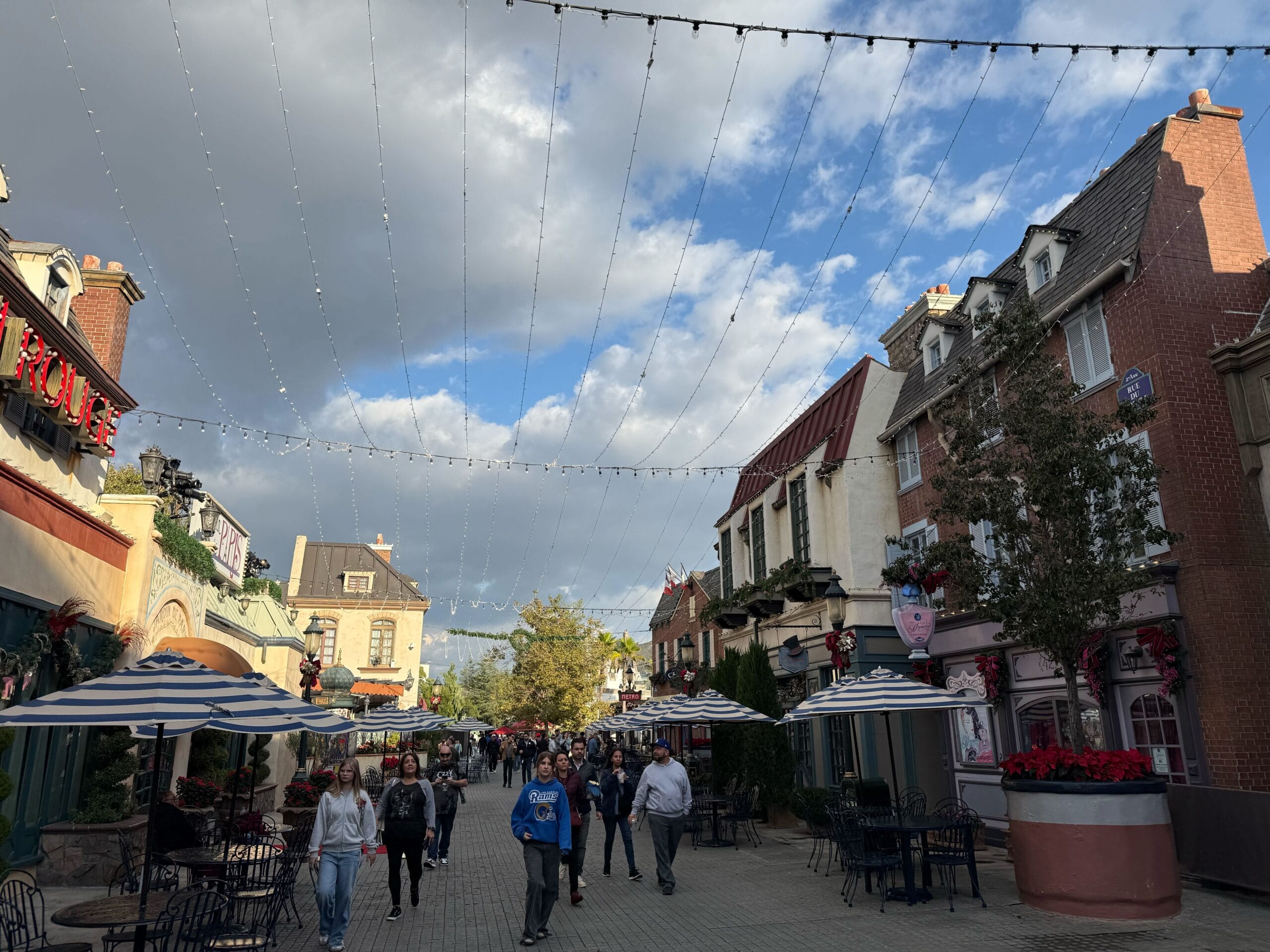 And of course, there’s a giant Christmas tree. It’s located outside the cinema and features a pink and green color scheme in honor of Wicked: For Good. The green “W” logo glows near the center of the tree. The star on top resembles Glinda’s bubble wand.