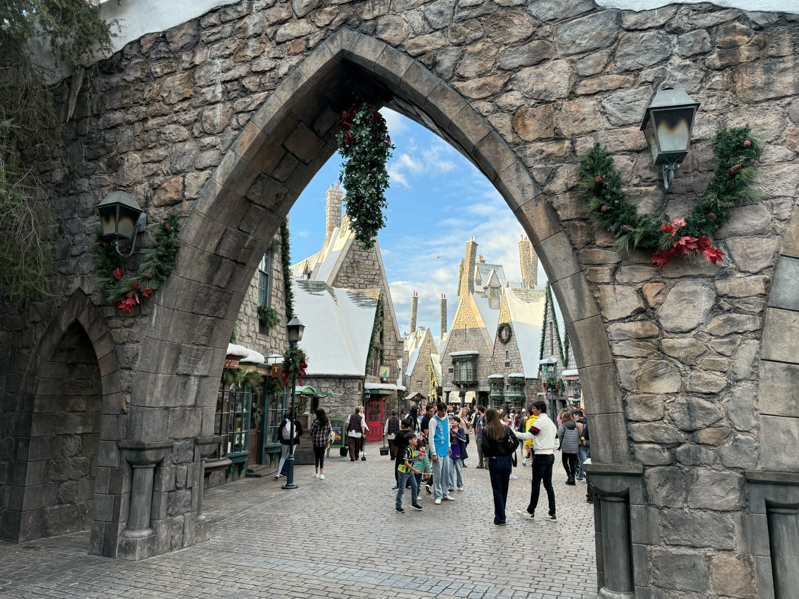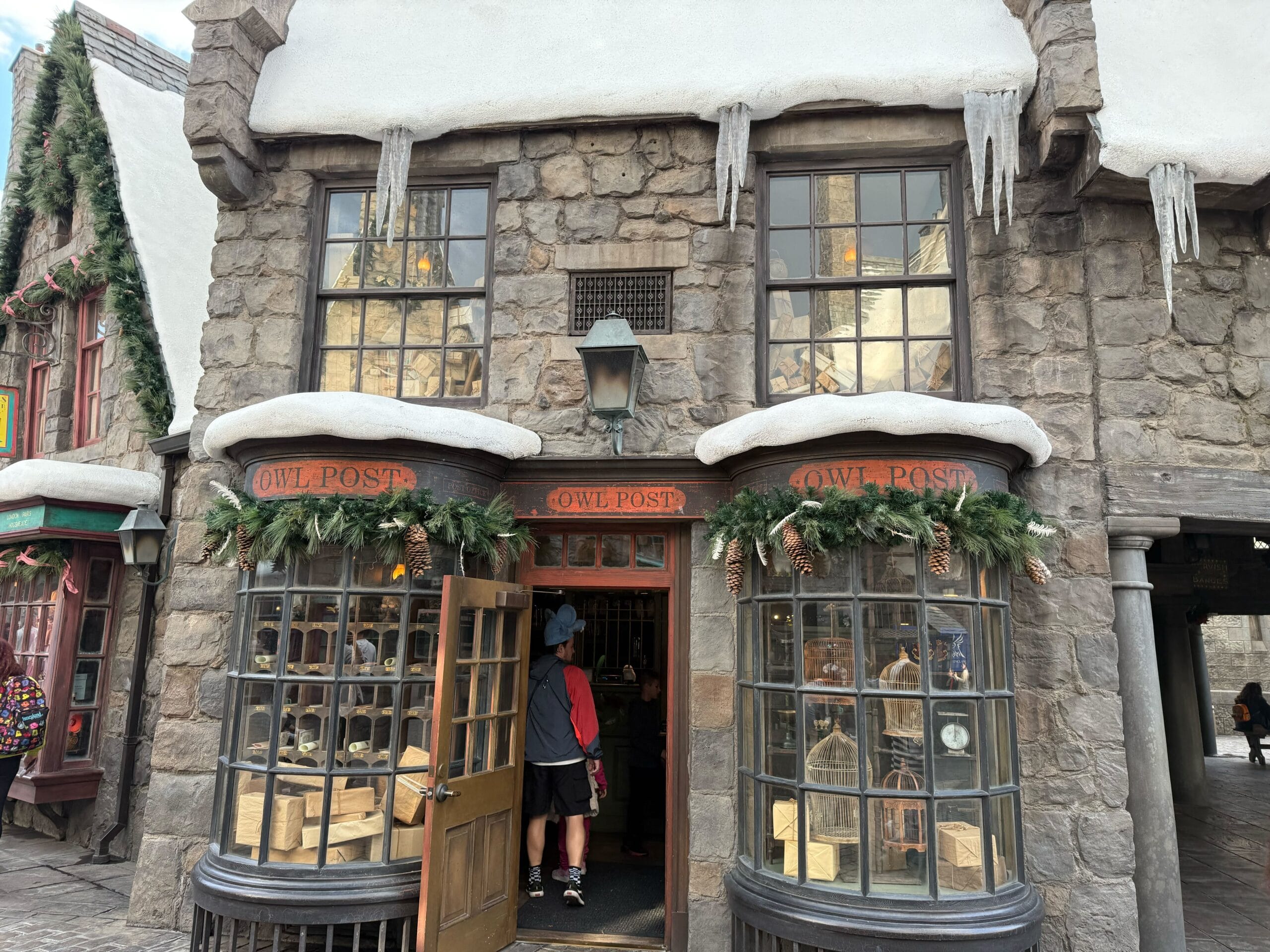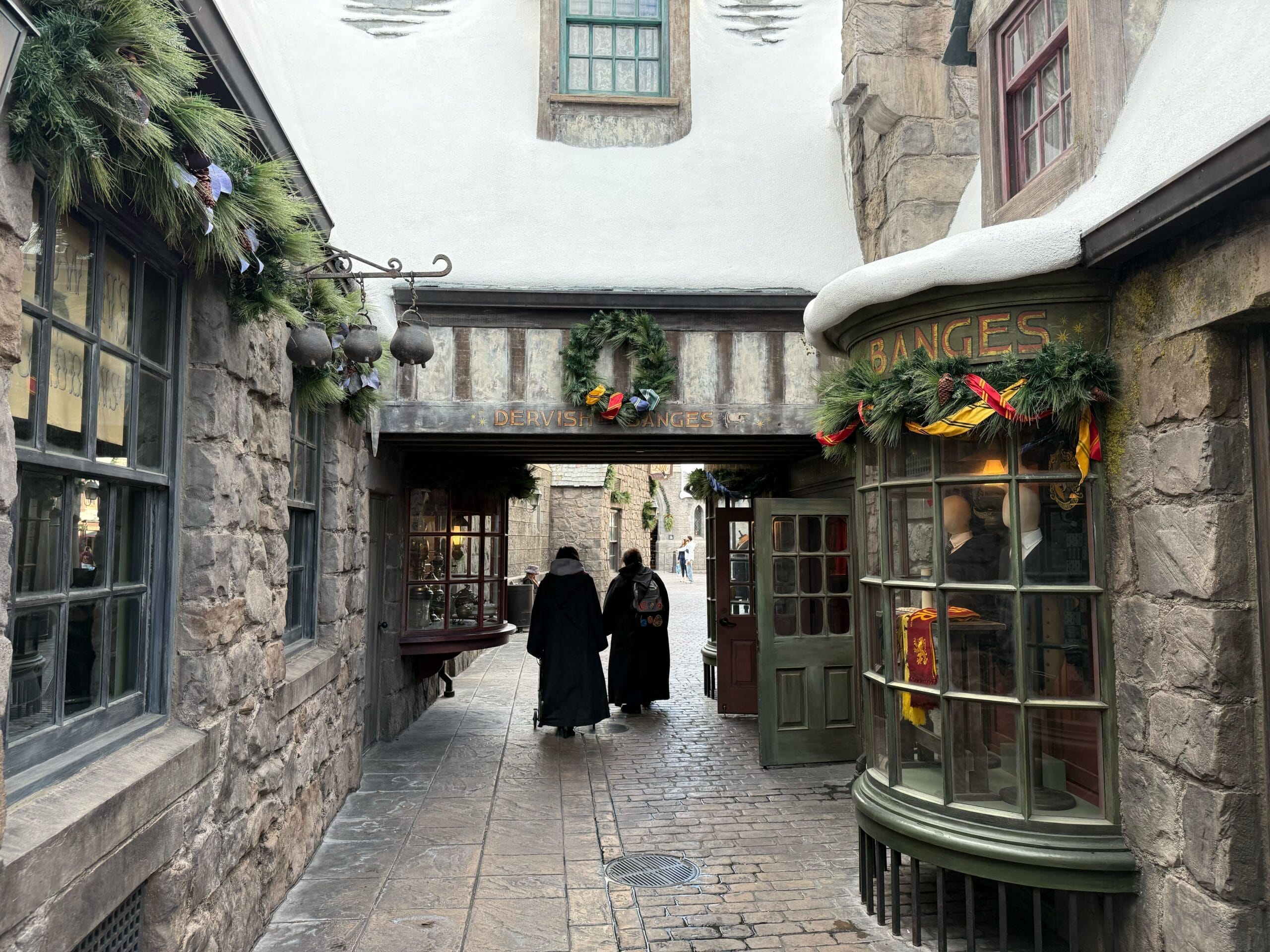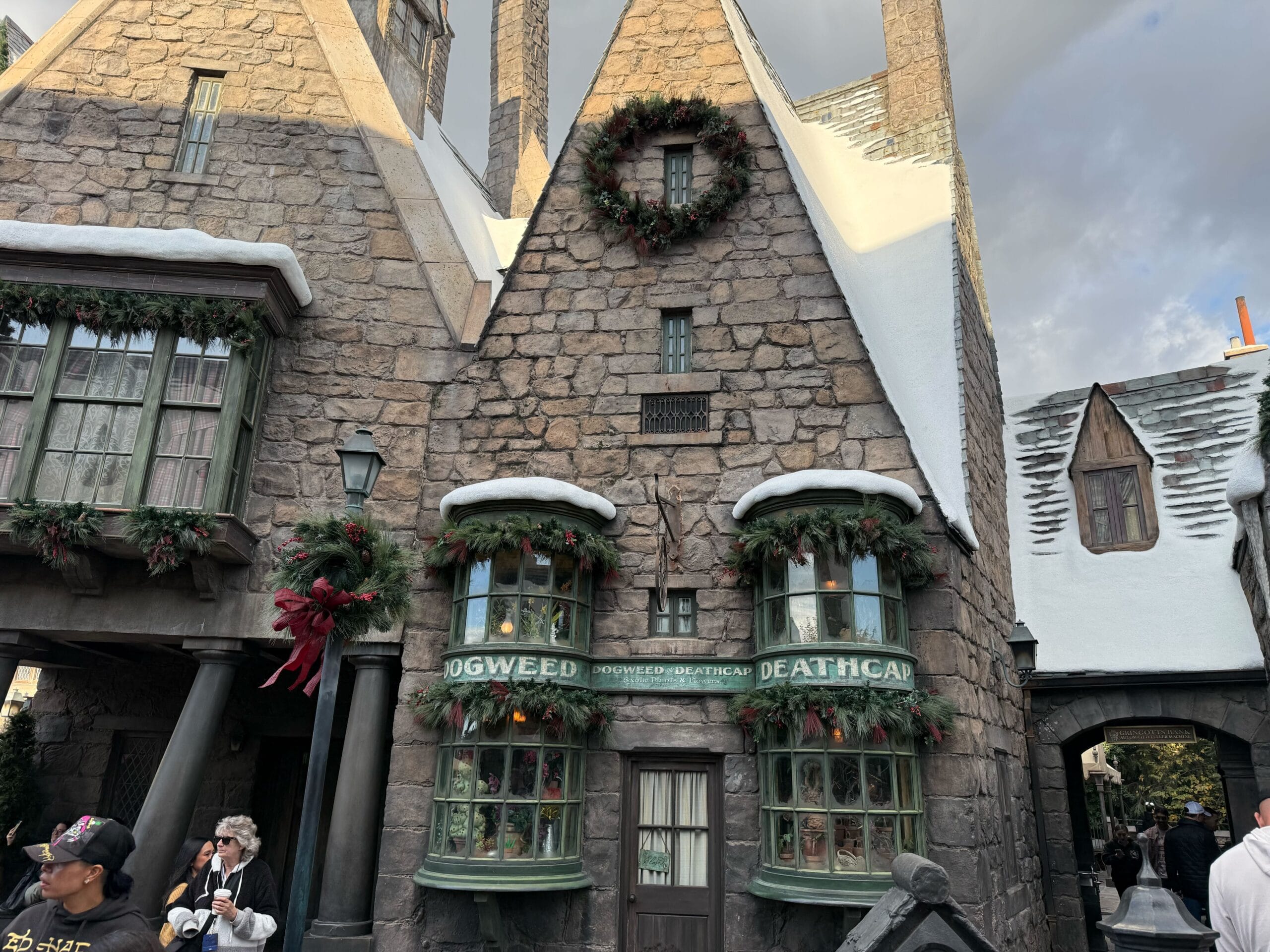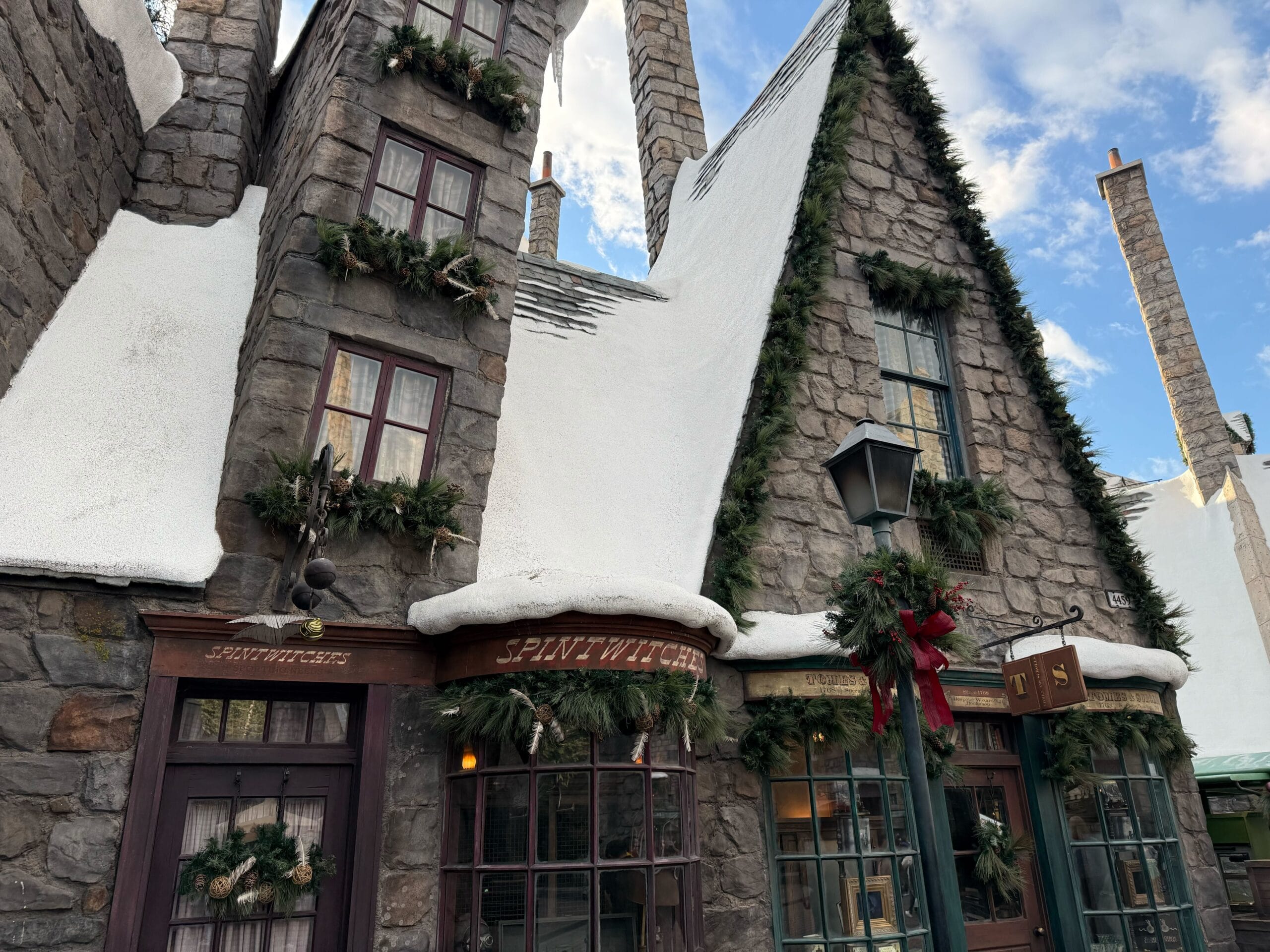 Witches and wizards celebrate Christmas, too. Though Hogsmeade is always decked out with snow, it gets holiday decorations this time of year.