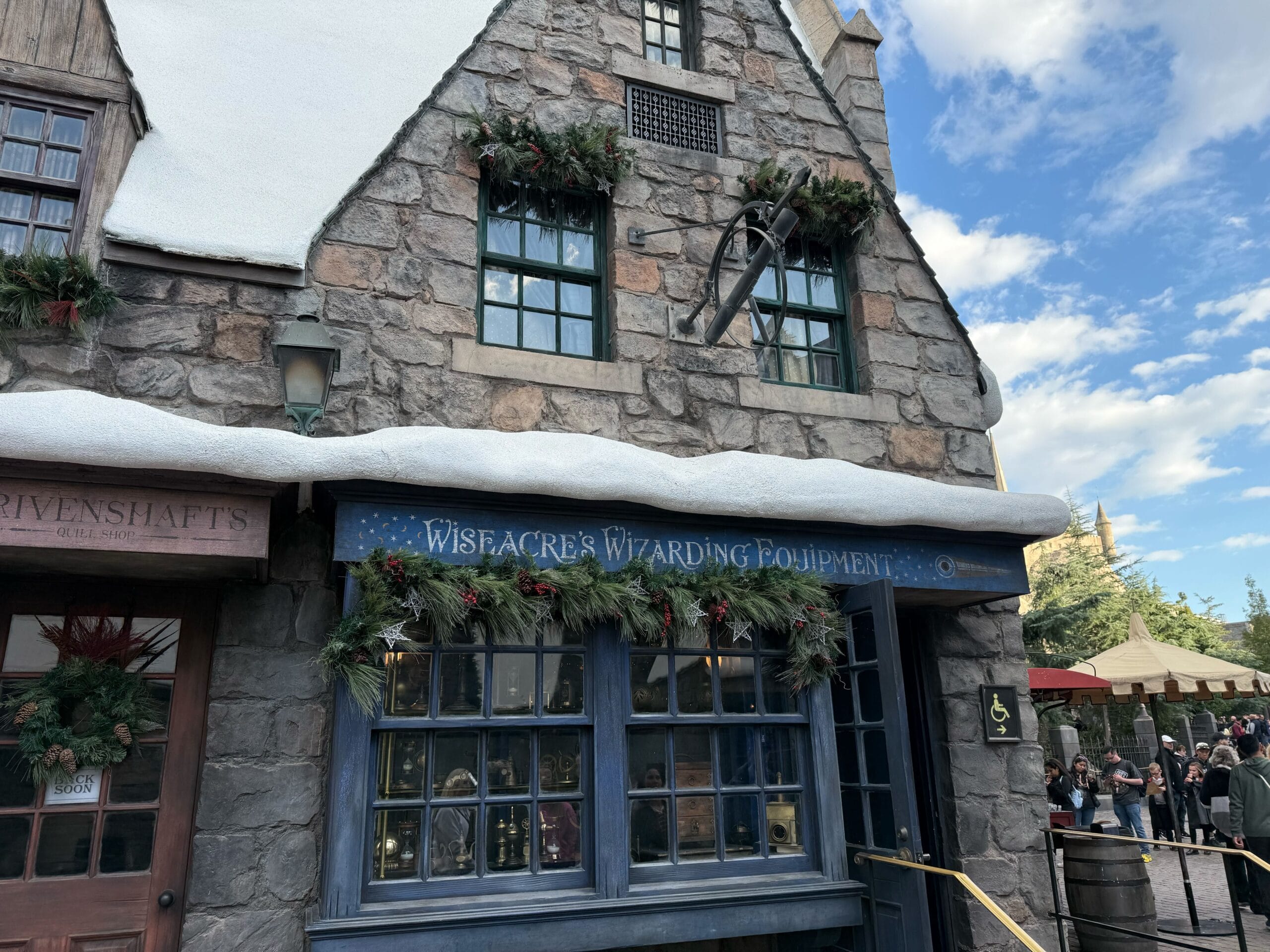 Wiseacre’s Wizarding Equipment has silver stars in its decorations.