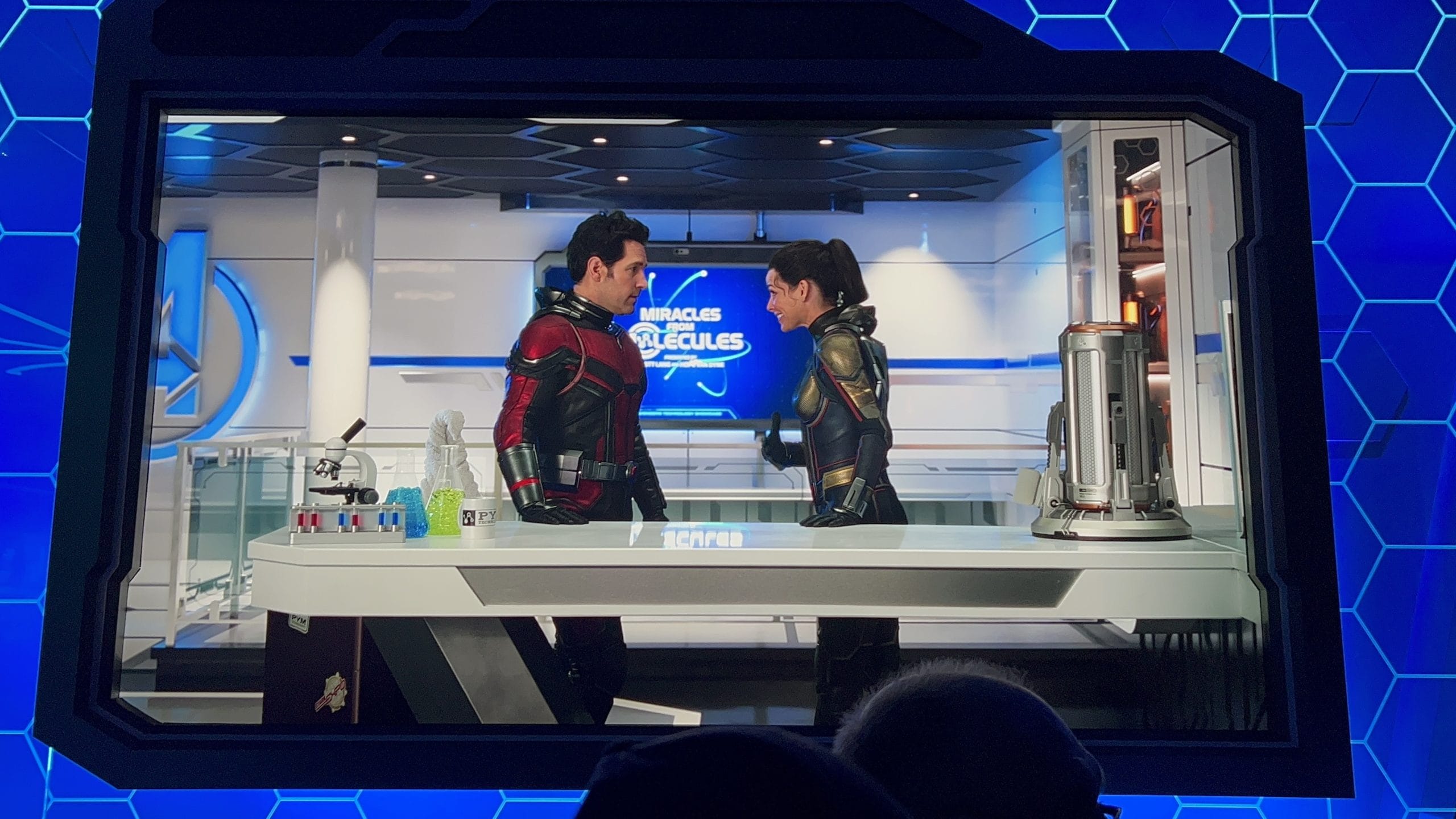 Ant-Man and The Wasp host a presentation of the most powerful Super Hero technologies—including Captain America’s shield, Iron Man’s arc reactor and their own Pym Particles.