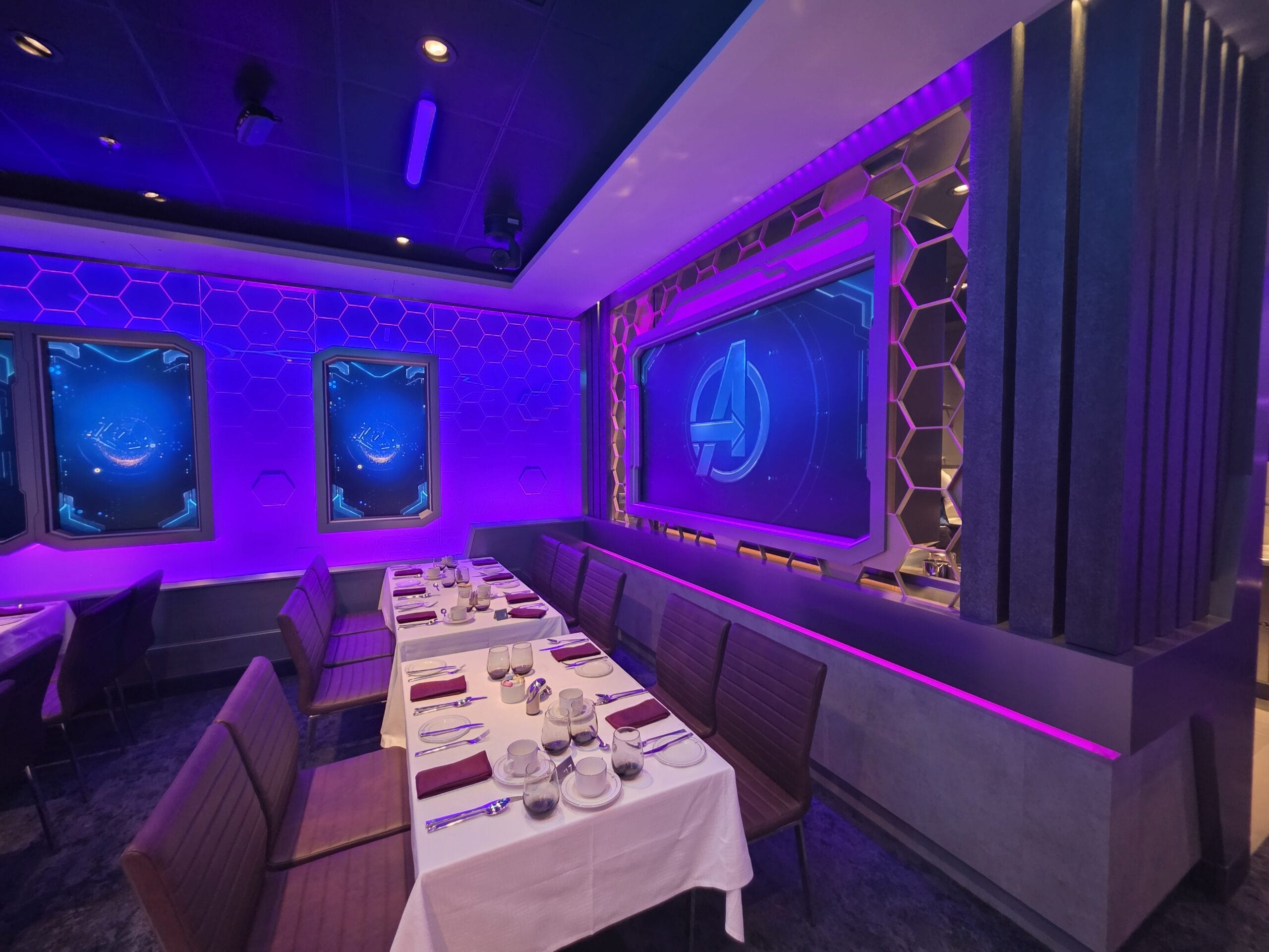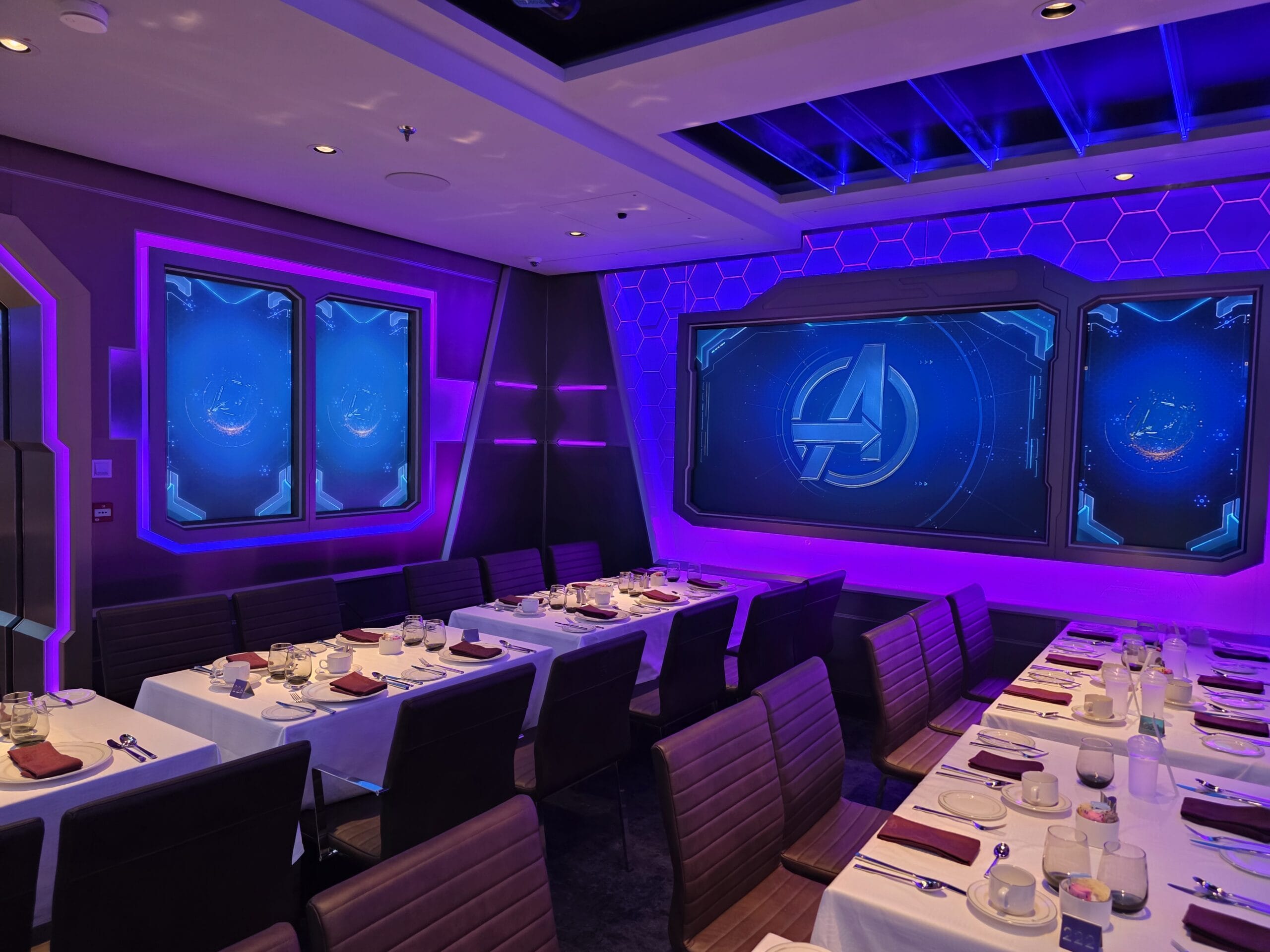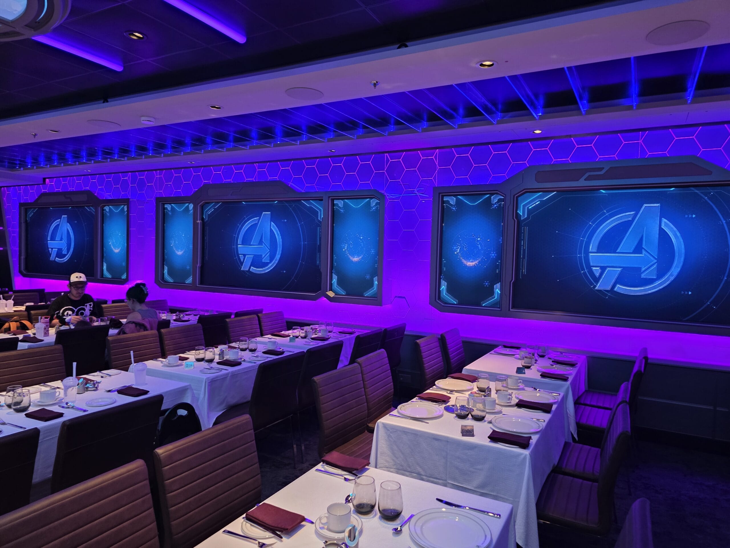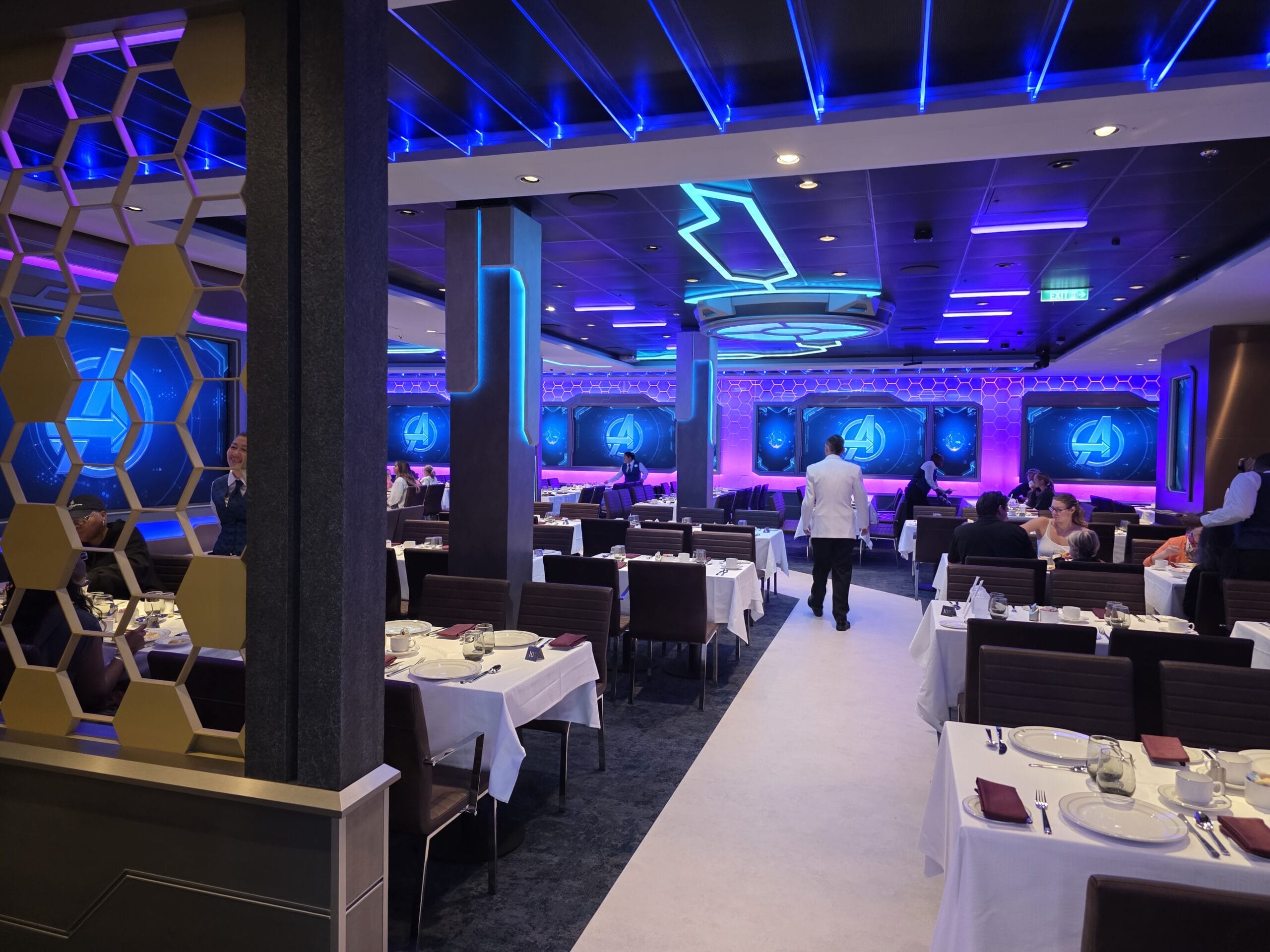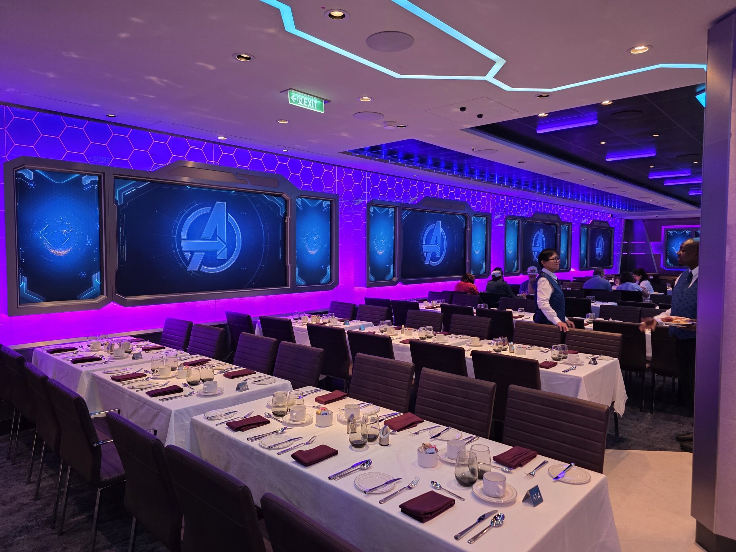 Worlds of Marvel is one of the rotational dining experiences on the Disney Destiny, with the others being Pride Lands: Feast of the Lion King and 1923. Worlds of Marvel is located on Deck 4.
