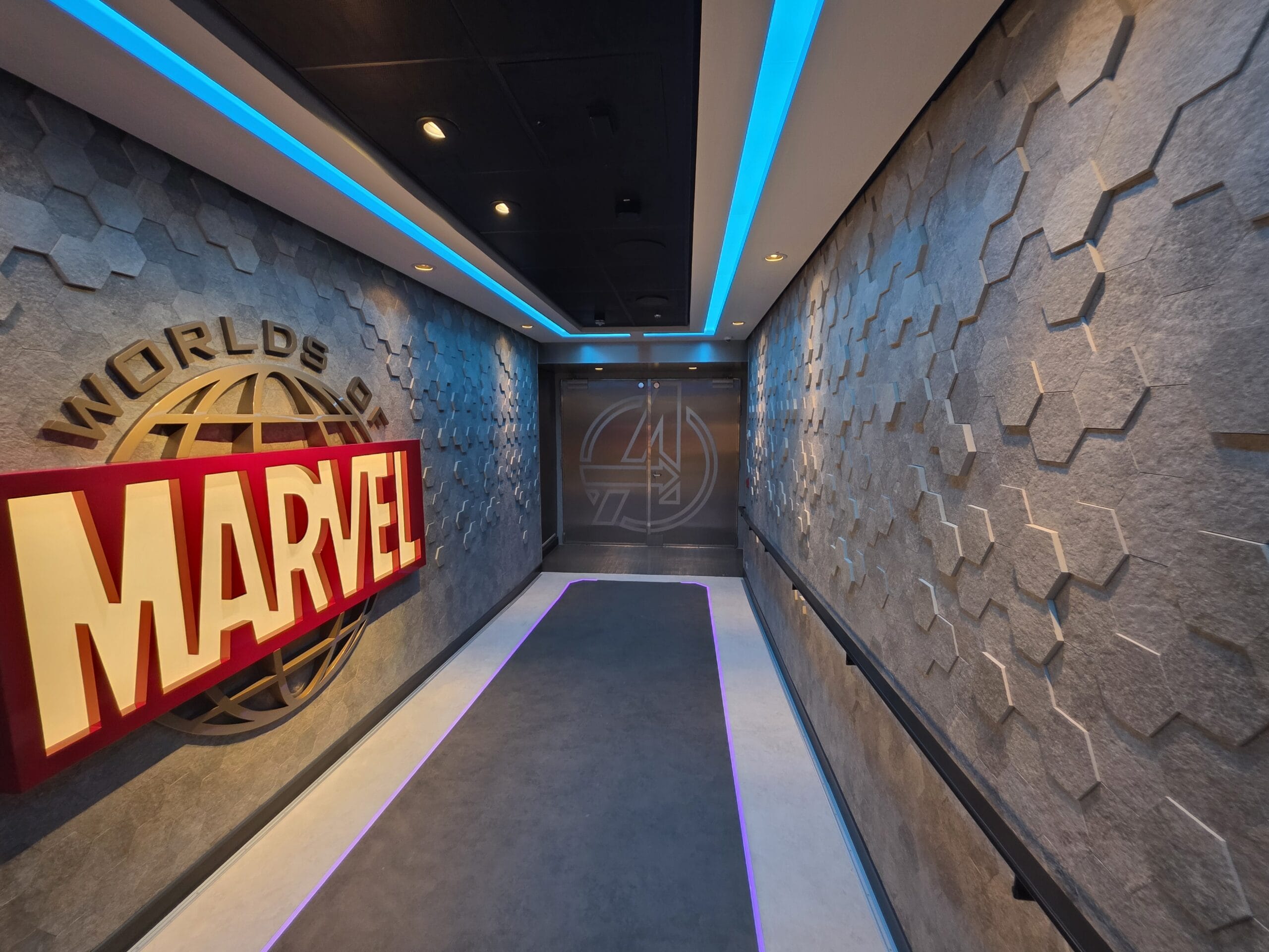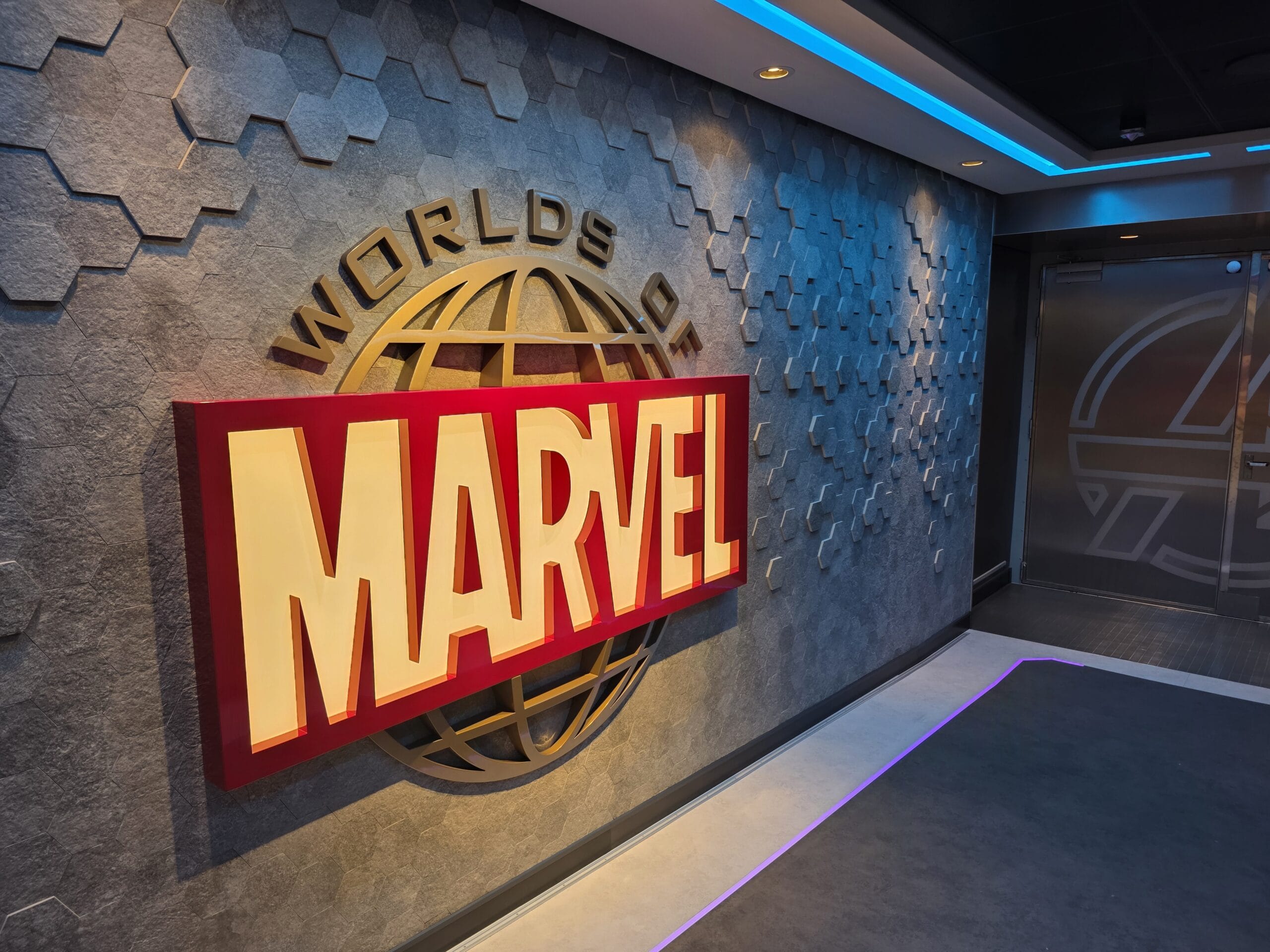 Worlds of Marvel is a character dining experience and live show on the Disney Destiny (as well as the Disney Treasure and Disney Wish). In this post, we take a look around the larger-than-life venue.