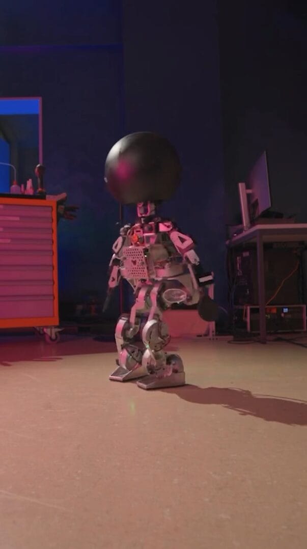 Toward the end of the teaser, we see the armature of a short, stout audio-animatronic with a round head being tested. It spins and strikes a pose that looks very familiar — before then cutting to a close-up of Olaf’s feet walking on a floor.