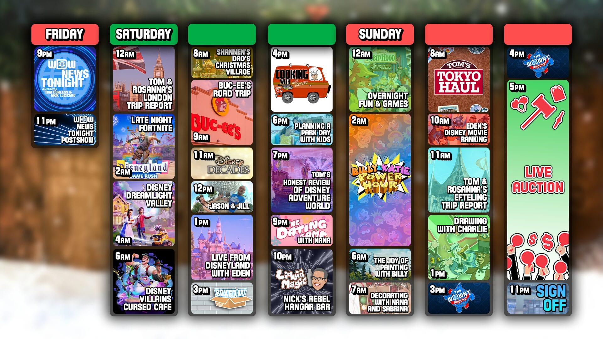 Even if you can’t tune in to the show, you can still help! The donation site is open now, so you can make your donation now at https://spot.fund/WDWNTToysForTots2025. Help us reach our goal of $52,254 (a dollar more than we raised last year).
