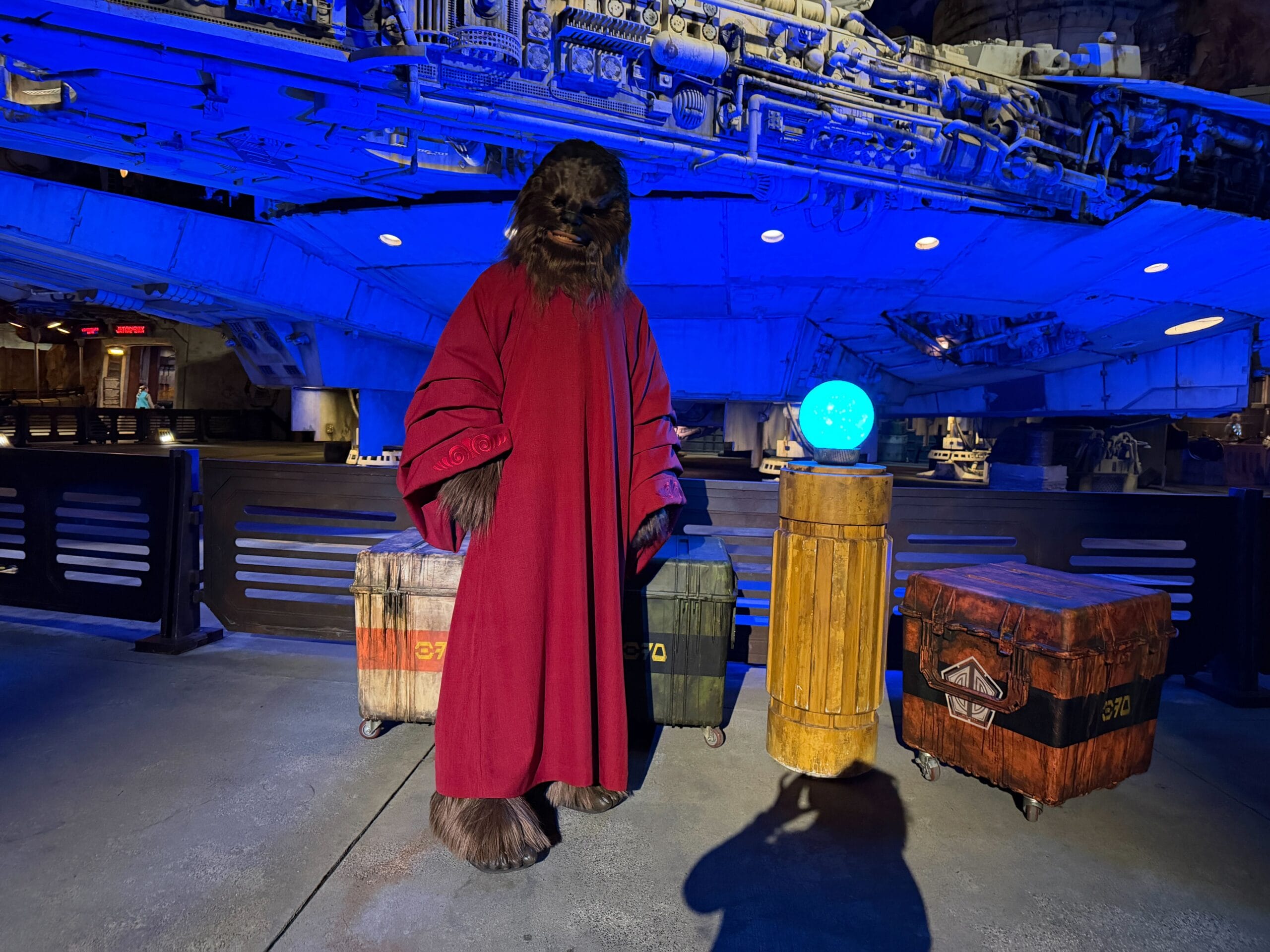 Chewbacca can be found in Star Wars: Galaxy’s Edge in Disney’s Hollywood Studios. He’s under the Millennium Falcon surrounded by cargo containers.