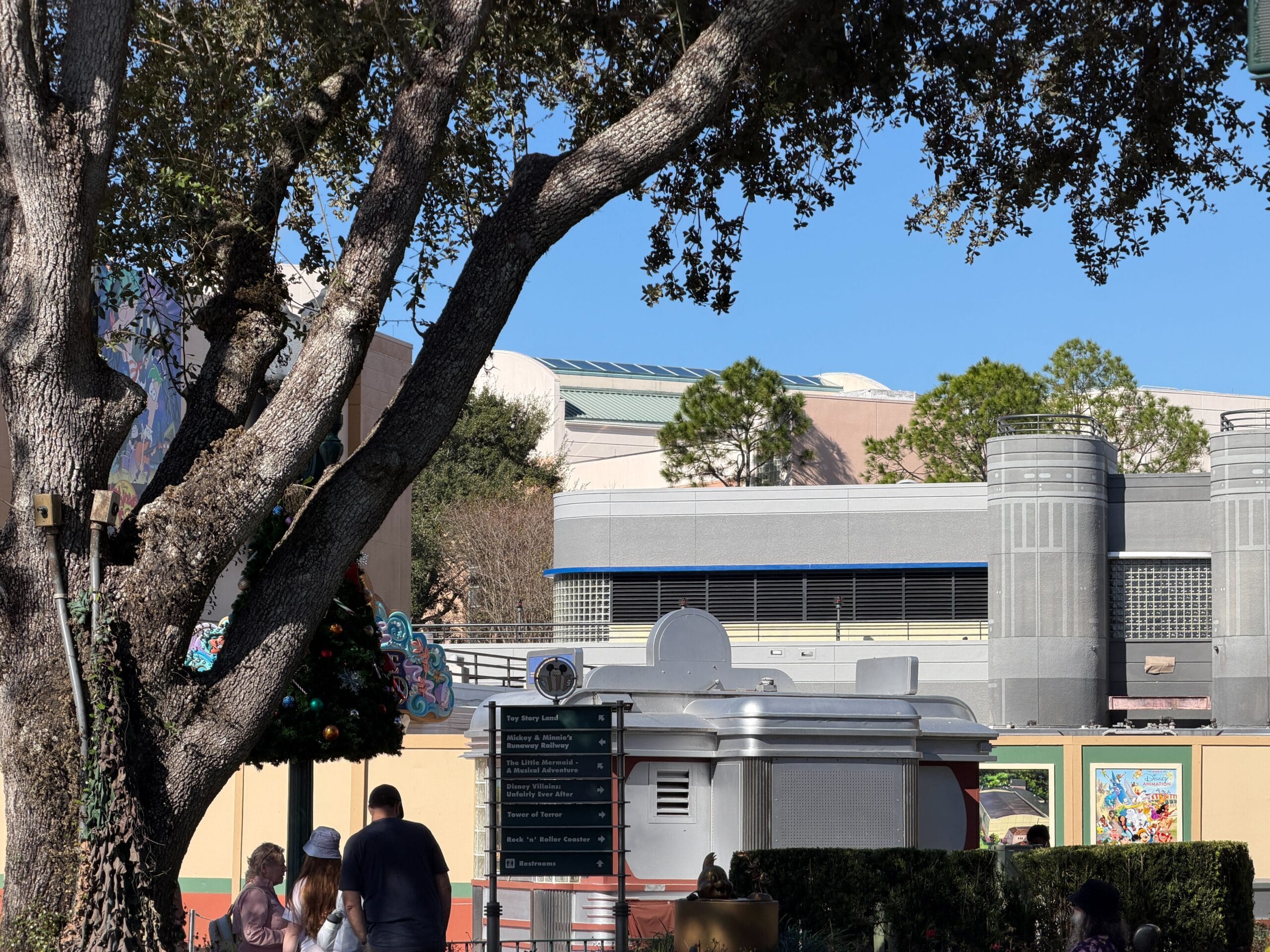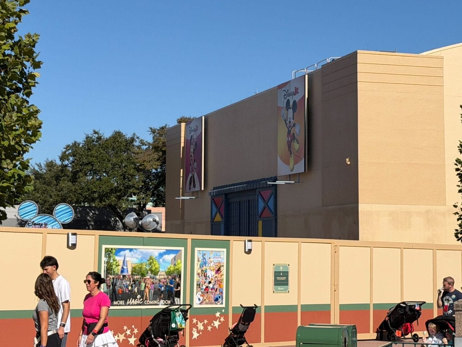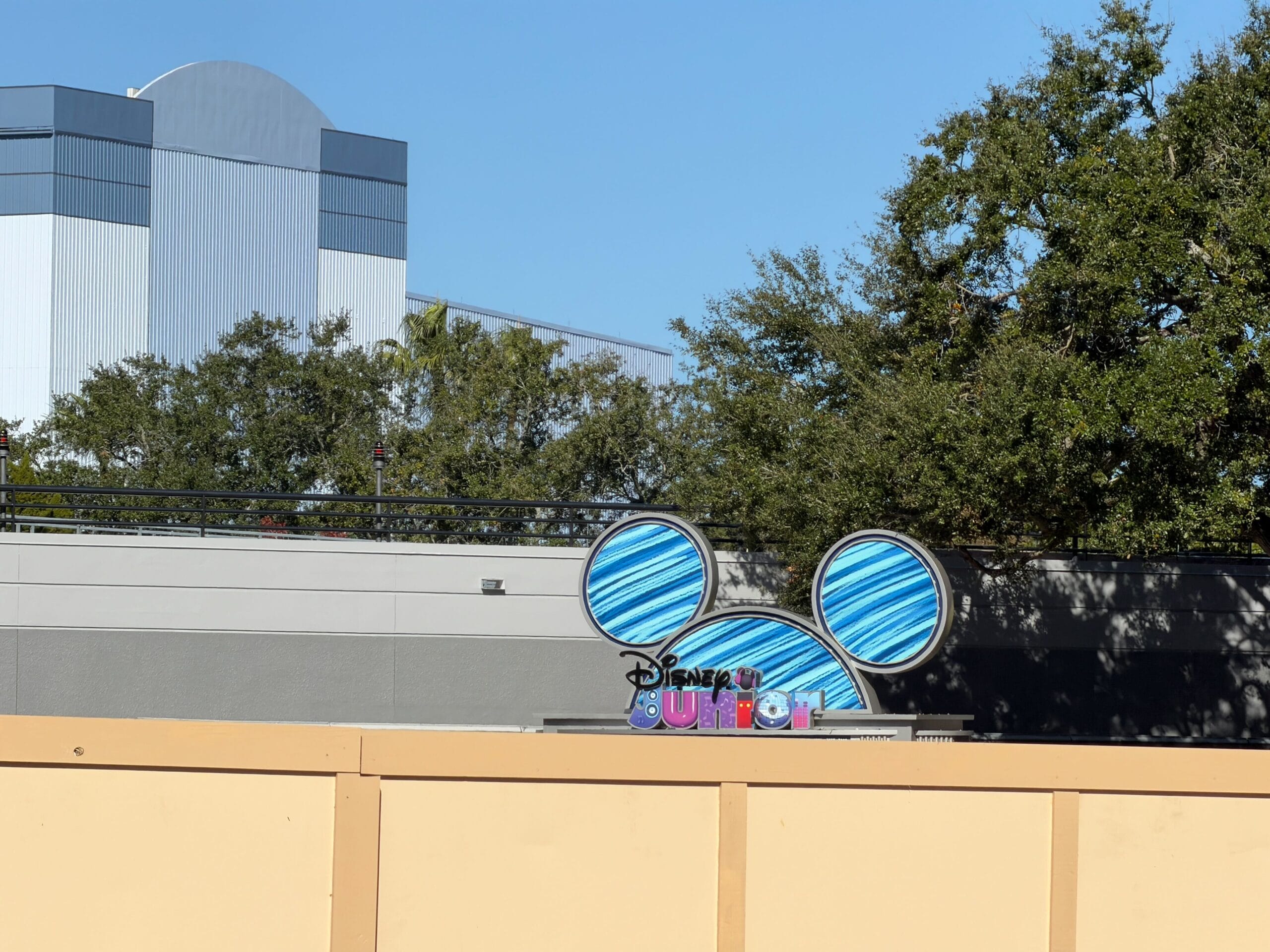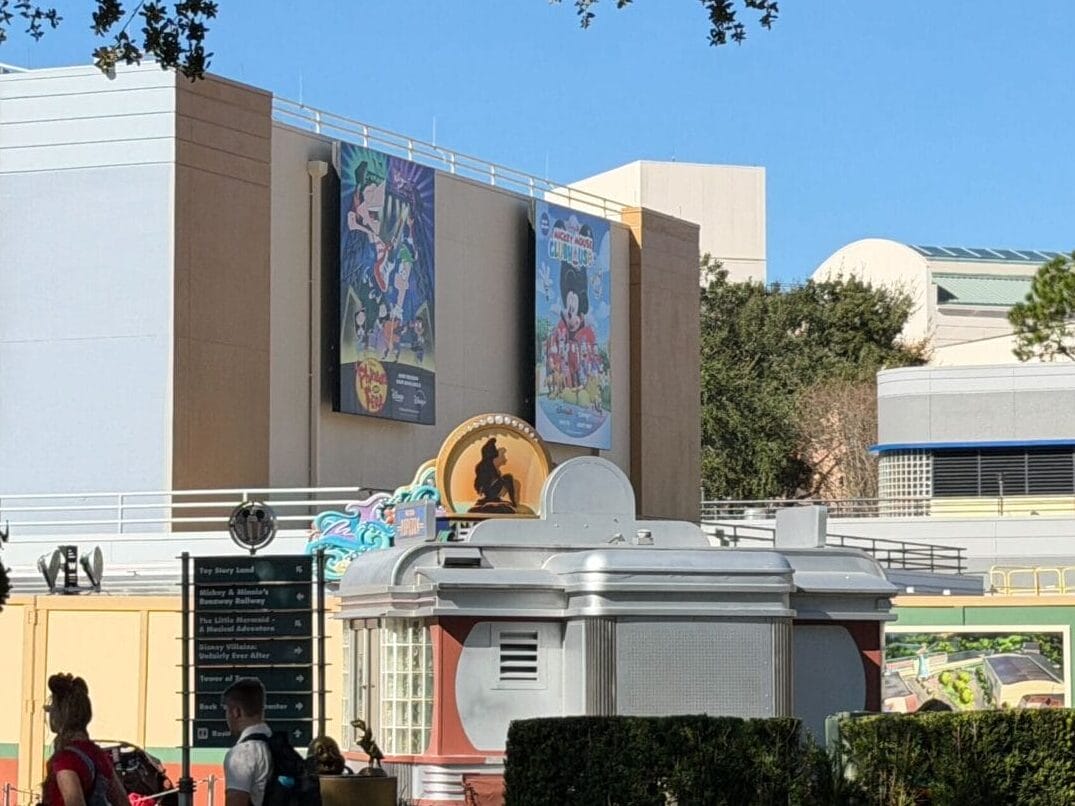 There will be a “fresh Disney Jr. show” at the soundstage. Disney Jr. Play and Dance! closed on September 25, 2025, but the signage remains, so it is possible this will stay for the updated experience. The building that houses the Little Mermaid show also received new paint. The side facing the courtyard is painted, from the previous blue to the new tan/pale yellow.