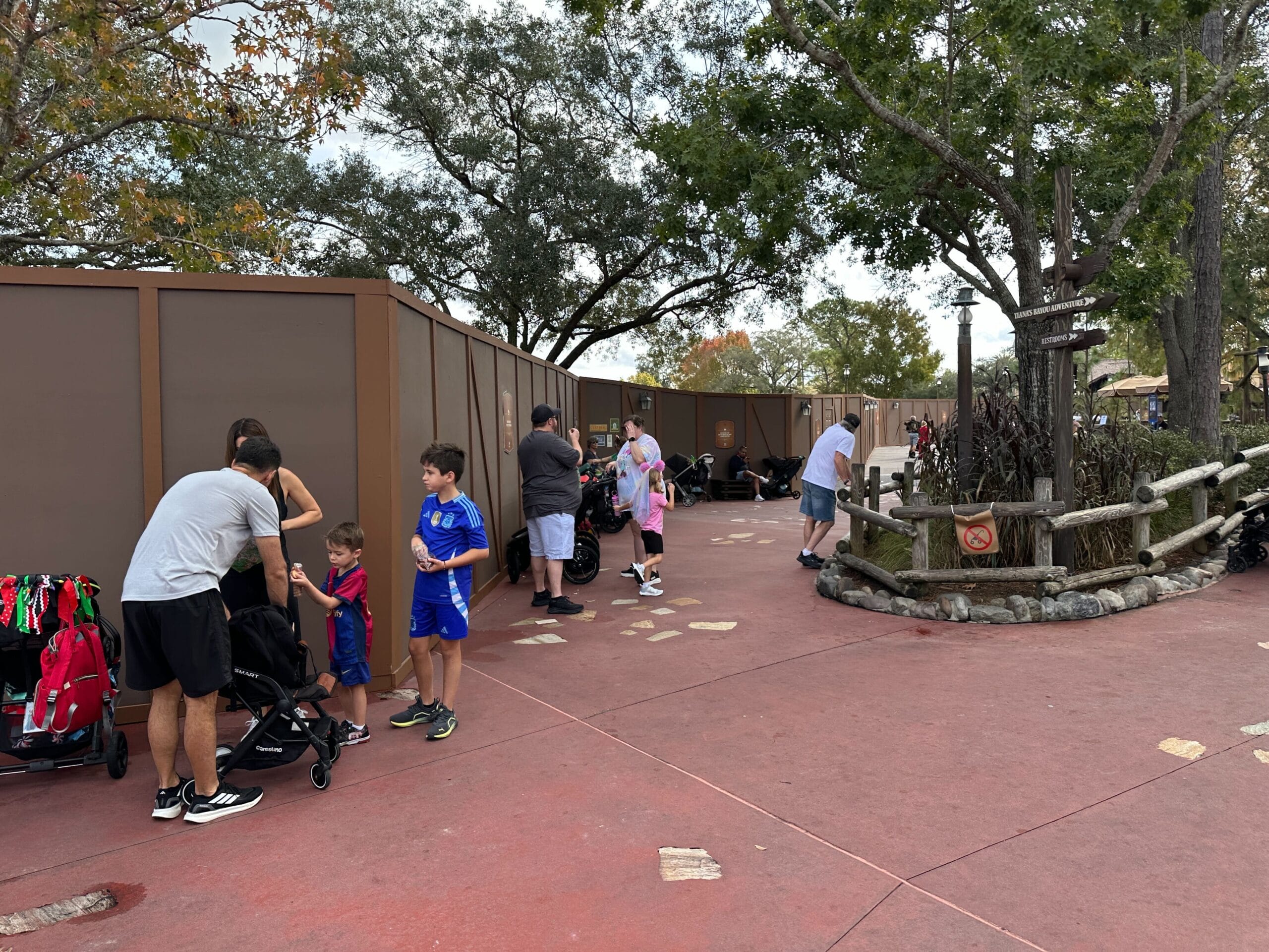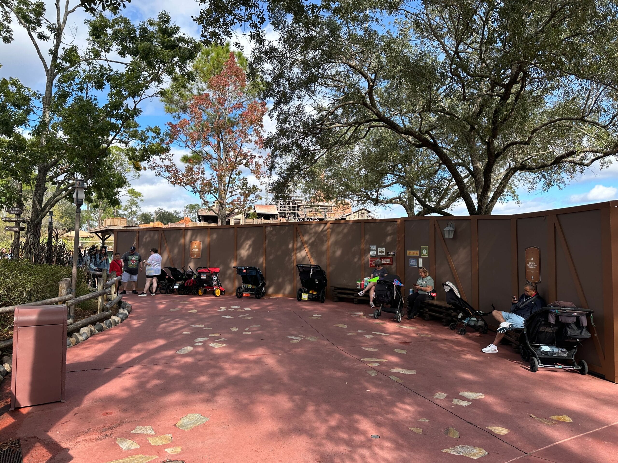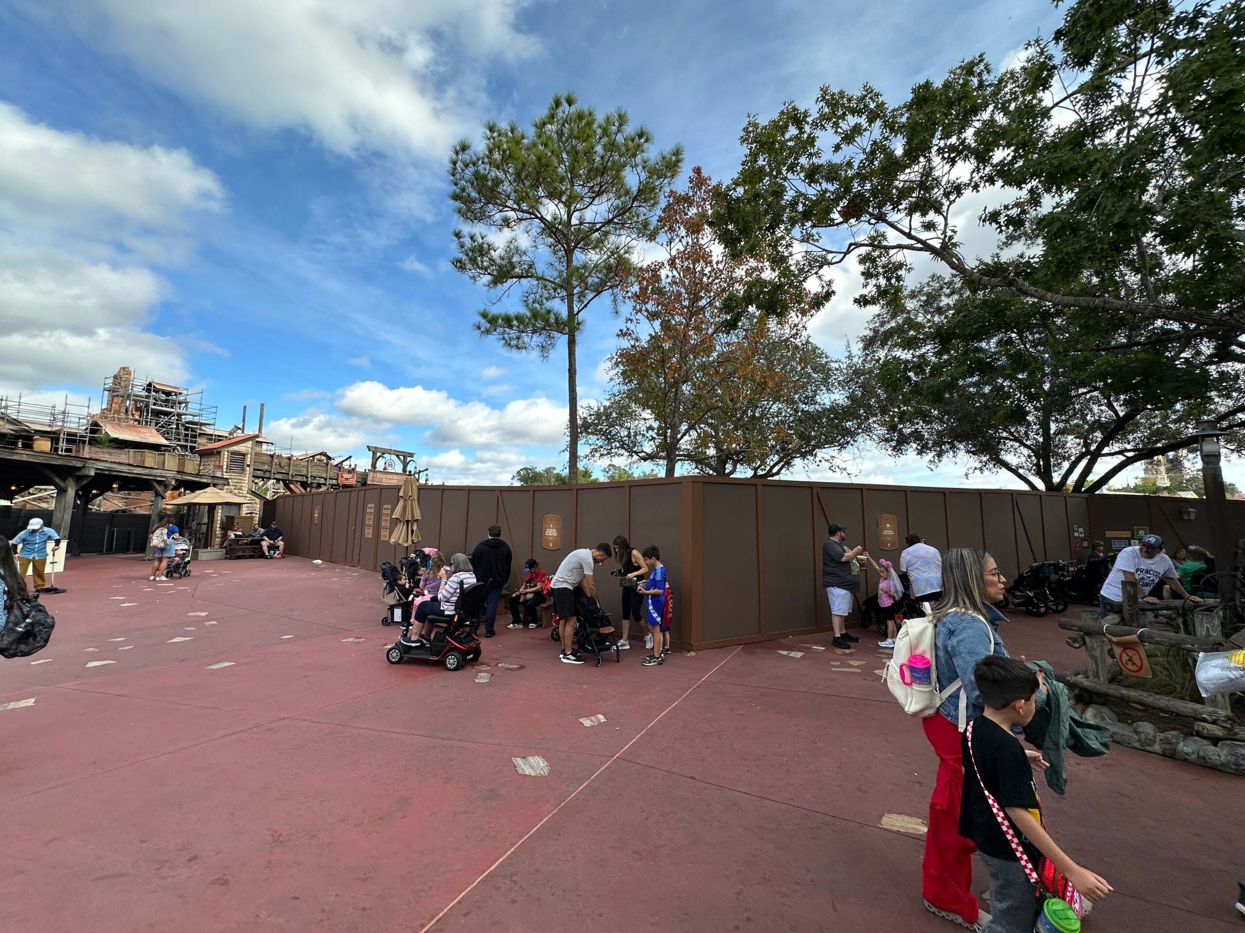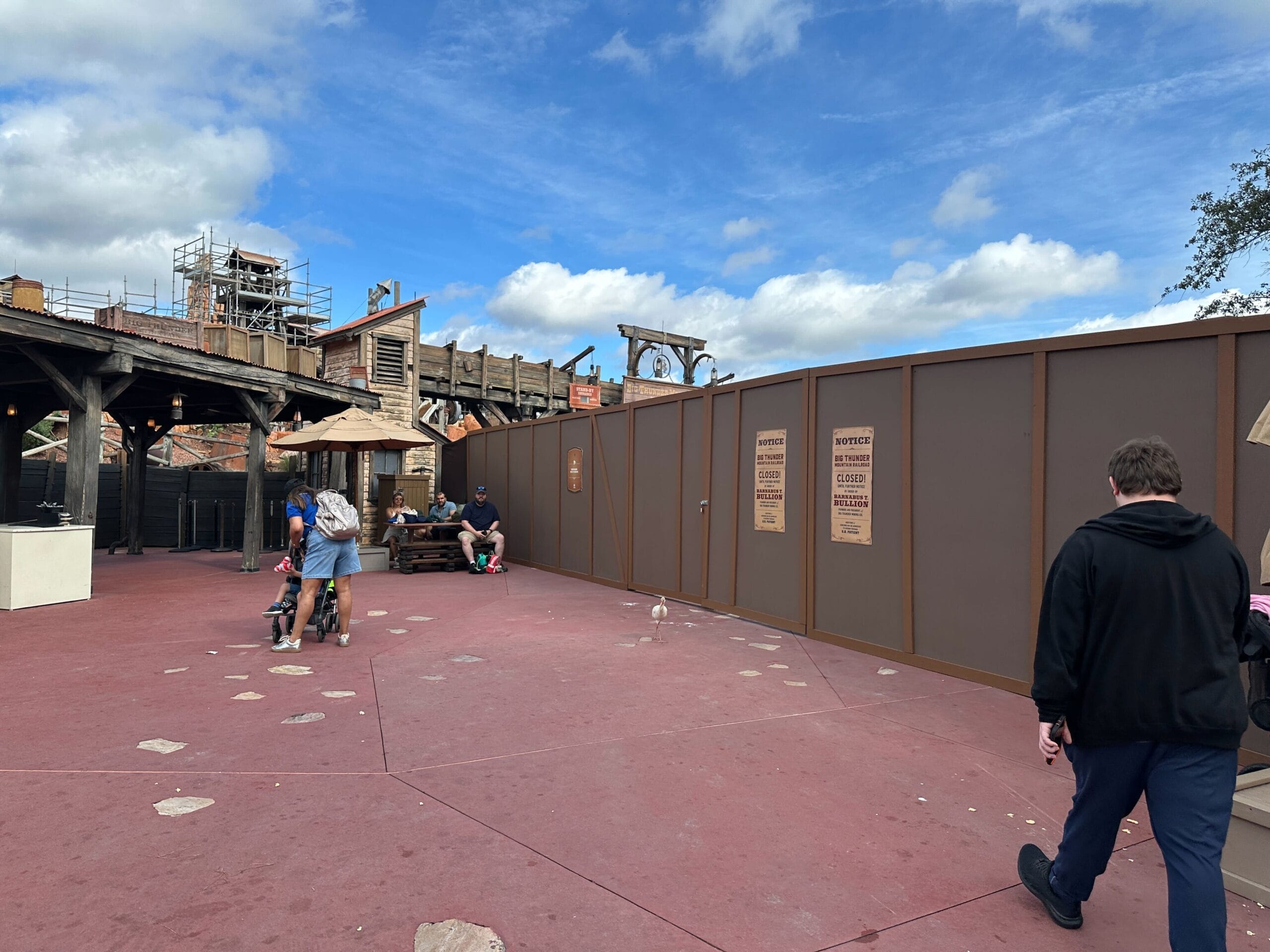 The walls previously ended at the exit queue for Big Thunder Mountain Railroad and ran closer to the former Rivers of America. They now completely block the ride’s main entrance and jut out towards the Frontierland train station.