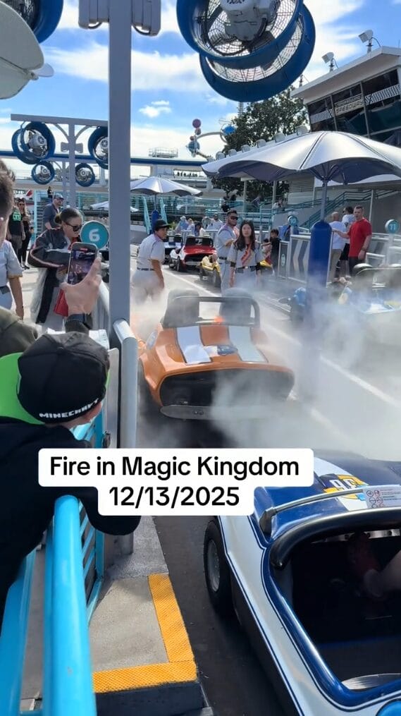 @traveling_throuple A car caught on fire right in front of us at the Tomorrowland speedway! *all video credits to traveling_throuple #disney #magickingdom #fire #fyp #disneyworld ♬ original sound – The Traveling Throuple 🏳️🌈